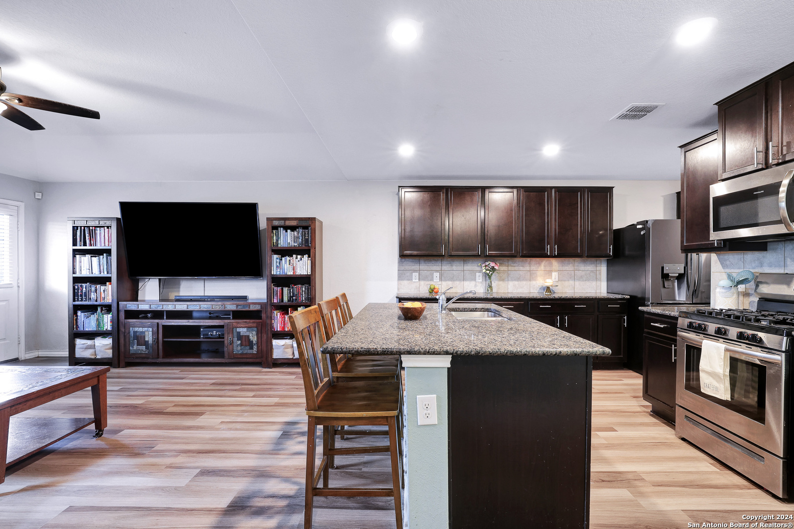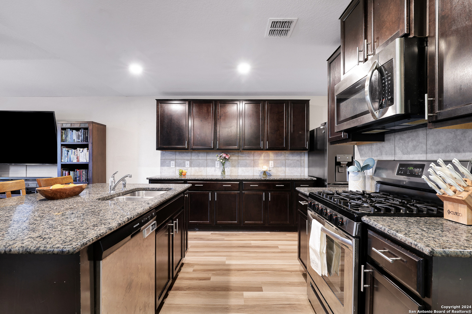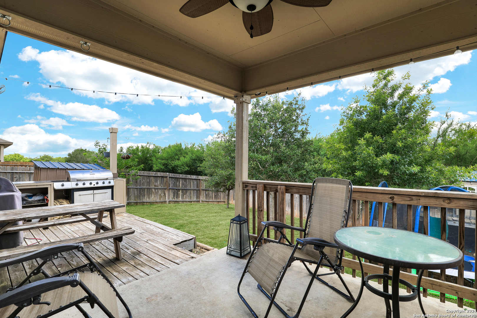 Come see this charming, well-maintained 5-bedroom, 2.5-bath two-story home in the Riposa Vita subdivision!! This home showcases a spacious open floor plan and a separate dining room. The inviting eat-in kitchen is ideal for family meals and entertaining guests.The master bedroom provides a private retreat with its own separate tub and shower, enhancing the homes overall comfort and style. Ascending upstairs, you're welcomed by an open game room, alongside four bedrooms that provide ample space as well.Step outside to discover the expansive backyard, featuring a covered deck perfect for outdoor entertainment and relaxation.This home is conveniently located near military bases and includes energy-efficient solar panels. Schedule a showing today!!