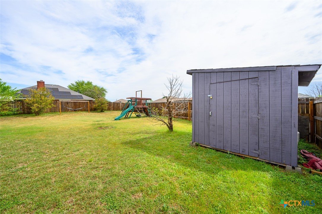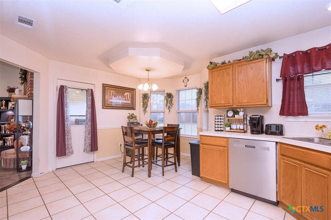 Set in a location that keeps daily routines simple, this home is within walking distance to both the elementary and middle school and offers an easy commute to Fort Hood. Inside, the inviting great room features wood laminate floors and a classic brick fireplace, creating a comfortable space to relax or gather with friends. The kitchen is filled with natural light and opens to the dining area, where a bay window provides a cheerful spot for meals and morning coffee. The owner’s suite stands out with a high ceiling that adds to the sense of space, along with a bath that includes a double sink vanity and two closets for added convenience. Thoughtful updates by the current owner enhance both style and peace of mind, including a roof, recessed lighting, updated flooring, and granite counters in the bathroom. This home blends comfort, function, and a convenient location into one appealing package.