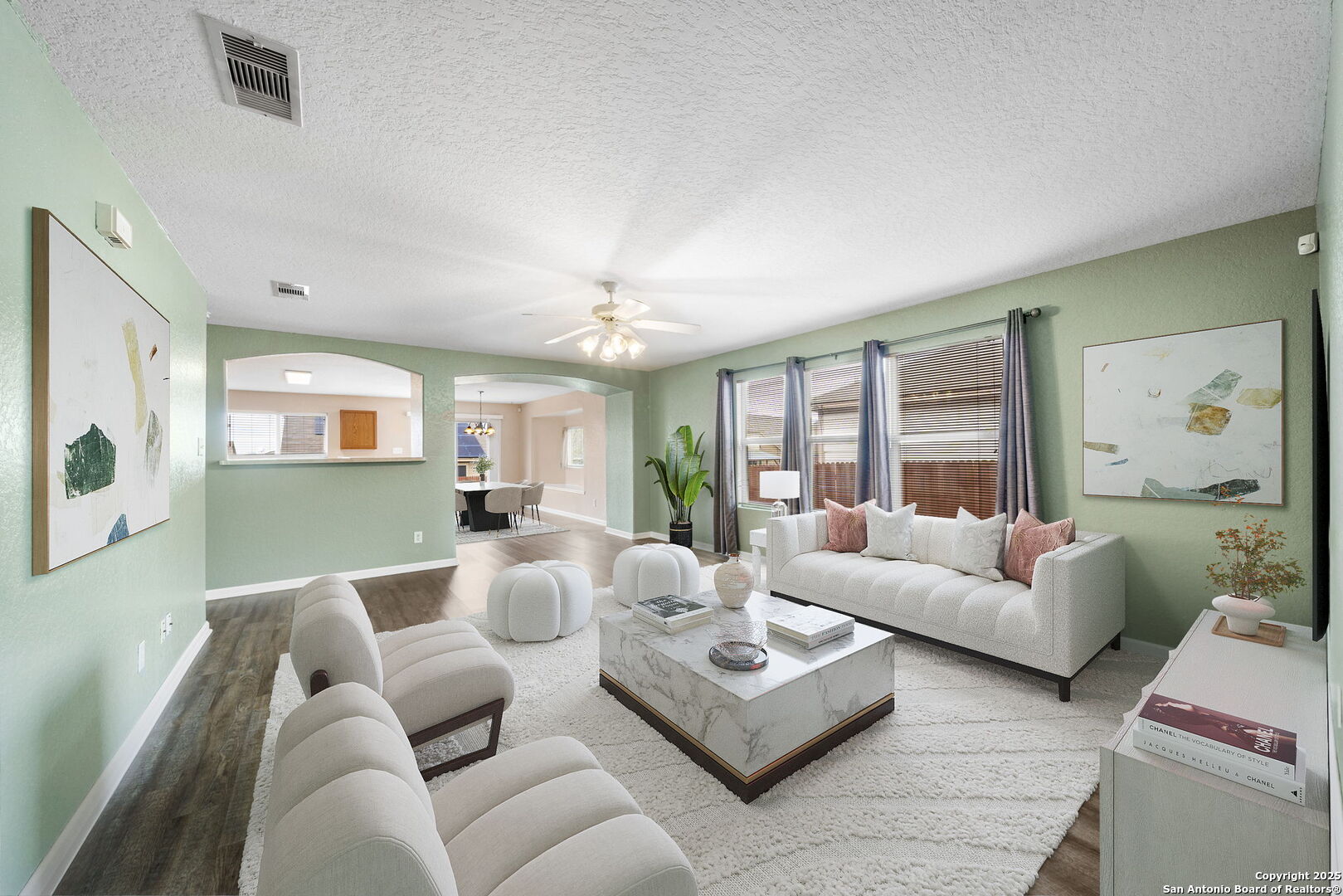 Charming One-Story Home in Prime Location - Instant Equity! Priced to Sell! Nestled in a prime location near I-10, I-35, and major shopping centers, this stunning one-story custom home offers the perfect blend of comfort, convenience, and modern upgrades. Built in 2003, this 3-bedroom, 2-bath residence features an open-concept layout with vinyl plank flooring throughout and plush carpeting in the bedrooms. The spacious eat-in kitchen boasts plenty of cabinet space, a walk-in pantry, a bay window with a window seat, and a new dishwasher. The primary suite offers ample closet space, while the split-bedroom layout provides privacy for all. The ADA-compliant secondary bathroom includes widened doors, a walk-in shower with two grab bars, a new toilet, and upgraded plumbing. Vivint wired-in security system also connected to digital front door key lock included (new owners only need to set up new account). Step outside to enjoy a patio and one of the largest backyards in the neighborhood-ideal for relaxing or entertaining. With a little water, you'll have a lush, vibrant yard! Additional features include: New water heater HVAC system only 2 years old Vivint security system hardwired for all doors and windows ($45/month to activate) CPS-installed electrical box (no upgrade costs) & SAWS water setup Nest thermostat Located in Judson ISD, within walking distance to Wagner High School, and near BAMC, Methodist, and Baptist hospitals (within 2 miles). Enjoy the convenience of grocery stores, gas stations, pharmacies, and newly built shopping centers just minutes away. Easy access to Fort Sam Houston, Randolph AFB, I-10, and I-35. Don't miss out-schedule your showing today!