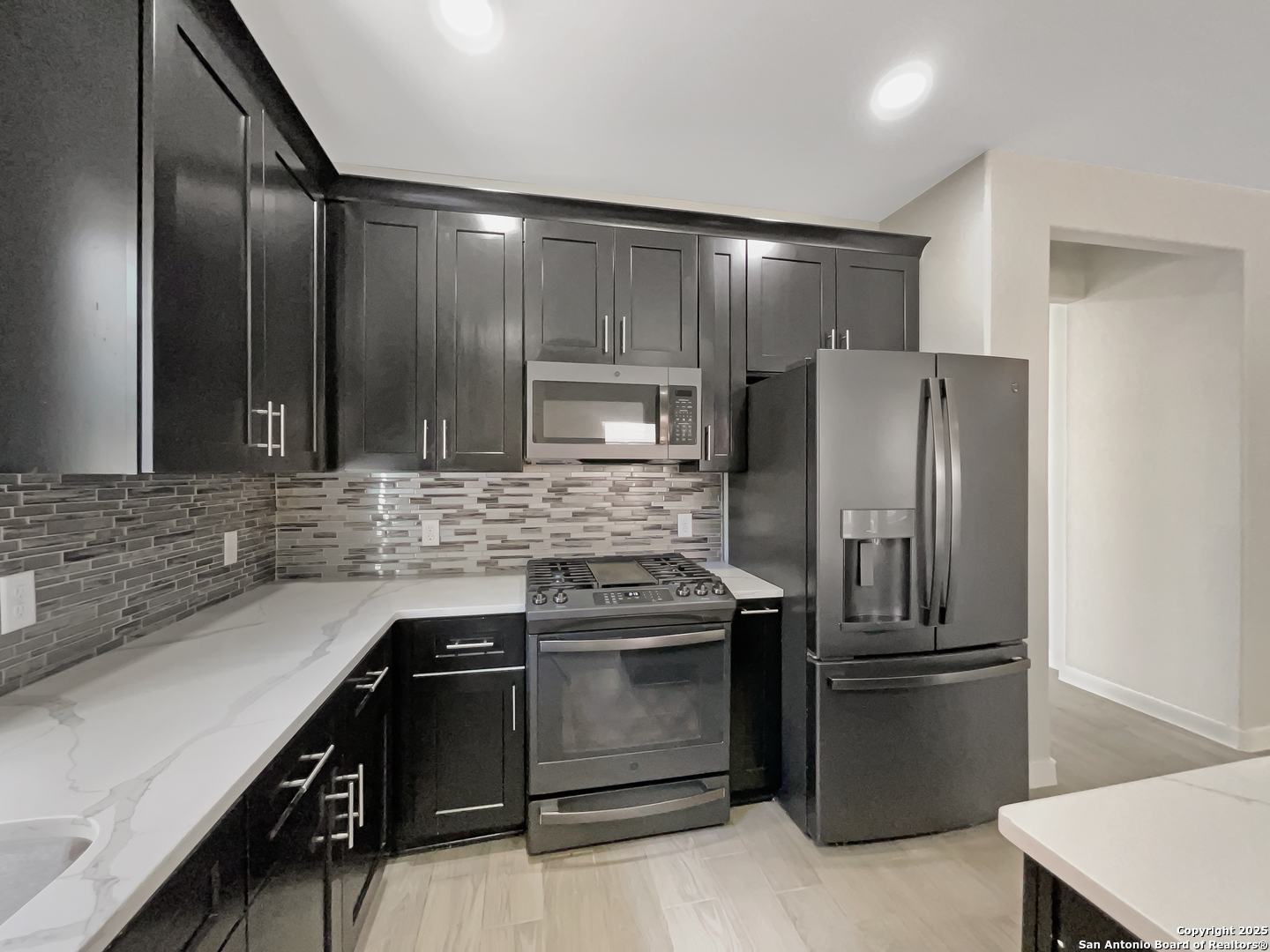 Welcome to this beautifully updated home. The neutral color paint scheme and fresh interior paint provide a modern and inviting atmosphere. The living room features a cozy fireplace, perfect for relaxing evenings. The kitchen boasts a kitchen island and ample counter space, complemented by a stylish accent backsplash and all stainless steel appliances. The primary bathroom offers double sinks for convenience, while the primary bedroom features a spacious walk-in closet. Enjoy outdoor living with a covered patio and additionally storage shed in the fenced-in backyard. Recent updates include partial flooring replacement. This home is a perfect blend of comfort and style. Don't miss this opportunity to make this house your new home.This home has been virtually staged to illustrate its potential.. Home comes with a 100-Day Home Warranty and a 7-Day Home Test Drive to move in 7 days early for free.