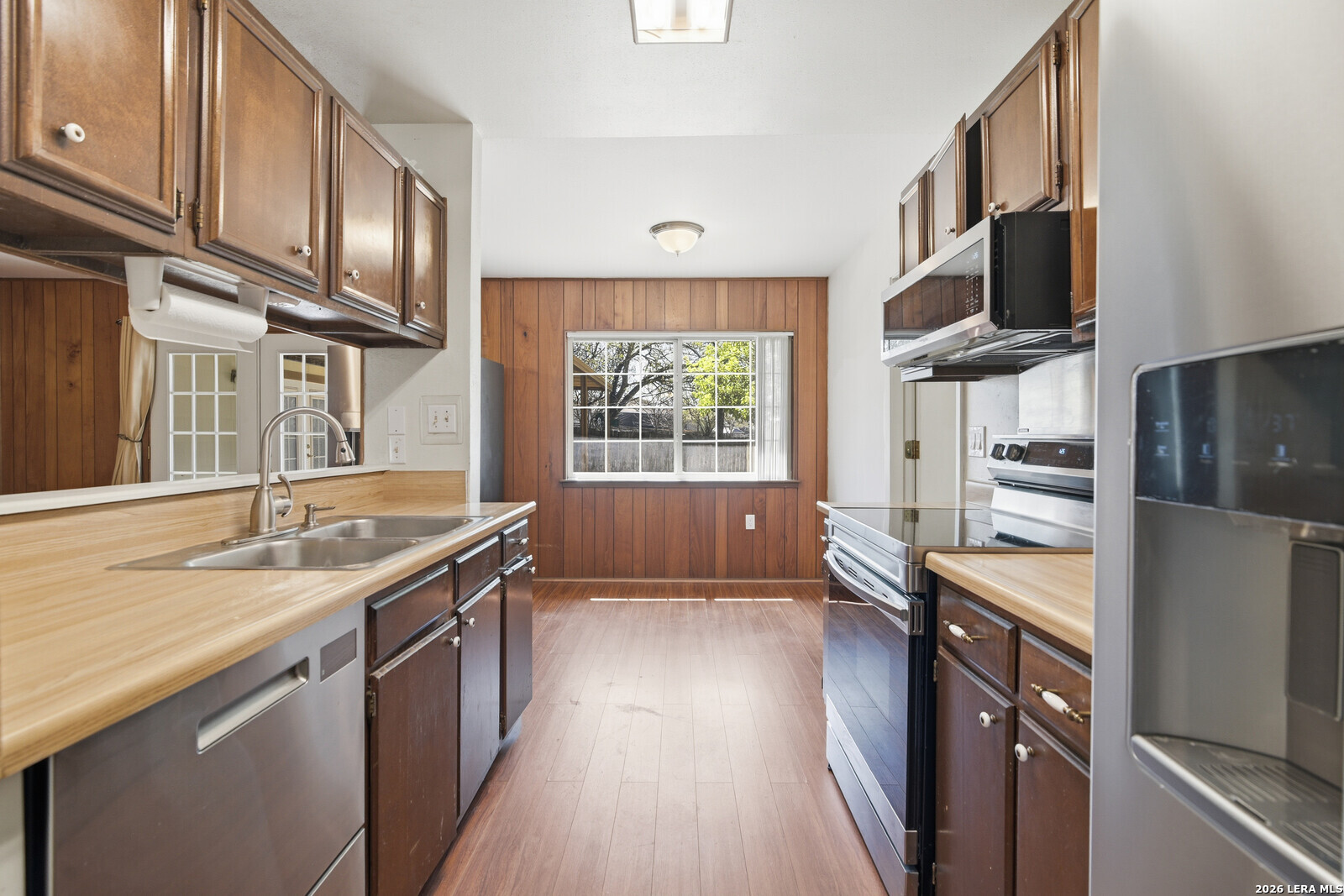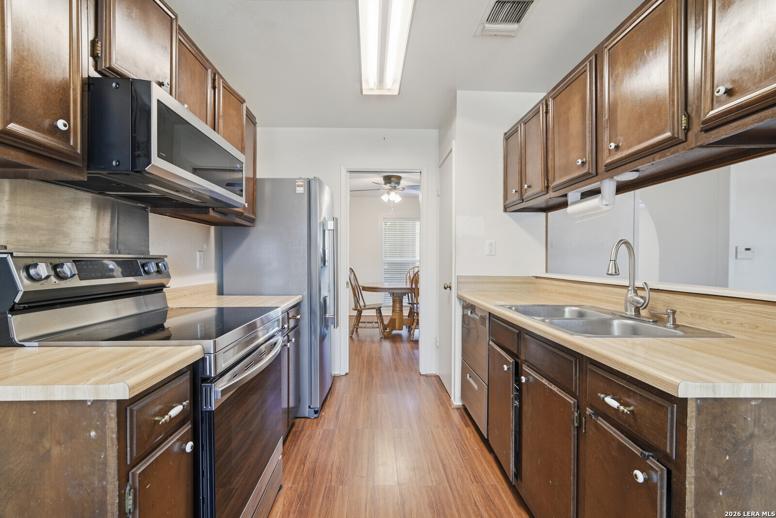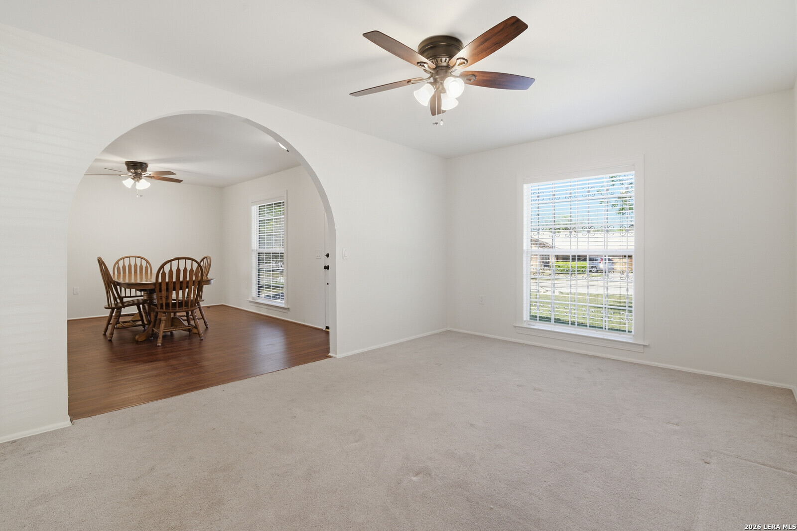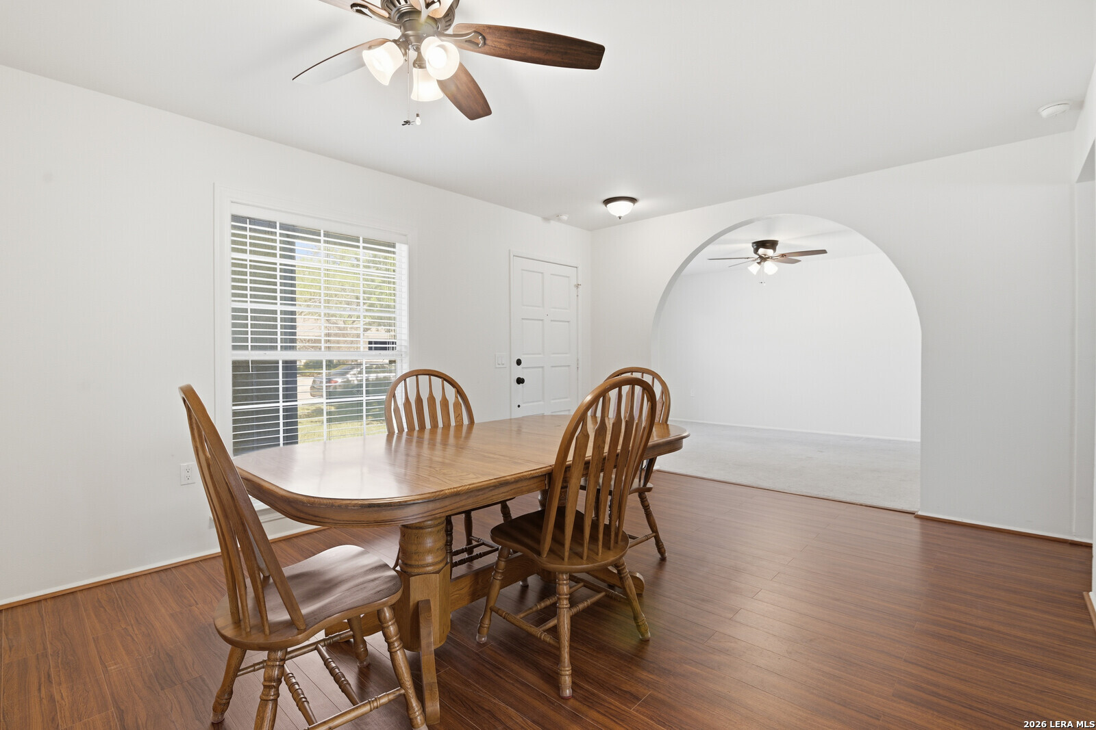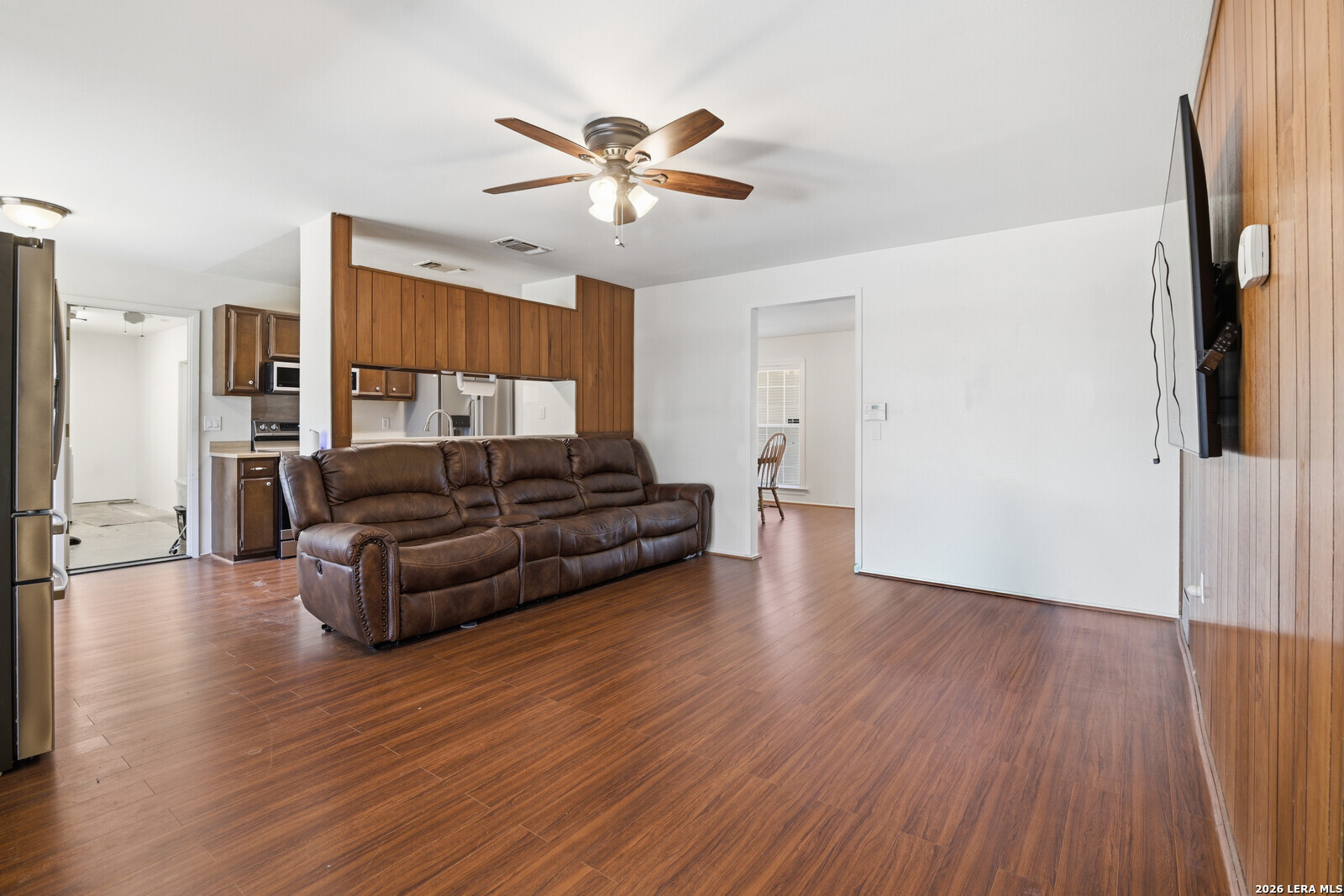 This inviting single-story ranch home offers the perfect blend of comfort, functionality, and thoughtful updates, all set on a spacious lot with a generously sized backyard. Featuring four well-proportioned bedrooms and two updated bathrooms, the home is designed to accommodate a variety of lifestyles while providing both privacy and versatility. Step inside to discover a warm and welcoming interior highlighted by durable laminate flooring that flows seamlessly throughout the main living areas. The layout offers two distinct living spaces, ideal for both everyday living and entertaining. Whether you envision a cozy family room, media space, or a more formal sitting area, these flexible spaces provide endless possibilities to suit your needs. Just off the kitchen, a charming breakfast area provides a more casual setting for morning coffee or quick meals adding convenience and warmth to the home's layout. The kitchen itself has been thoughtfully updated with modern appliances, making meal preparation both efficient and enjoyable. With ample cabinetry, and workspace, it serves as a functional hub for daily living. Each of the four bedrooms offers comfortable accommodations with natural light and ample closet space. The bathrooms have been tastefully updated, blending contemporary finishes with practical design. One bathroom has been specially adapted for wheelchair accessibility, providing ease of use and enhanced mobility without compromising style or comfort. Outside, the property truly shines with its expansive backyard-an ideal setting for outdoor activities, gardening, or simply relaxing in your own private retreat. The large covered patio extends your living space outdoors, offering a shaded area perfect for entertaining guests, enjoying morning coffee, or unwinding in the evenings regardless of the weather. This home combines classic ranch-style charm with modern updates and thoughtful accessibility features, all within a practical single-level design. With its spacious layout, updated interiors, and exceptional outdoor space, it presents a wonderful opportunity to enjoy comfortable, adaptable living in a home that meets a wide range of needs.