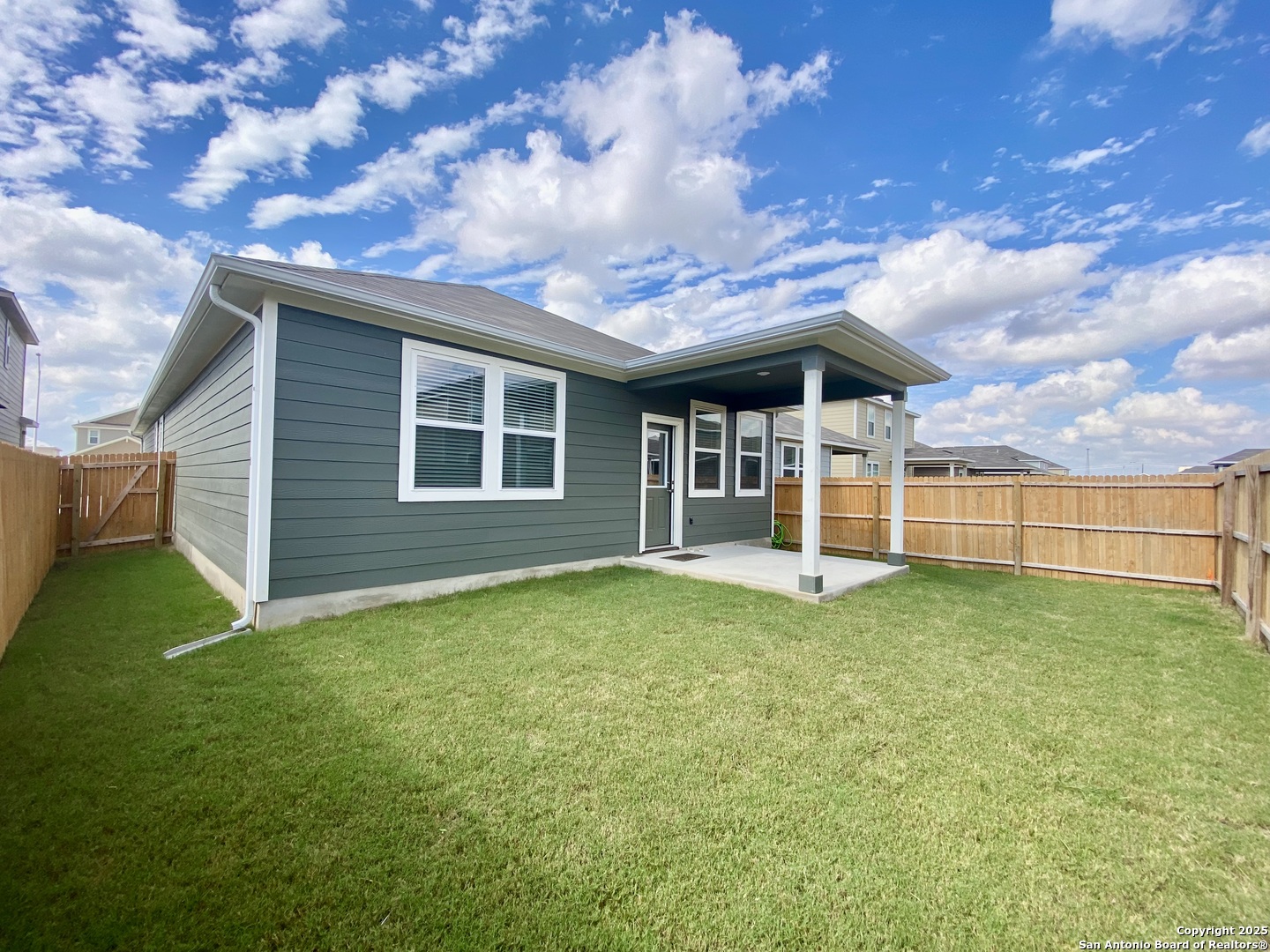 4 bedroom, 2 bathroom, 1600sqft with a 2 car garage!! Brand new home for rent in Park Place community! Be the first to occupy this beautiful home; never been lived in! Convenient central location. Only 2 miles from IH 35 and a 4 miles from HWY 46. This home is an open & spacious single story home with a washer and dryer in place ! Primary bedroom is on one side of the house with all other bedrooms on the other side. Grand kitchen with a center island and brand new stainless steel appliances including a fridge. Enjoy the 36" kitchen cabinets and quartz countertops! The primary bedroom and ensuite has a walk in closet, dual vanities, toilet room, and a walk in shower. Brand new carpet in all bedrooms. Luxury wood look vinyl plank flooring throughout the home. The backyard is completely fenced with plenty of open space and a covered patio. Don't wait to schedule a showing! Clean, spacious, and brand new!! Be the first to occupy this cozy home.
