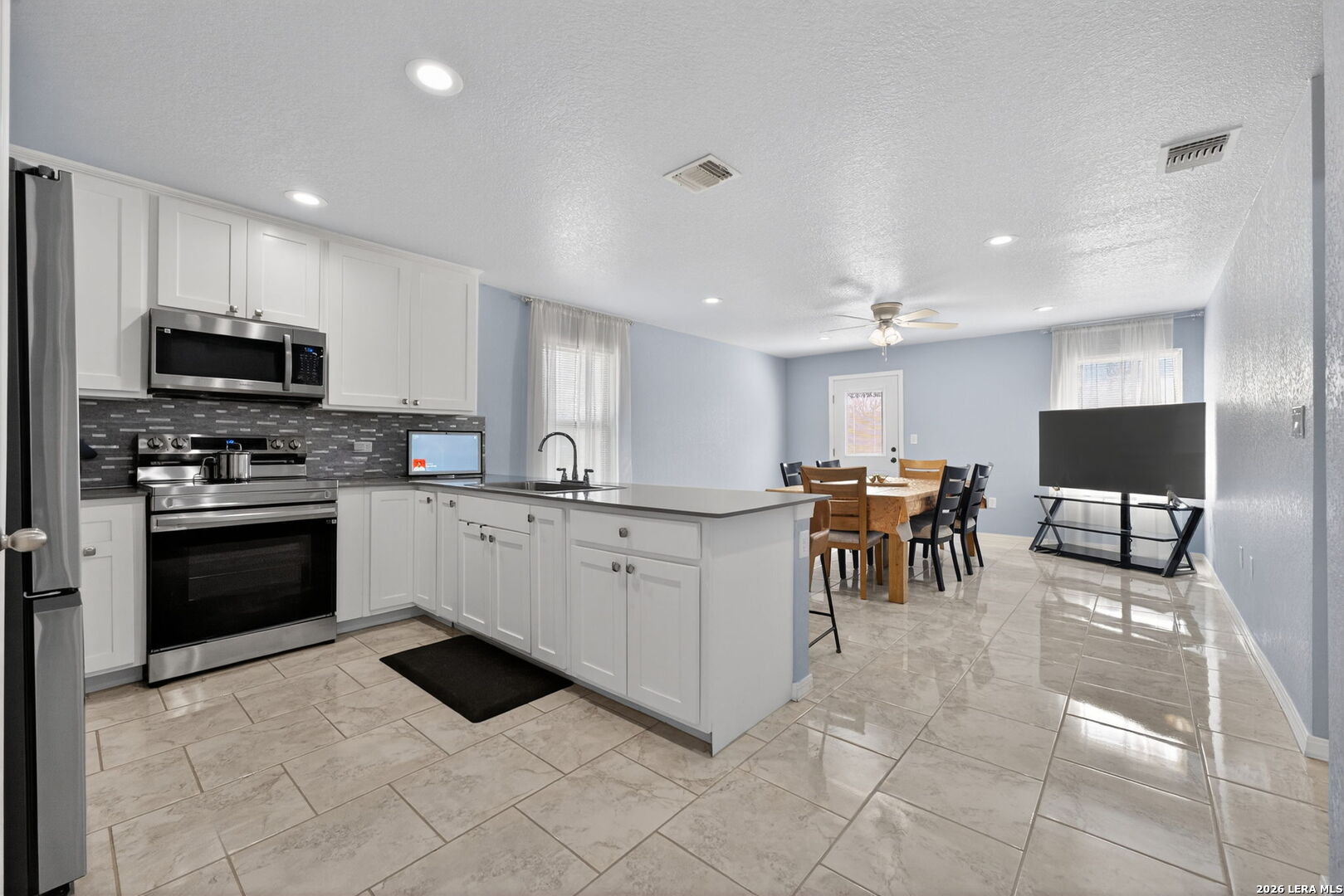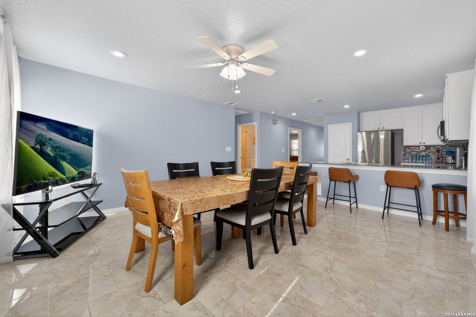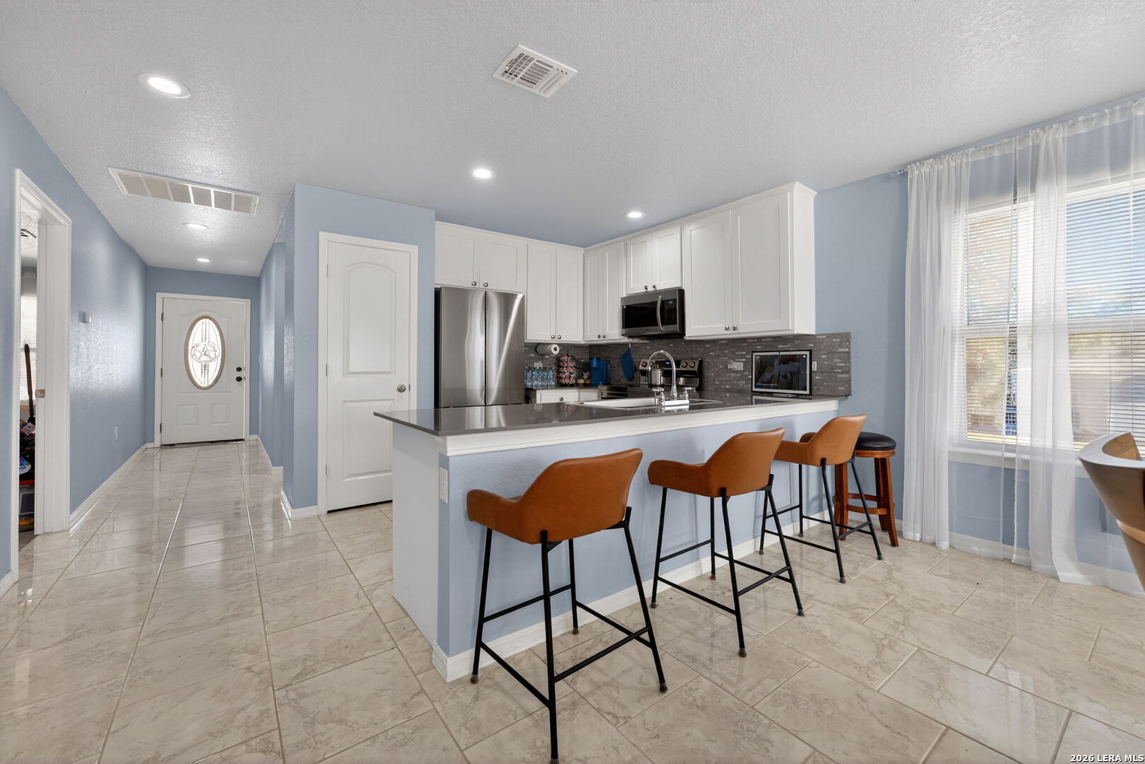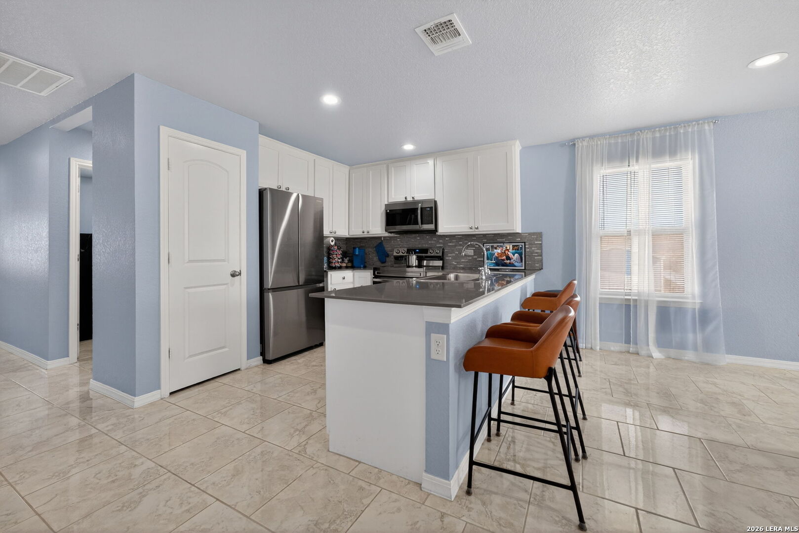 Built in 2021, this well-maintained 3-bedroom, 2-bath home sits on a spacious 0.45-acre lot and offers quality construction with spray foam insulation and added base preparation throughout the property, providing extra stability in an area known for sandy soil. Inside, enjoy tile flooring throughout with no carpet, ceiling fans in every room, and a functional layout with the living area separate from the kitchen. The kitchen features stainless steel appliances, electric cooking with a gas option available, a breakfast island, and a large kitchen sink. Washer, dryer, and refrigerator are negotiable. Bathrooms feature tile showers extended to the ceiling, water-efficient commodes, and upgraded shower fixtures. The exterior offers beautiful brick, a welcoming front porch, and a large lot with room for entertaining, a pool, playground, or future outdoor additions. Enjoy the peace of living on the outskirts of the city with quick access to I-37 and Loop 1604, and close proximity to shopping, dining, parks, and nearby lakes.