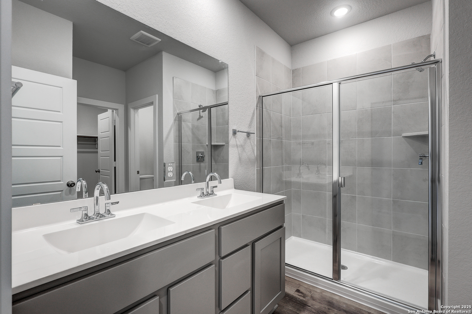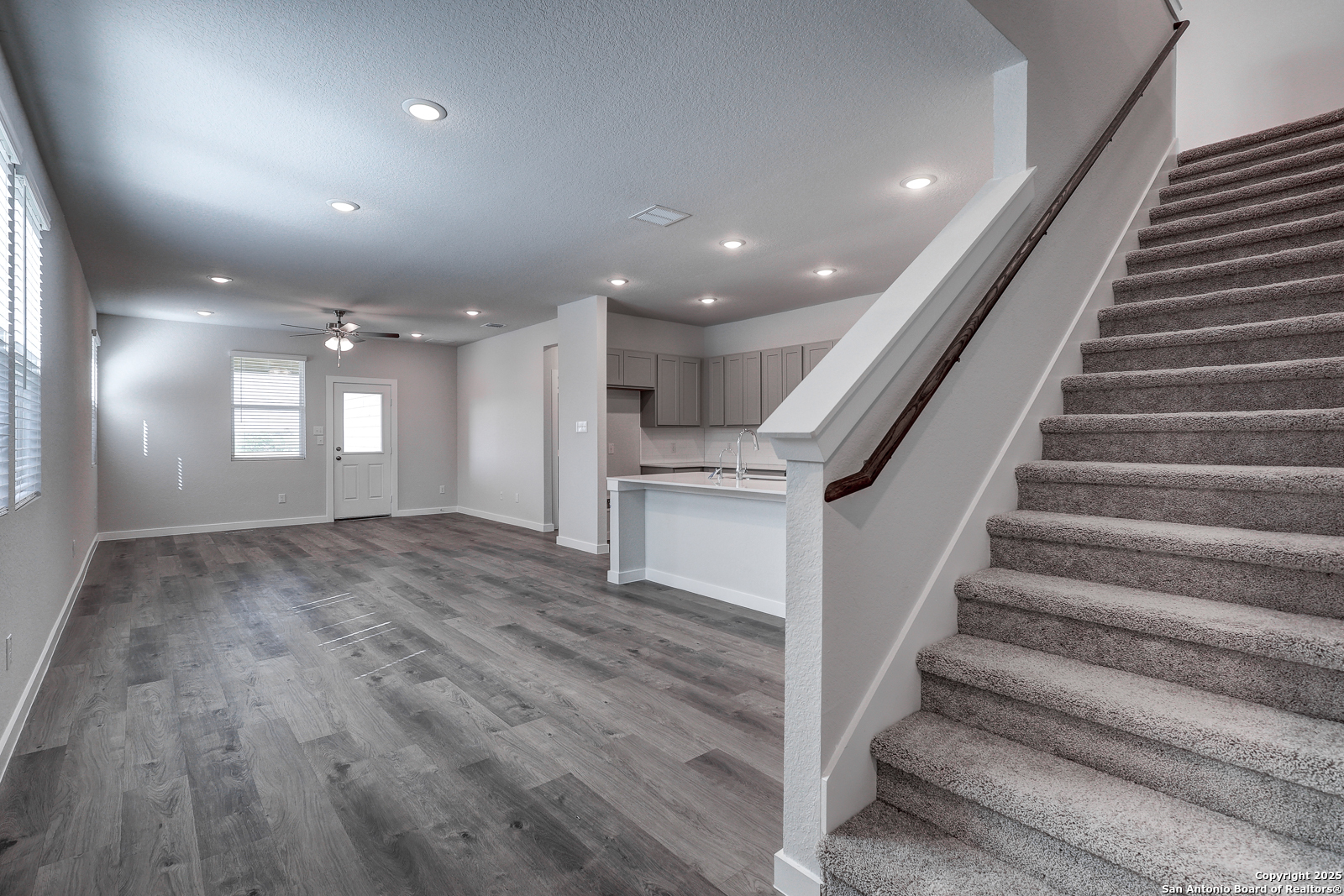Introducing the Frederick at Park Place: a 2,260-square-foot haven that blends functionality with modern living. This two-story home invites gatherings in its first-floor, open-concept great room, home to a living room, dining area, and a well-equipped kitchen complete with a walk-in pantry and a center island. The owner's suite is nearby, offering a large walk-in closet and a private bath with dual vanities. Upstairs, an open loft adds to the home's spacious feel. Three additional bedrooms and a full bathroom round out the plan. Additional home highlights and upgrades: 36" white kitchen cabinets, quartz countertops and backsplash Luxury wood-look vinyl plank flooring in common areas Stainless-steel appliances Additional recessed lighting throughout home Cultured marble countertops and modern rectangular sinks in bathrooms Landscape package with sprinkler system Keyless Entry Exceptional included features, such as our Century Home Connect smart home package and more!