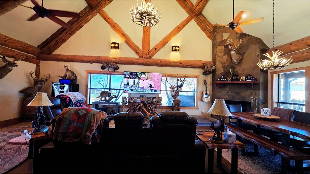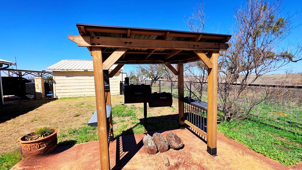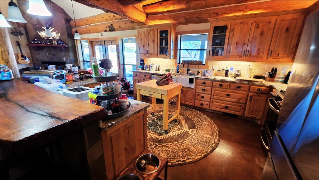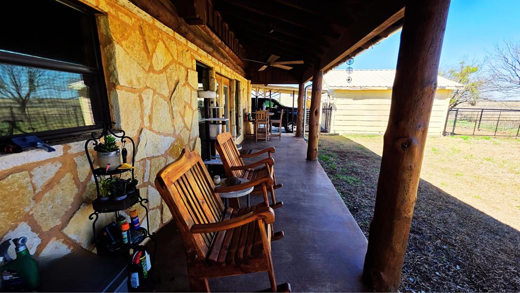 123 Mas y menos acres Great Mix of Farm / Native Pasture for Hunting, goats, & cattle. This True Cattleman's Ranch to run yearlings on w/ 2 maybe 3 cuts a year & be able to feed all winter. Once you Enter the Amazing Sandstone Custom Wrought Iron Diamond J Gate you will drive a crushed Granite Road All the way to the Lodge. The German Style Rock Lodge is a micro version of the Yellowstone Lodge with Amazing Craftsmanship at every turn & from the kitchen overlooking the Den feels very Homey. This 2600 +/- sqft 3 Bed / 2.5 Cabin is tastefully decorated w/ Custom wood cabinetry, slate tile, Antler Chandeliers, front & back porches, mesquite / granite countertops, & rock accents. The house features 2 Zoned AC Units, tankless water heater, propane, gas stove, downstairs master w/ Garden-claw tub & separate shower. This would make a Great Full time Home or a True Getaway place for the Family. Close to feed stores, shopping, Dining, Golf, fishing, lakes, & rivers 8 miles NE of Brady on Highway 190. Storage & Outbuildings next to home is a Carport w/ Climate controlled storage / workshop / craft rooms. A short walk over to 6200 +/- sqft Shop outer 2 bays are concrete floored Spray foam insulated central bay is for tractors, bailers, & Equipment. There is Also a neat 2800 sqft 1900's Goat / sheep barn missing roof from recent tornado but can easily be repurposed. Wildlife: Whitetail most common, Bobcat, Quail, Dove, Turkey, Occasional Axis, Coyote, badger, & porcupine. This property is in a government trapping program. Services: Rochelle Water, AEP / Trieagle Power, CTTC / Brady Communication for Internet https://centex.net/