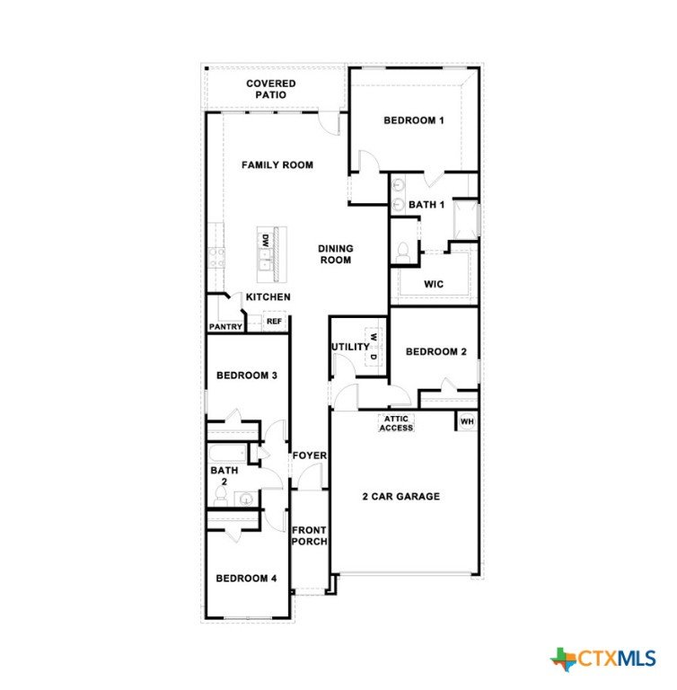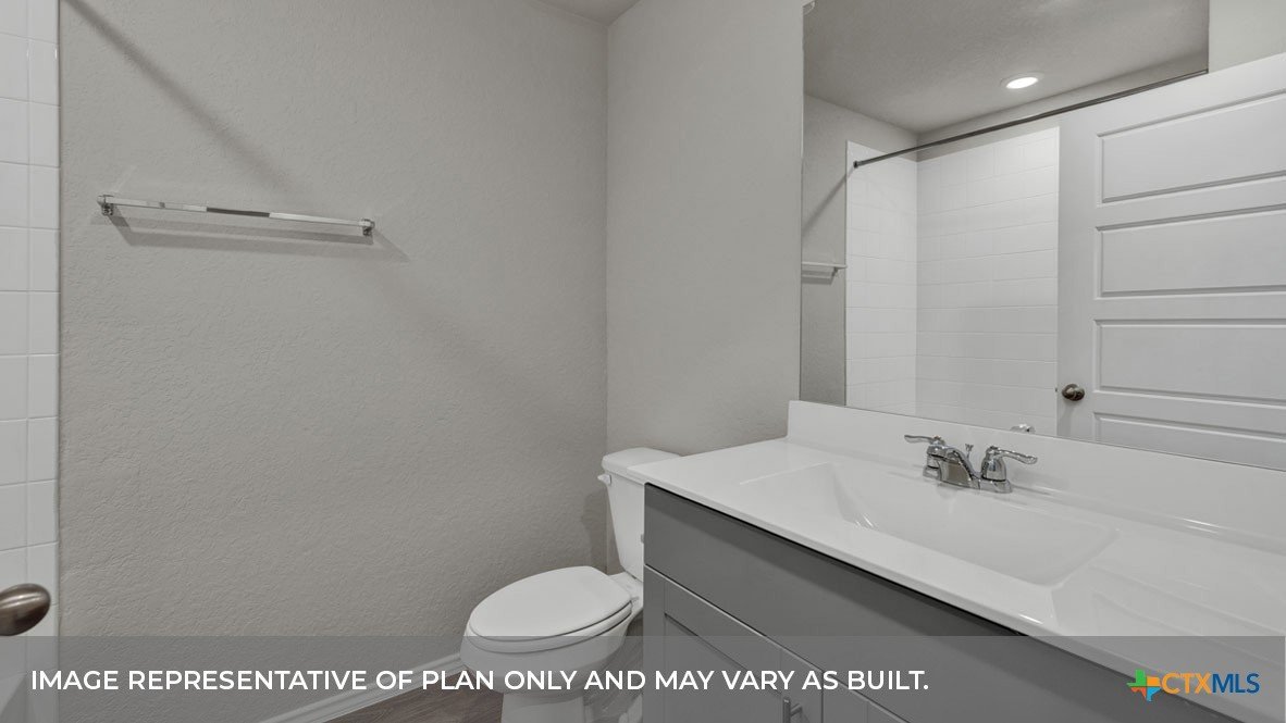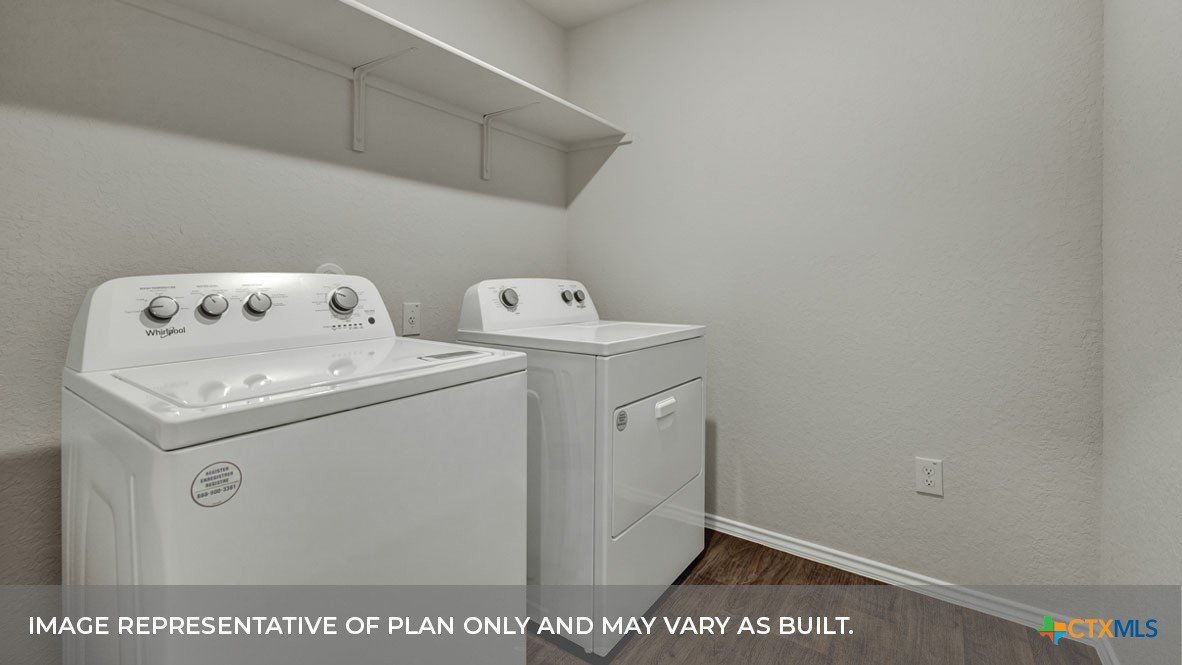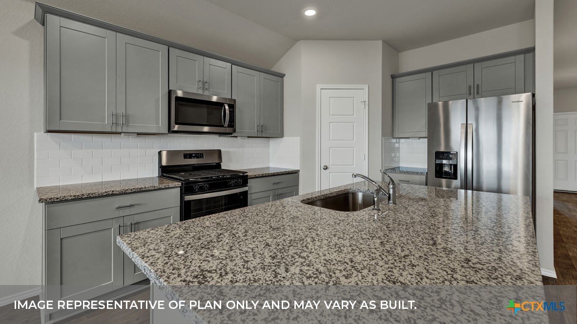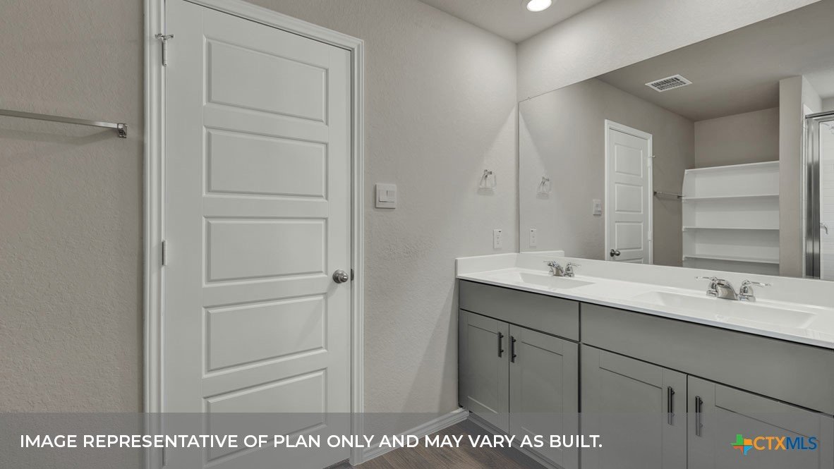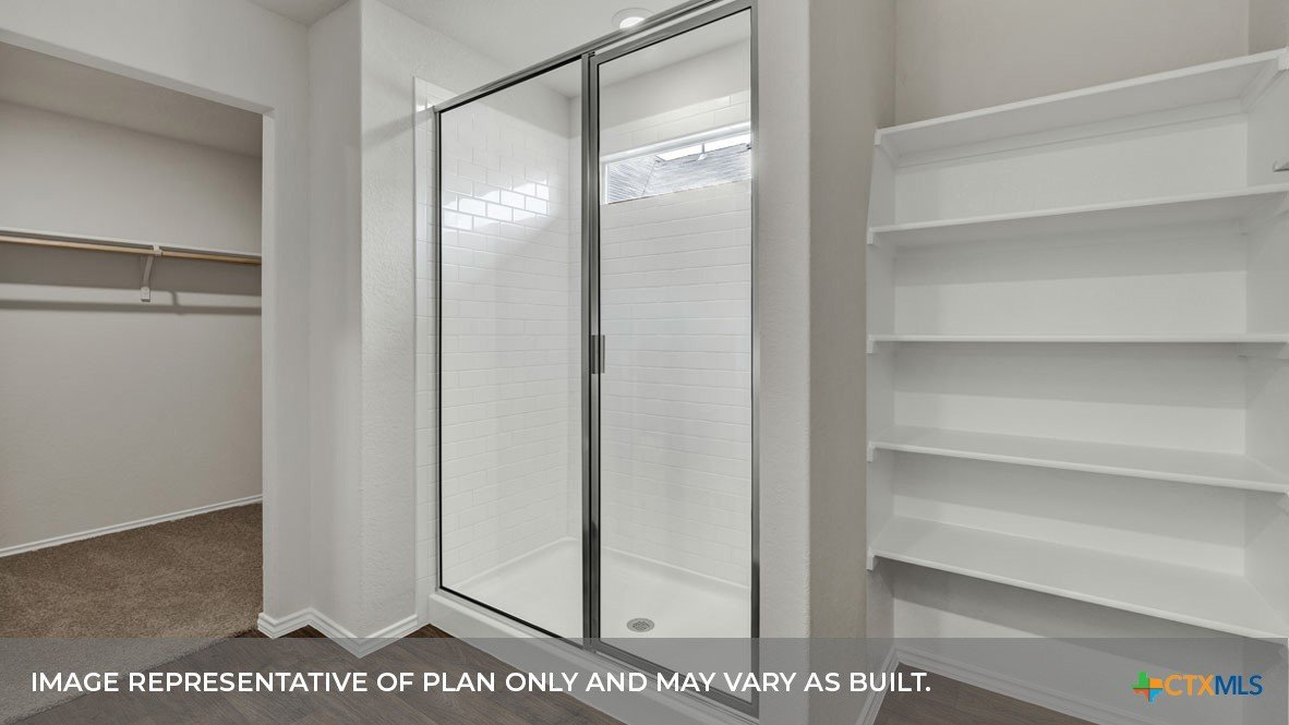 MAY COMPLETION. NO BACKYARD NEIGHBORS. Find all the space you need in our Easton floorplan at Saengerhalle Meadows, one of our communities in New Braunfels, TX. This one-story home is perfect for any family, thoughtfully designed with 4 bedrooms, 2 bathrooms, 2 car garage across 1,672 square feet. Our homes in Saengerhalle Meadows feature farmhouse exteriors. Walk through the covered entryway and make your way down the hall to the main living space. The kitchen, dining and family room are open,built to make cooking, eating, and entertaining a pleasant experience for family and friends. The L-shaped kitchen includes granite countertops, a large island with an undermount sink, a corner pantry closet, stainless-steel appliances and 36’’ upper cabinets. Enjoy the natural light with three rear windows looking out to the backyard. Off the family room is the primary bedroom, with its own attached bathroom. This relaxing bathroom space features a 5’ walk in shower, double sink vanity, separate toilet area with a door, and a walk-in closet. Stretch out and relax at the end of your day in this spacious and private ensuite. At the front of the house, you will find bedroom 3 and 4, with the secondary bathroom conveniently located between the rooms. Bathroom 2 includes a shower/tub combination. Across the foyer and down a short hall is the utility room and bedroom 2. Whether you use these rooms as an office, child’s room or guest room, there is enough space for work, sleep, and play. The Easton includes vinyl flooring throughout the common areas of the home, and carpet in the bedrooms. All our new homes feature a covered back patio, full sod, an irrigation system in the front and back yard, and a 6’ privacy fence around the back yard. This home includes our America’s Smart Home base package, which includes the Amazon Echo Pop, Front Doorbell, Front Door Deadbolt Lock, Home Hub, Thermostat, and Deako® Smart Switches.