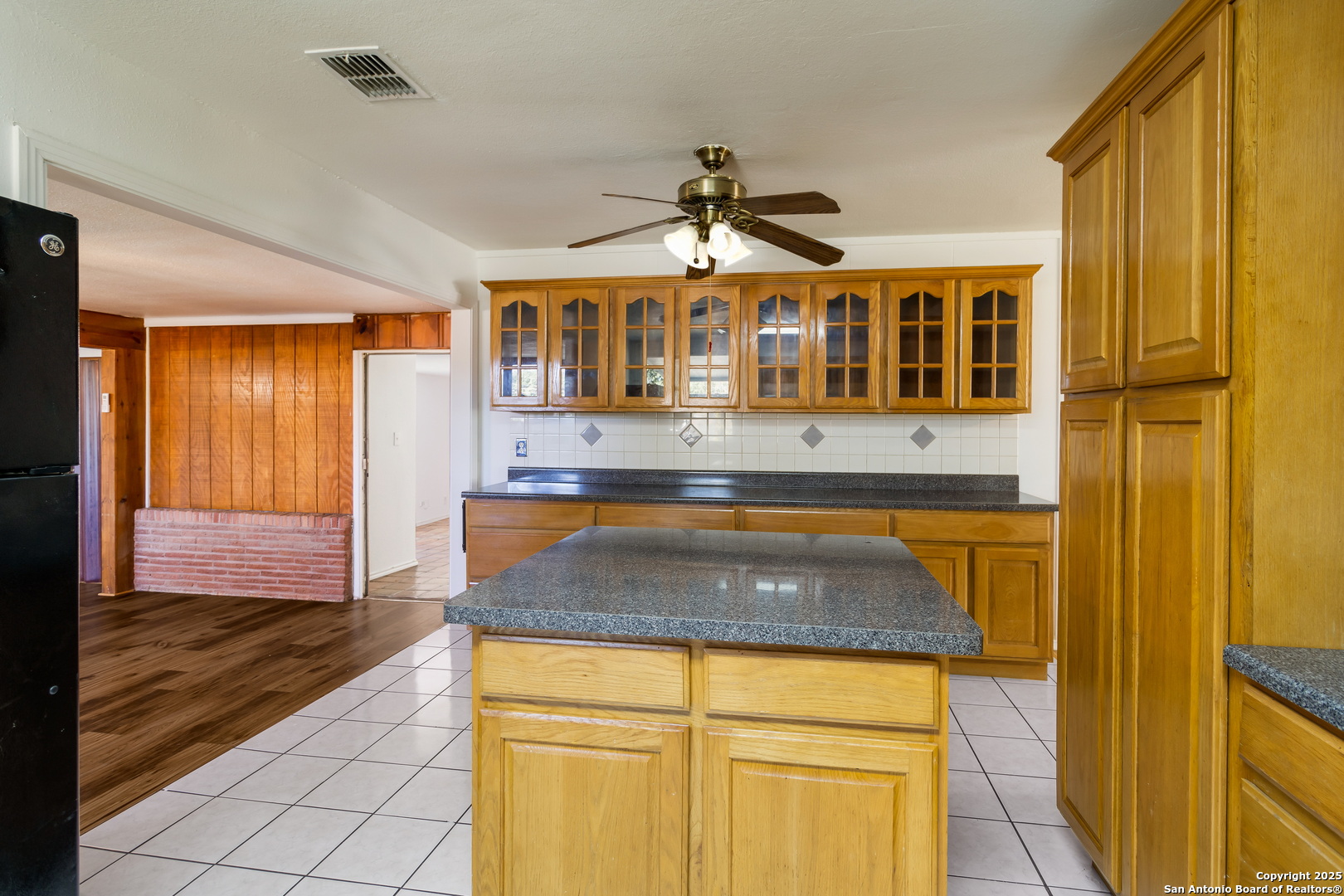 Welcome to 4342 Eisenhauer Rd, a charming 3-bedroom, 2-bath single-story home offering 1,812 sq. ft. of comfortable living on a spacious 0.21-acre lot. The open floor plan includes two inviting living areas: a formal living room at the front and a cozy family room with a beamed ceiling that connects to the dining area. The centrally located kitchen features a large island, custom cabinetry, and plenty of counter space for everyday cooking or entertaining. A private office provides the perfect spot for remote work or study. The primary bedroom includes a convenient half bath, while the additional bedrooms offer flexibility for guests or hobbies. Step outside to a large, fenced backyard filled with mature fruit trees: including pomegranates, pecans, peppers, and a young lemon tree. With plenty of room to play, relax, or garden, this outdoor space is a true highlight. Conveniently located near East Terrell Hills Elementary, shopping, and major highways, this home offers comfort, charm, and accessibility.
