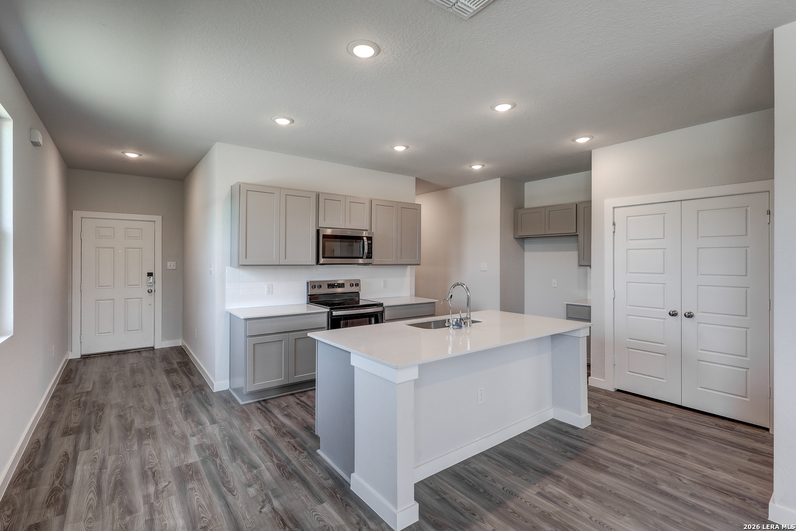 Welcome to the Isabella at Park Place, where elegance meets versatility in a single-story floor plan. This home embraces the open-concept lifestyle, with its seamlessly connected great room, dining area, and kitchen-a layout perfect for everything from entertaining to game night. The owner's suite features a private bathroom and a large walk-in closet, and the remaining three bedrooms share a bath with dual vanities. Additional home highlights and upgrades: Oversized lot 36" gray kitchen cabinets, quartz countertops and backsplash Luxury wood-look vinyl plank flooring in common areas Stainless-steel appliances Soft water loop upgrade Additional recessed lighting throughout home Covered patio Garage door opener with two remotes Landscape package with sprinkler system Exceptional included features, such as our Century Home Connect smart home package and more!
