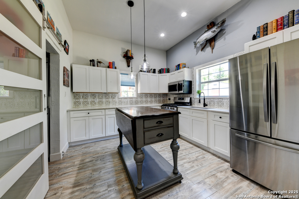 Talk about a great location... here it is. 1.6 miles from the AT&T Center, 3 miles from Downtown, The Pearl and many more San Antonio attractions. This is a home originally built in 1930 but has an updated interior with all the modern conveniences and styles. All new within 4 years; flooring, kitchen remodel, AC, roof, appliances. Within the last 2 years; foundation repair, covered gazebo, garden paths. It's currently set up as a 2 bedroom, 2 bath, with living and dining room but the space could definitely be arranged to accommodate an additional bedroom. Unexpected backyard treats are the mature fruiting trees including pomegranate, pear, peach, apricot, olive, blackberry, fig and mulberry. Covered gazebo in the backyard is private and makes it perfect for entertaining with family and friends. Perfect starter or great investment home opportunity with rental/Airbnb potential.