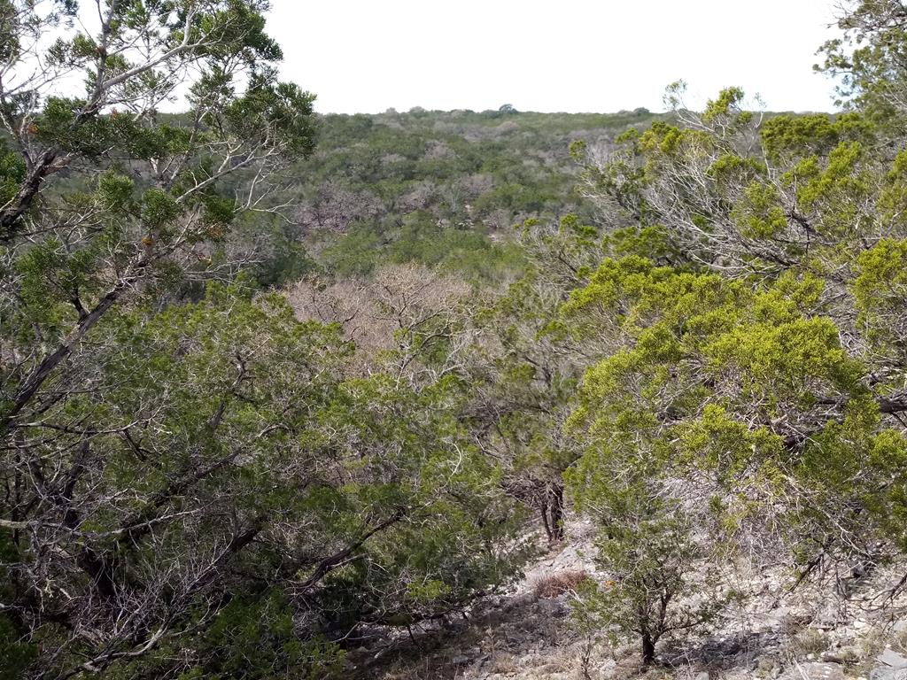 Large acreage tract with long distance views and spring fed creek down in the canyon. Beautiful topography changes with terraced elevation drops and rock formations. Lots of hardwoods, backs up to large ranch, lots of game, and paved road access. Adjoining 7.93 acres lot also available at 499 Connie Lane. Access to Guadalupe Riverfront Park for a nominal annual fee.