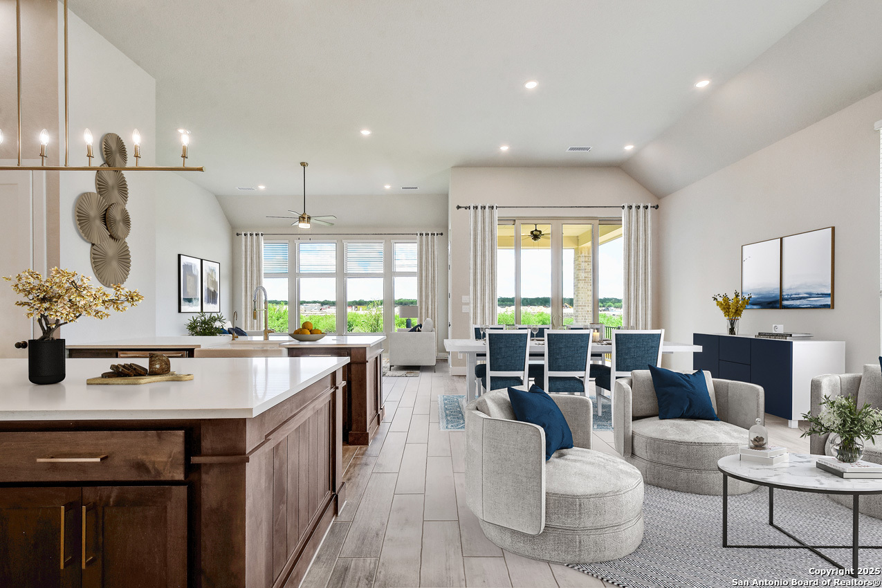 MODLE HOME PLAN ON GREENBELT! Nestled on a green belt in the brand new community - Mayfair, this stunning single-story home offers a seamless blend of elegance and functionality. The heart of the home is the incredible transitional kitchen, a chef's dream featuring modern amenities paired with timeless design elements. This home has two generous size islands, sleek countertops, custom cabinetry, and top-of-the-line appliances, creating a perfect space for both culinary adventures and casual gatherings. Expansive windows in the adjoining dining and living areas provide breathtaking views of the lush green space that stretches beyond the backyard, offering privacy and tranquility. With its open-concept layout and sophisticated style, this home is a sanctuary for those seeking a blend of comfort and beauty.