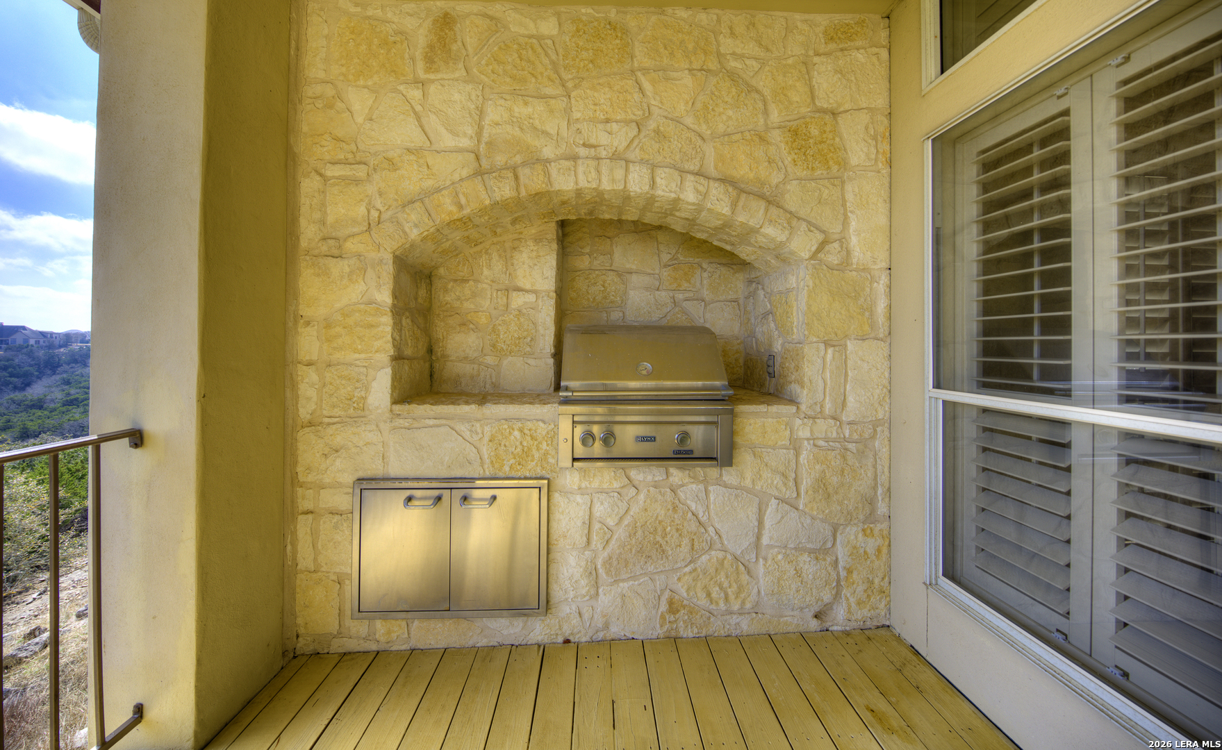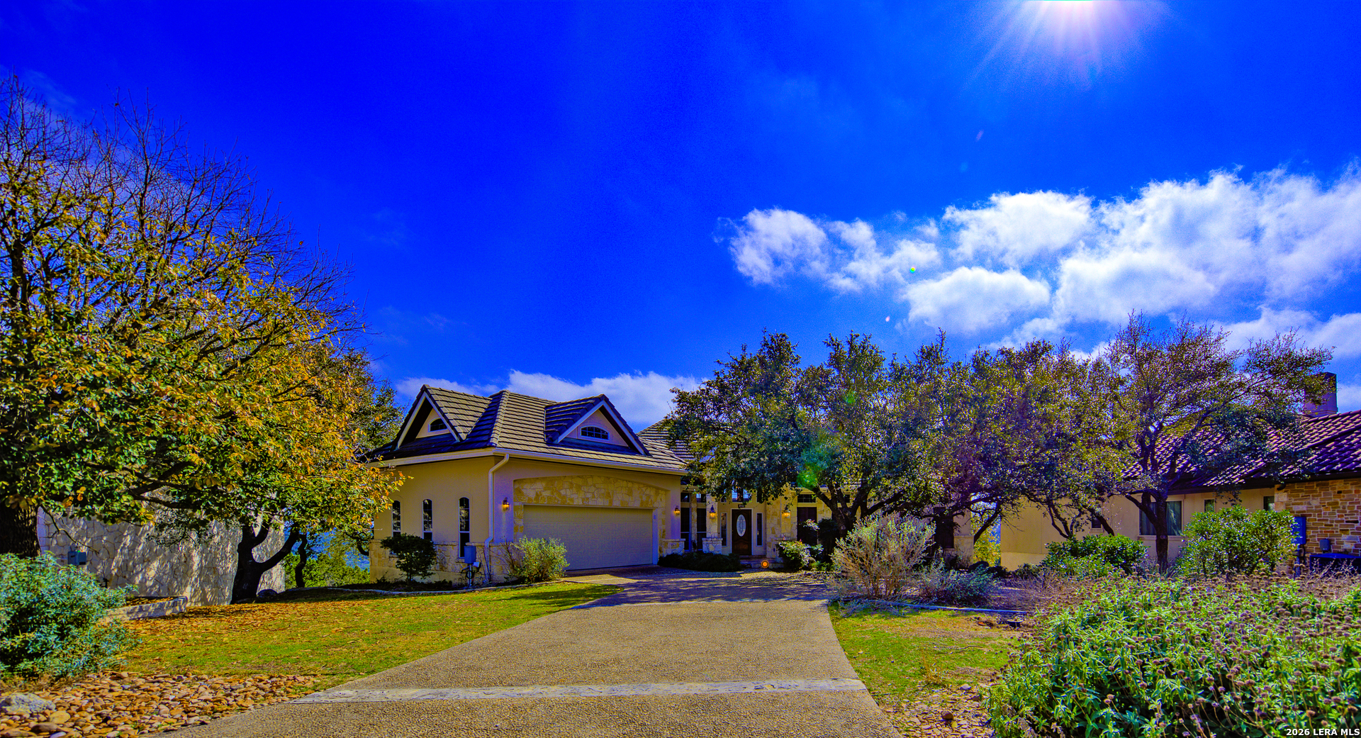 Gated Community of Exceptional Homes Overlooking Tapatio and the Texas Hill Country. *** Very nice HOA amenities within walking distance of this home.*** Beautiful Home inside and out! *** Large Primary Suite with Outside Access to the Huge Covered Porch overlooking the Texas Hill Country. *** High Ceilings & Custom Plantation Shutters plus Recent Upgraded Flooring *** Primary Suite has a very large bath plus a decked out Walk in Closet *** The Living Area is not only spacious, it has incredible views & gorgeous flooring but also A High Cathedral Ceiling and Plantation Shutters *** Of course there is a Formal Dining Area (Potential Office), A Large Breakfast Area W/Long Range Eastern Views *** The Island Kitchen has everything from lots of cabinets, counter space, and a walk-in Pantry to an Island W/Gas Cooktop, Granite Countertops, and all kinds of lighting! *** The Huge Covered Porch/Balcony is where you can watch the sunrise and spend time at the end of the day in the Shade enjoying the long range view. Plus it has a built-in BBQ at one end. *** This floorplan is described as having a WALK OUT BASEMENT meaning that the lower area was cut out of the hillside and enjoys the views, has a Large Covered Patio W/Fireplace. This area has 2 Large Bedrooms, A Large Paneled Living Area W/Built-Ins, 2 Baths that share an Incredible Walk-In Shower W/Steam Capability. *** The Garage is spacious! *** Because this in near the end of a Cul-De-Sac, there is the ability for additional parking for guests when you entertain *** This is one of the quietest streets as this is in a gated community at the end of a Cul-De-Sac and maybe only serves a dozen homes on its portion of the street. The HOA facilities are very close and the Tapatio Clubhouse and restaurant are open to the public. Ask Tapatio Springs for details concerning golf and tennis. There are 2 Ways to get to this home; Highway 46 West and Deep Hollow to Tapatio and our favorite is IH10 & Johns Road taking Johns Road to and past the Tapatio Club House to the gated entrance to the home (5.7 miles).