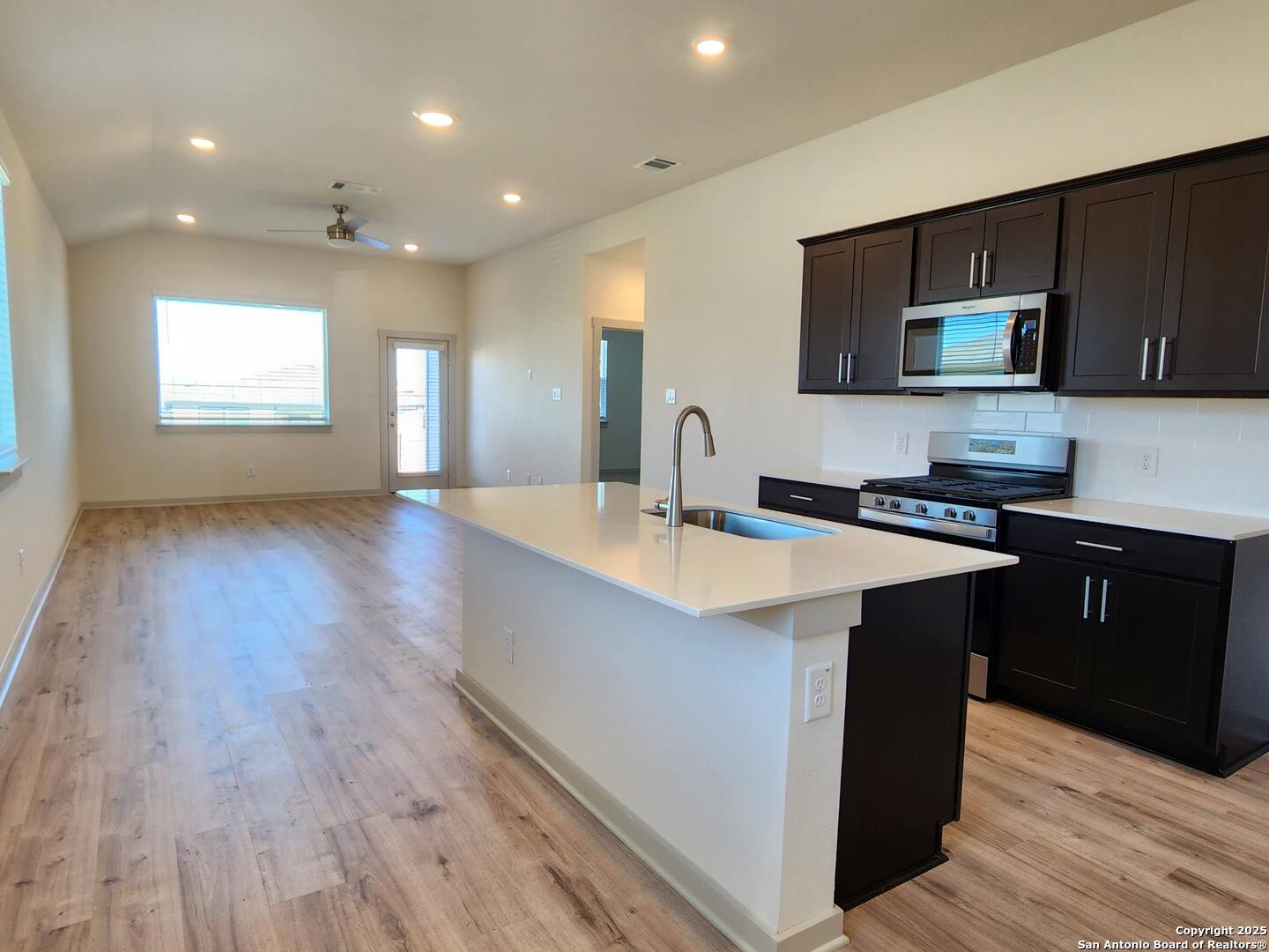 The open concept, kitchen/living room/dining is light and bright and accented by the wood look, vinyl plank floors, white quartz countertops and large picture window to the generously sized back yard. Stainless steel appliances, gas cooktop and a kitchen island with a large undermount kitchen sink compliment the kitchen. The master suite is located off the family room and includes a walk-in closet, walk-in shower. and dual vanity. Relax and unwind under the covered patio. Irrigation system included. Great location close to San Marcos outlet center with easy access to I-35 and less than 5 miles to shopping, bars, restaurants, grocery stores and more!, Green Energy Efficient Appliances, Interior Features: Smart Home, Main Level Bedrooms: 3, Tenant Pays: All Utilities, Utilities: High Speed Internet Available, Water Source: Public, PrimaryBathroom Features: Walk In Shower