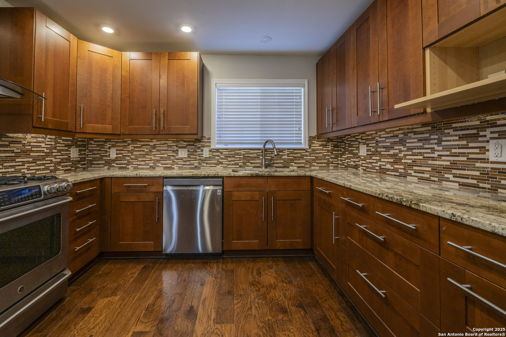 Mid Century Move in Ready 3/2/2 Home ** Central SA... Right between 281/San Pedro & Blanco...close to 410 Loop ** Established Neighborhood w/ No HOA ** 3/8inch Wood Flooring throughout **You will love this Kitchen! - Granite Counters, Recessed Lighting, Custom Cabinets w/Soft close Drawers, Top of the Line Stove w/ Gas Cooking ** Primary Bedroom has two closets...Beautiful Bath w/ Walk in Shower, Double Vanity ** New Paint Inside & Out ** Extra Large Utility for W/D...Indoor Storage Rack...Cabinets...Utility Sink ** French Door out to the Backyard for Family Fun... Large Storage Shed, Large Gate/ Street Access, Large Patio Pad ** Come See for Yourself!!