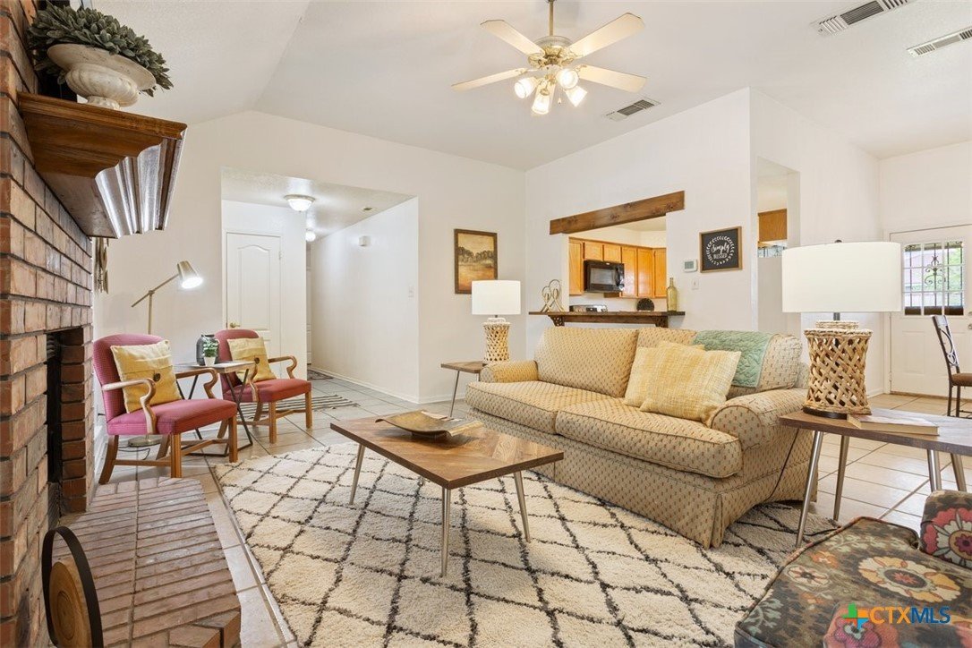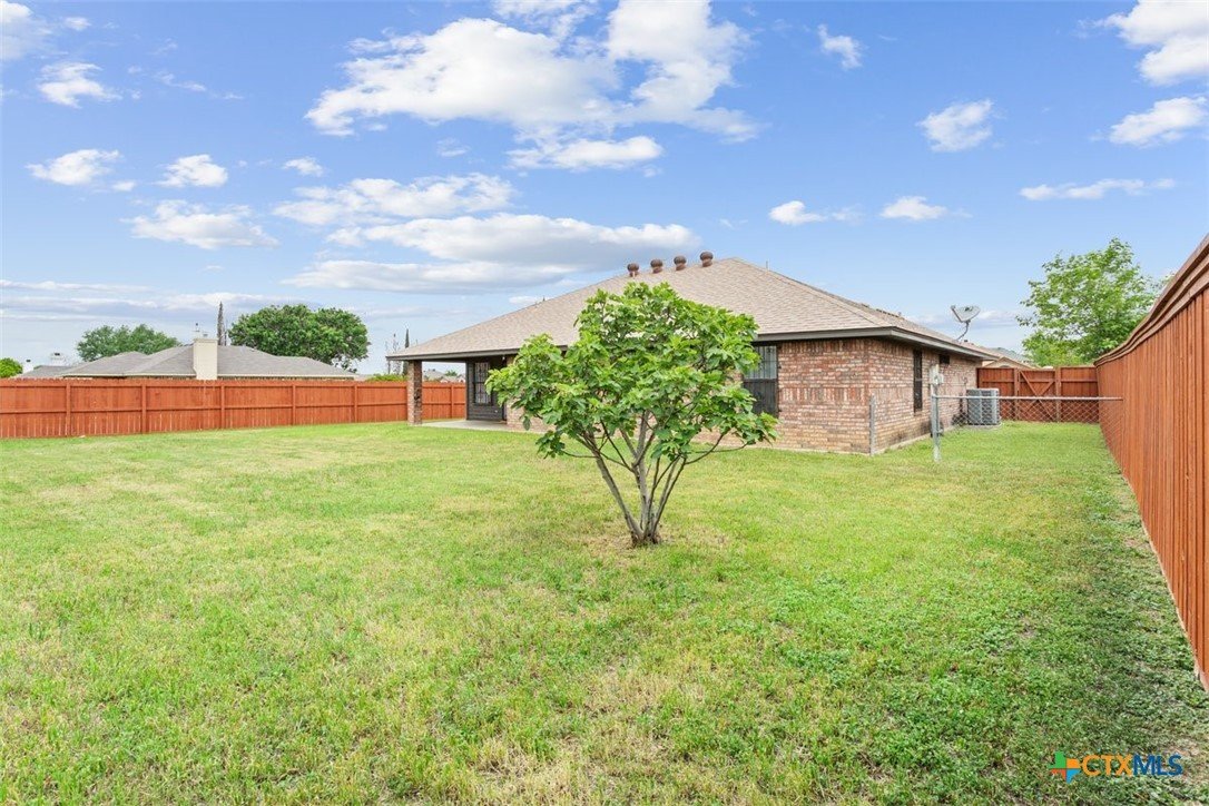 Huge corner lot, Privacy fenced backyard with a covered patio and nice front covered porch. This 3/2/2car features updated paint, recent A/C Heat, new carpet and has been professionally cleaned. Ready for you to move in and call it Home! The primary has a soaking tub and separate shower with 2 walk in closets. The kitchen is open to the living room and just off the dining space. Nice wood burning fireplace in the living area. Home is walking distance to schools and the neighborhood park with sidewalks.