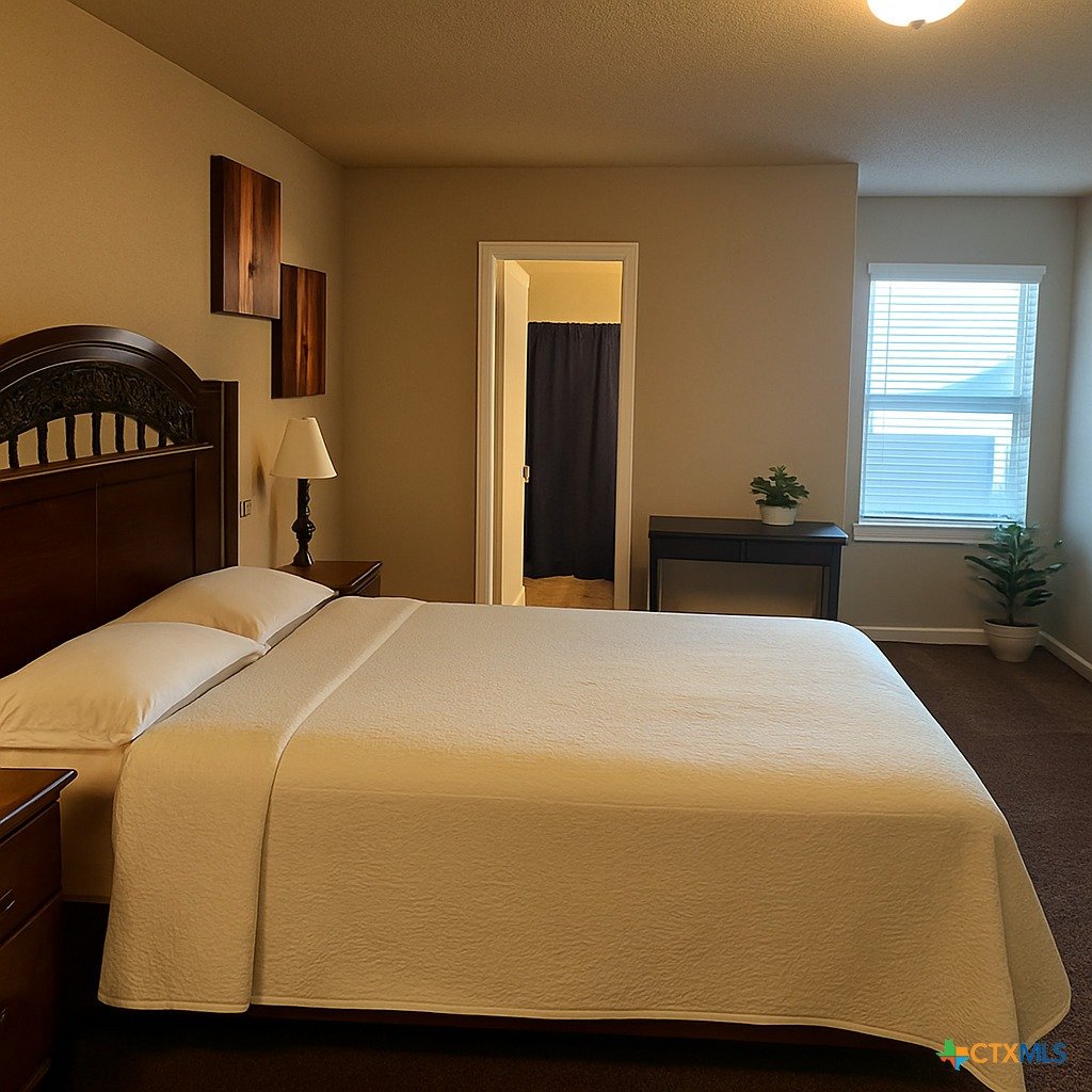 Welcome to this beautifully maintained 4-bedroom, 3-bath home in the desirable Goodnight Ranch community of Killeen. Built in 2019, this spacious property offers a modern open layout with vinyl plank flooring throughout, providing a seamless, low-maintenance interior. The kitchen opens directly to the living and dining areas, creating a bright, functional space perfect for gatherings. The split-bedroom floor plan enhances privacy, with the primary suite featuring a double vanity, separate shower, garden tub, and a large walk-in closet. One secondary bedroom includes its own private full bathroom, ideal for guests, teens, or multigenerational living. This home also includes a dedicated laundry room and attic flooring for extra storage. The backyard is generously sized, offering room for outdoor fun, gardening, pets, or future enhancements. Perfectly located near top local attractions such as Texas A&M–Central Texas, Stonetree Golf Club, Lions Club Park, Stillhouse Hollow Lake, Killeen Mall, Market Heights, and numerous shopping and dining options. Enjoy quick access to Fort Cavazos, I-14, major employers, and medical facilities. Solar panels will be PAID OFF at closing with an acceptable offer, providing long-term energy efficiency and utility savings.