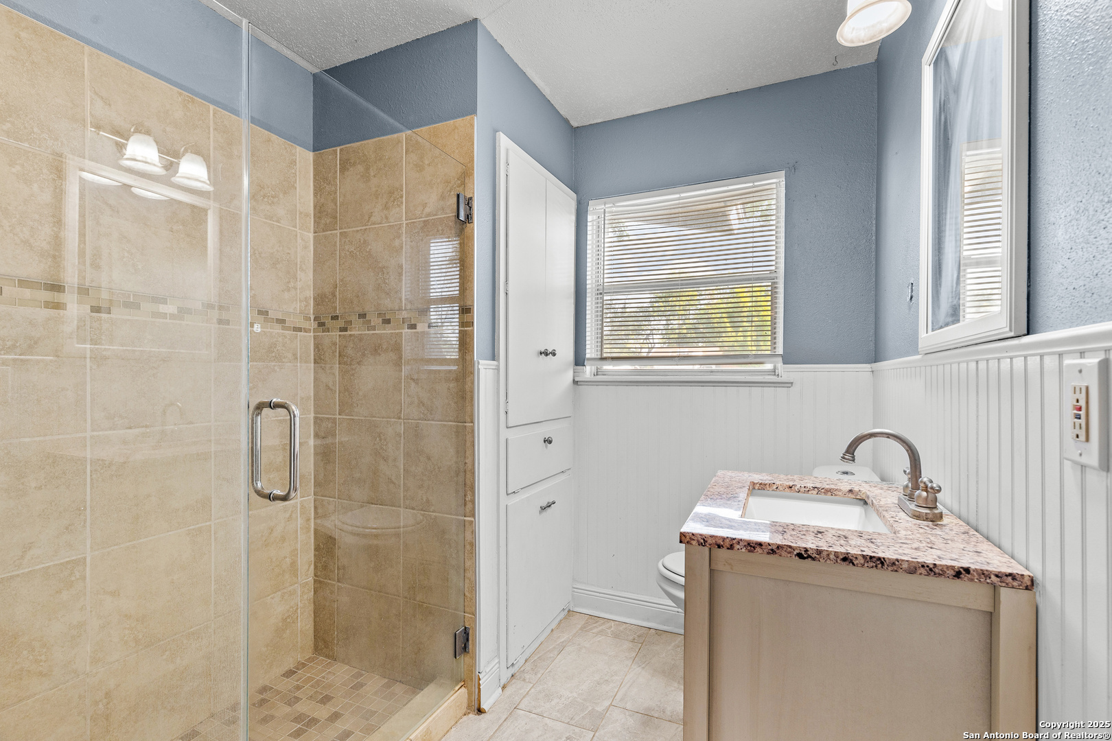 Beautifully updated 2 bedroom 2 bath traditional home is nestled in East Terrell Hills. Island kitchen, solid counter tops; Spacious Primary Bath; Covered patio in very private back yard. Quick access to I-35 and Loop 410 allows for easy and short commutes to BAMC, Ft Sam Houston, Alamo Heights, The Quarry, NE Baptist and a plethora of diverse local restaurants and eateries. With NEISD schools in walking distance.