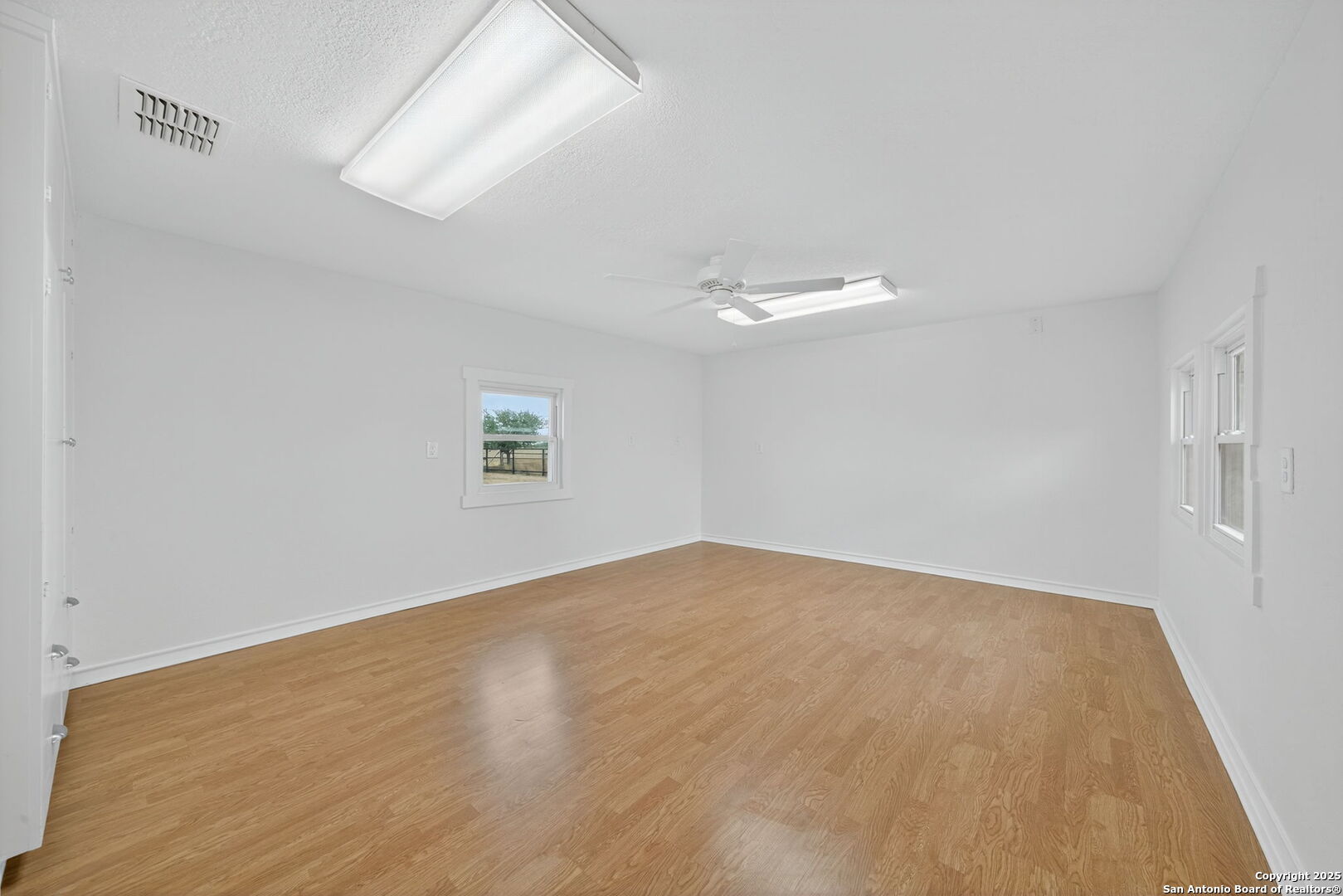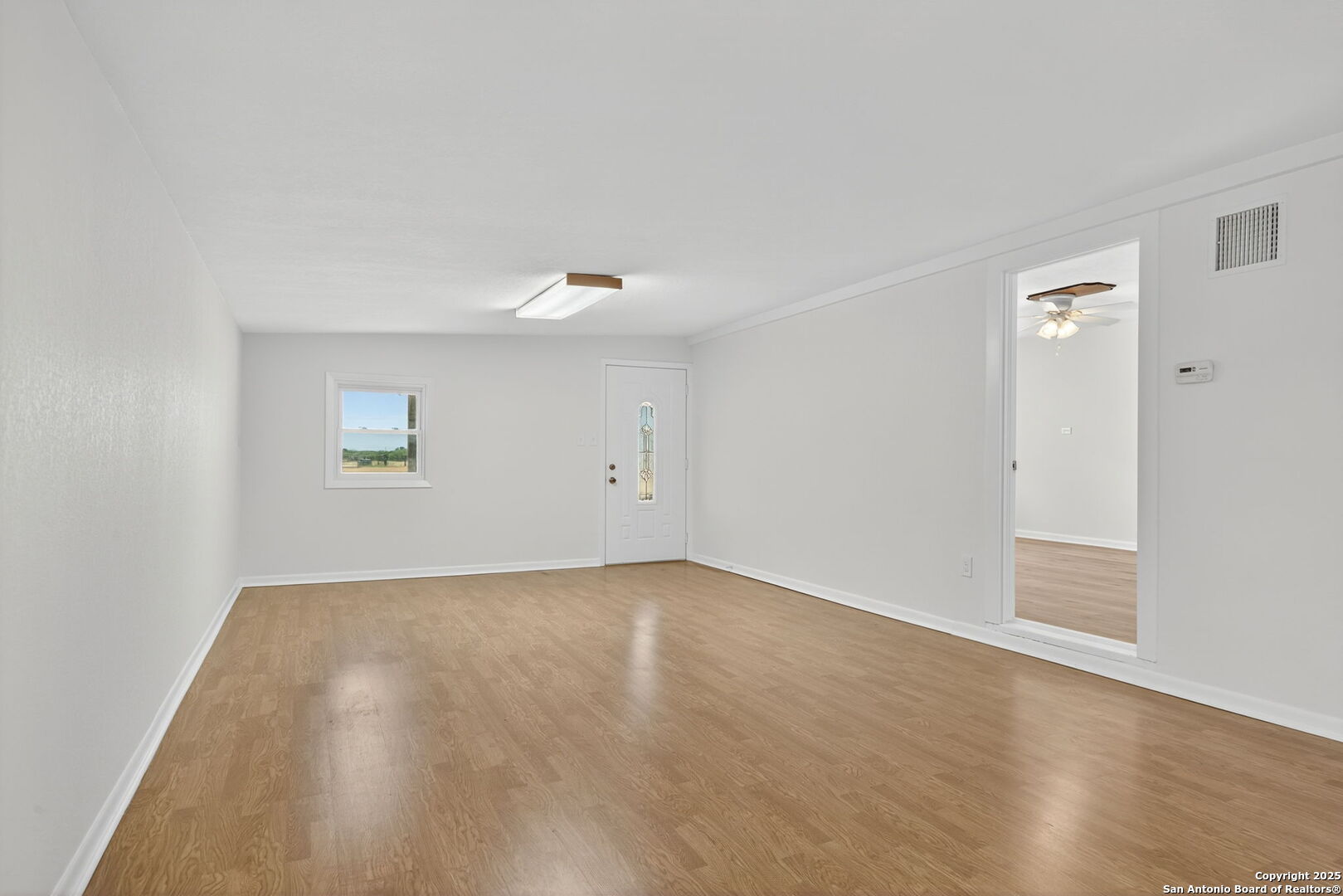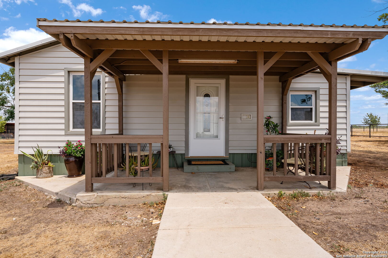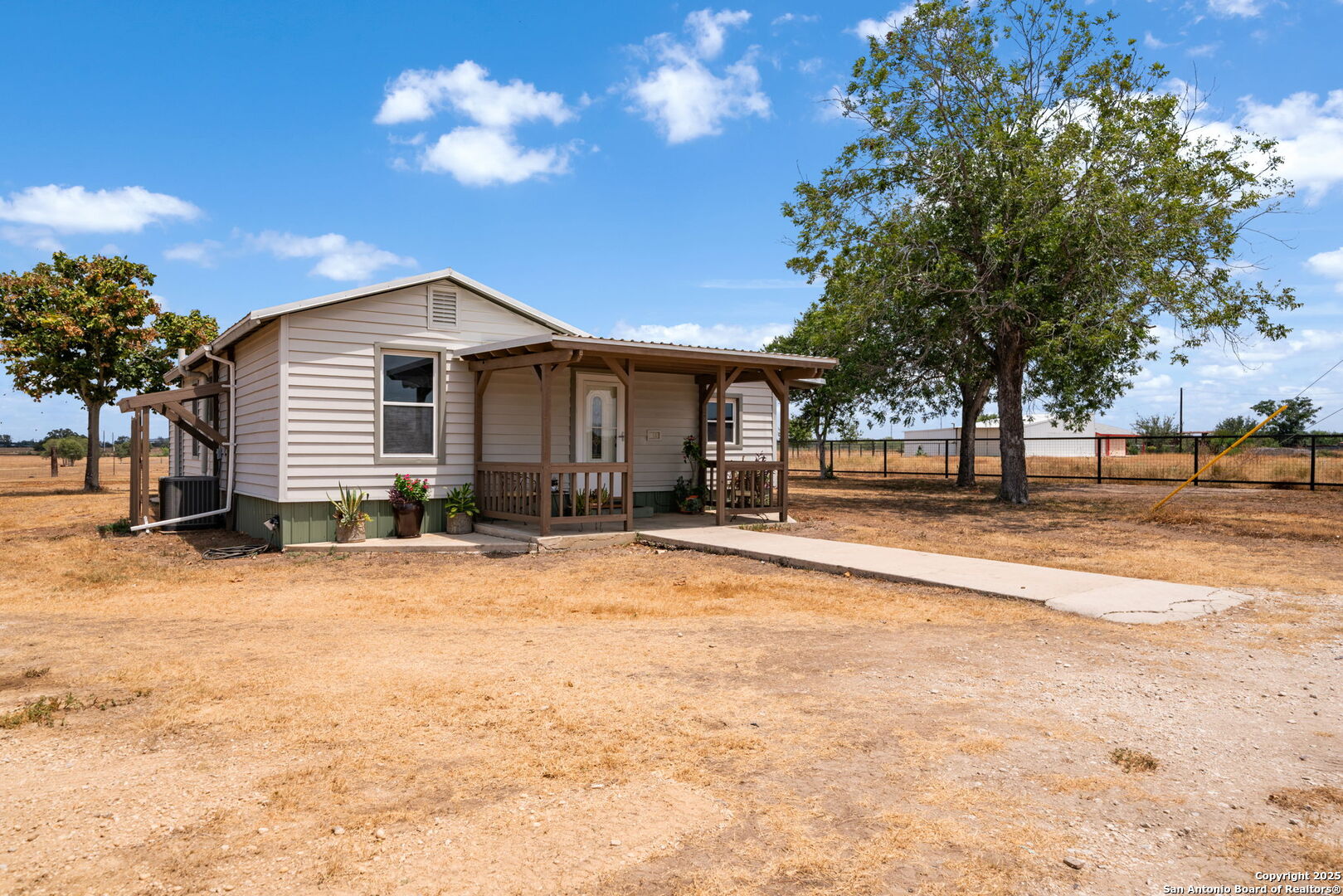 Nestled on 2 picturesque acres located within the city limits of SA and East Central ISD, this charming farmhouse offers a perfect blend of rustic charm and modern updates. With a spacious 1,592 square feet of living space, this home boasts 3 bedrooms and 1 well-appointed bathroom. Step inside to discover a welcoming and expansive living room that seamlessly flows into the open kitchen. The home has been recently updated with fresh exterior and interior paint, new flooring, plumbing and a revamped bathroom and laundry room. Additionally, the house has been leveled. The exterior of the property is equally impressive, featuring a 25x25 carport with electricity. The property is fully fenced on the perimeter, while the covered patio provides a delightful spot to relax and enjoy the serene surroundings. There's also ample space for additional dwellings, making it perfect for those looking to expand or create a family compound. The house is equipped with a septic system, a SAWS water meter, and CPS energy. Although the property includes a shallow water well, it is not currently functioning. There are light restrictions, but they offer flexibility, allowing you to bring livestock, work from home, or even build a duplex at the front of the property. Whether you're seeking a peaceful retreat, a place to work and live, or a versatile property for adding on, this charming farmhouse is the ideal choice.