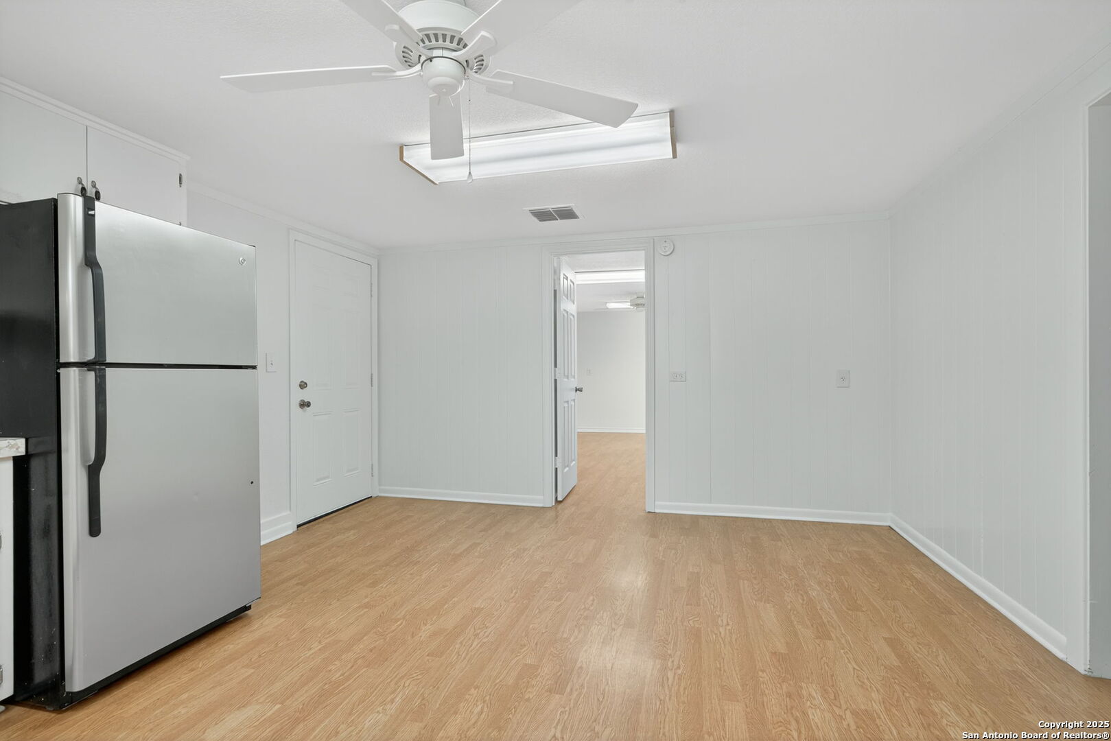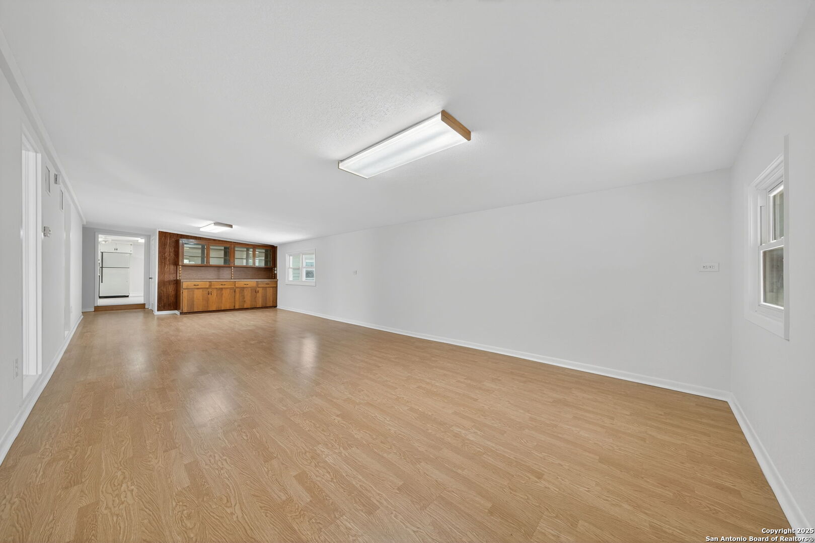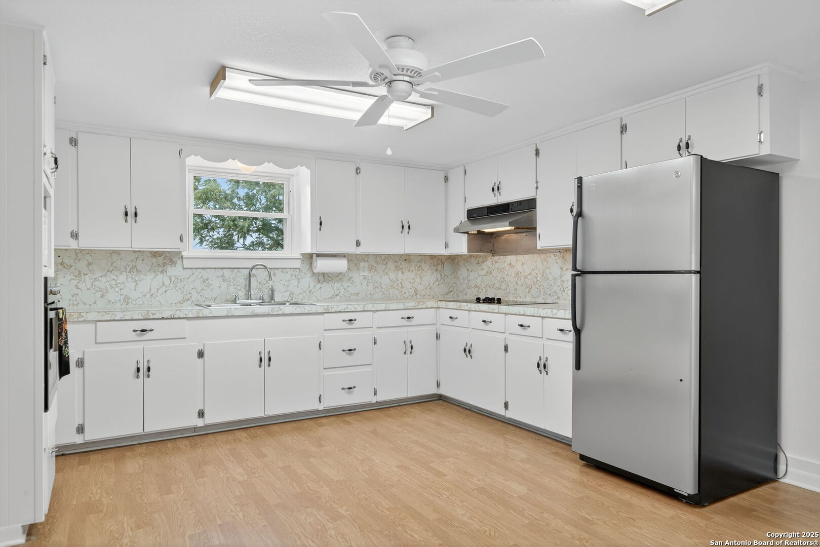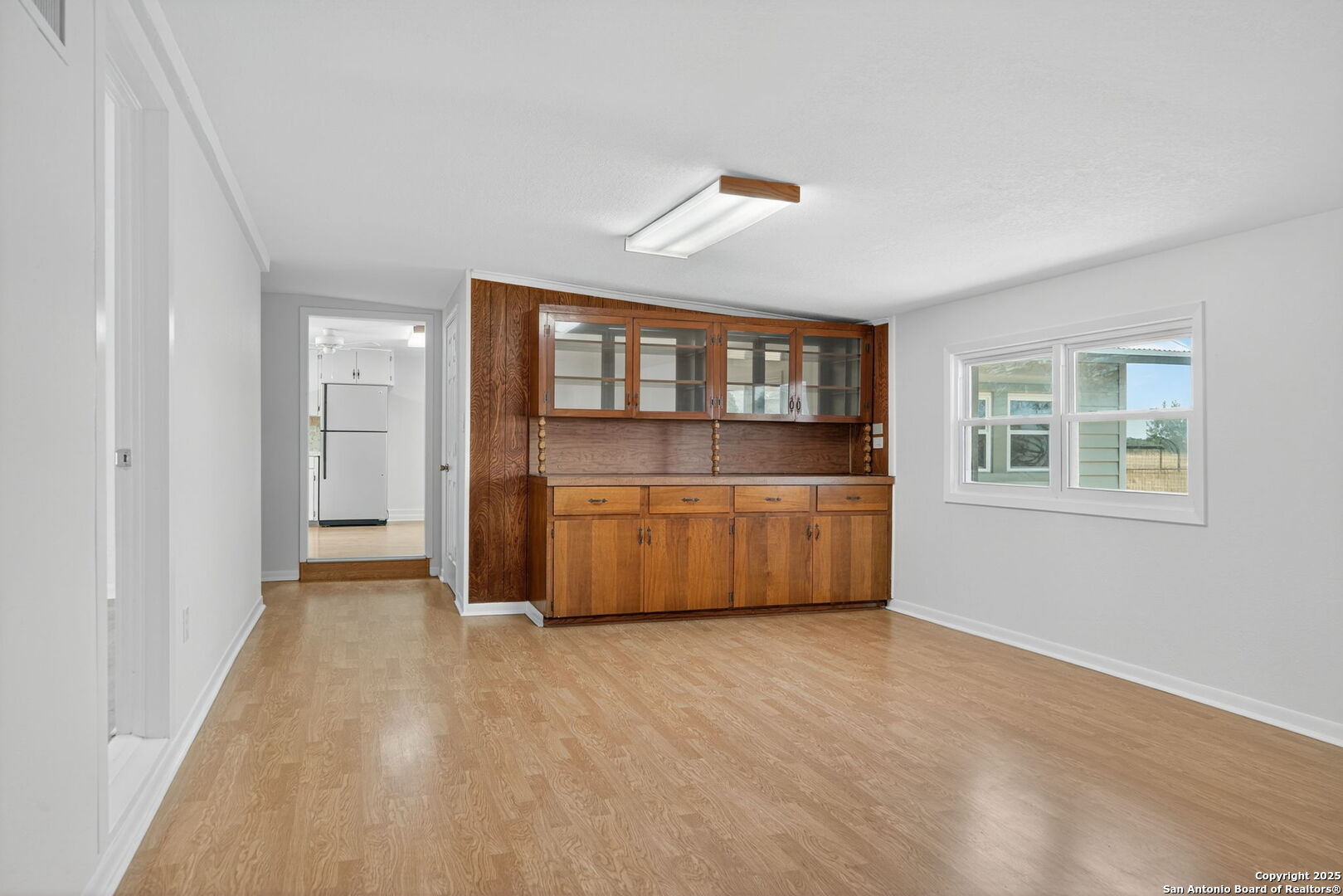 Nestled on 2 picturesque acres located within the city limits of SA and East Central ISD, this charming farmhouse offers a perfect blend of rustic charm and modern updates. With a spacious 1,592 square feet of living space, this home boasts 3 bedrooms and 1 well-appointed bathroom. Step inside to discover a welcoming and expansive living room that seamlessly flows into the open kitchen. The home has been recently updated with fresh exterior and interior paint, new flooring, plumbing and a revamped bathroom and laundry room. Additionally, the house has been leveled. The exterior of the property is equally impressive, featuring a 25x25 carport with electricity. The property is fully fenced on the perimeter, while the covered patio provides a delightful spot to relax and enjoy the serene surroundings. There's also ample space for additional dwellings, making it perfect for those looking to expand or create a family compound. The house is equipped with a septic system, a SAWS water meter, and CPS energy. Although the property includes a shallow water well, it is not currently functioning. There are light restrictions, but they offer flexibility, allowing you to bring livestock, work from home, or even build a duplex at the front of the property. Whether you're seeking a peaceful retreat, a place to work and live, or a versatile property for adding on, this charming farmhouse is the ideal choice.