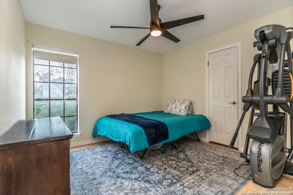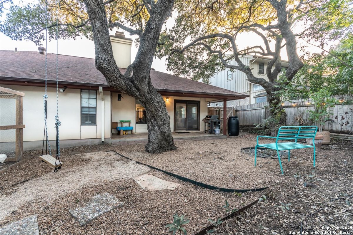 Looking for that perfect one-story home located in North San Antonio? YOU FOUND IT! Welcome to The Woods of Shavano. This beautiful 4-bedroom, 2 bath home features wood floors throughout, 2-sided fireplace, covered patio, zero-scaped yard, large trees and much, much more. You will not only enjoy the convenience to USAA, Valero, UTSA, the Rim, La Cantera and much more. In addition you have easy access to major freeways. Don't miss this opportunity to live in the Woods of Shavano. Welcome!