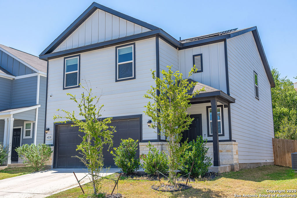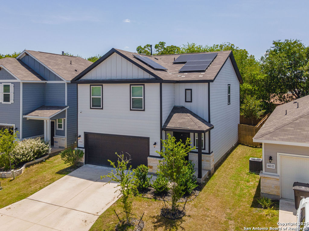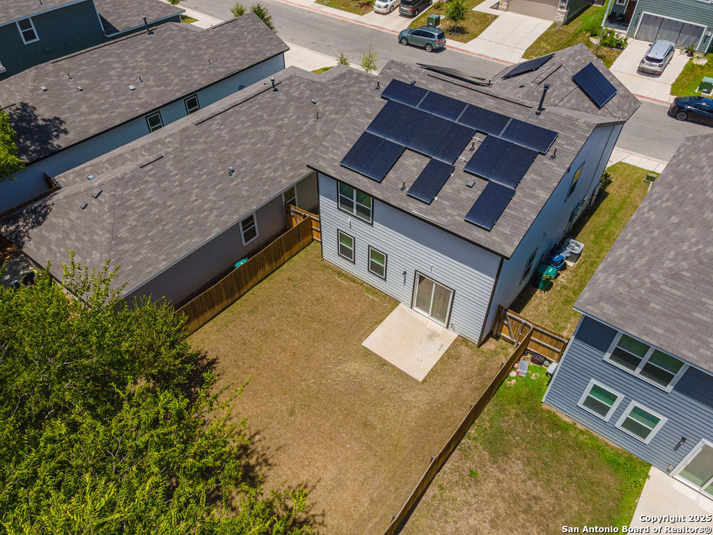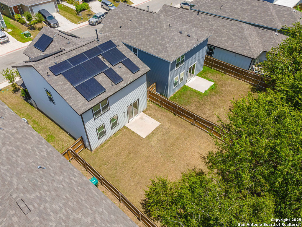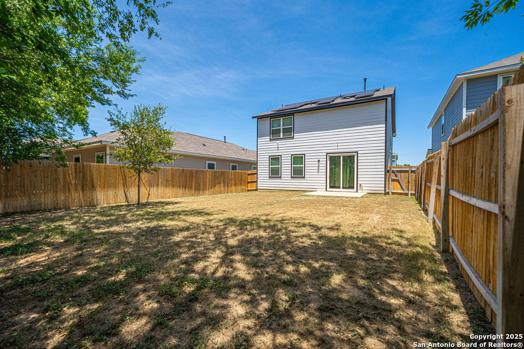 Live smart and save big in this energy-efficient 3-bedroom, 2.5-bath home located in the sought-after Covington Oaks neighborhood on San Antonio's Southeast side. This spacious two-story layout features over 1,900 sq ft of living space with an open floor plan, large upstairs game room, modern island kitchen with walk-in pantry, and upstairs laundry room. Enjoy a full suite of premium features, including a refrigerator, reverse osmosis system, water softener, in-ground sprinkler system, and SOLAR PANELS - helping you cut utility costs while staying eco-friendly. The primary suite boasts a walk-in closet and dual vanity, while all bedrooms are located upstairs for added privacy. Nestled near I-410 and just minutes from downtown, Brooks City Base, shopping, dining, and schools, this home blends suburban comfort with urban convenience. Whether you're relaxing inside or enjoying the energy savings from your solar-equipped setup, this home checks every box for comfort, style, and value.