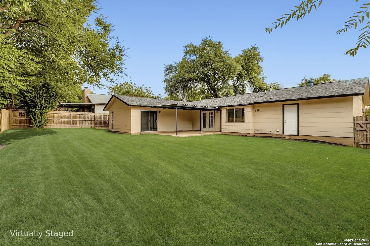 Step inside to find a nicely renovated bright, spacious, 4 bed/2 bath single story home with an open layout, lots of natural light, and easy to maintain tile flooring. The home features: A brand-new 30-year architectural roof plus a new metal roof over the spacious covered patio. Fresh interior & exterior paint in modern, neutral tones. An updated kitchen w/ elegant quartz countertops, new sink and faucets, & all-new stainless steel appliances (stove, refrigerator, dishwasher, and hood vent). Bathroom updates feature new vanities w/marble countertops. Enjoy outdoor living with a large backyard and covered patio, perfect for entertaining or relaxing, plus a spacious front yard & oversized garage offering ample storage. Quietly tucked away in an established neighborhood, this home offers convenient access to Loop 1604, I-410, I-35 and Wurzbach Pkwy. This thoughtfully upgraded home delivers the ideal balance of quality, comfort, and value!