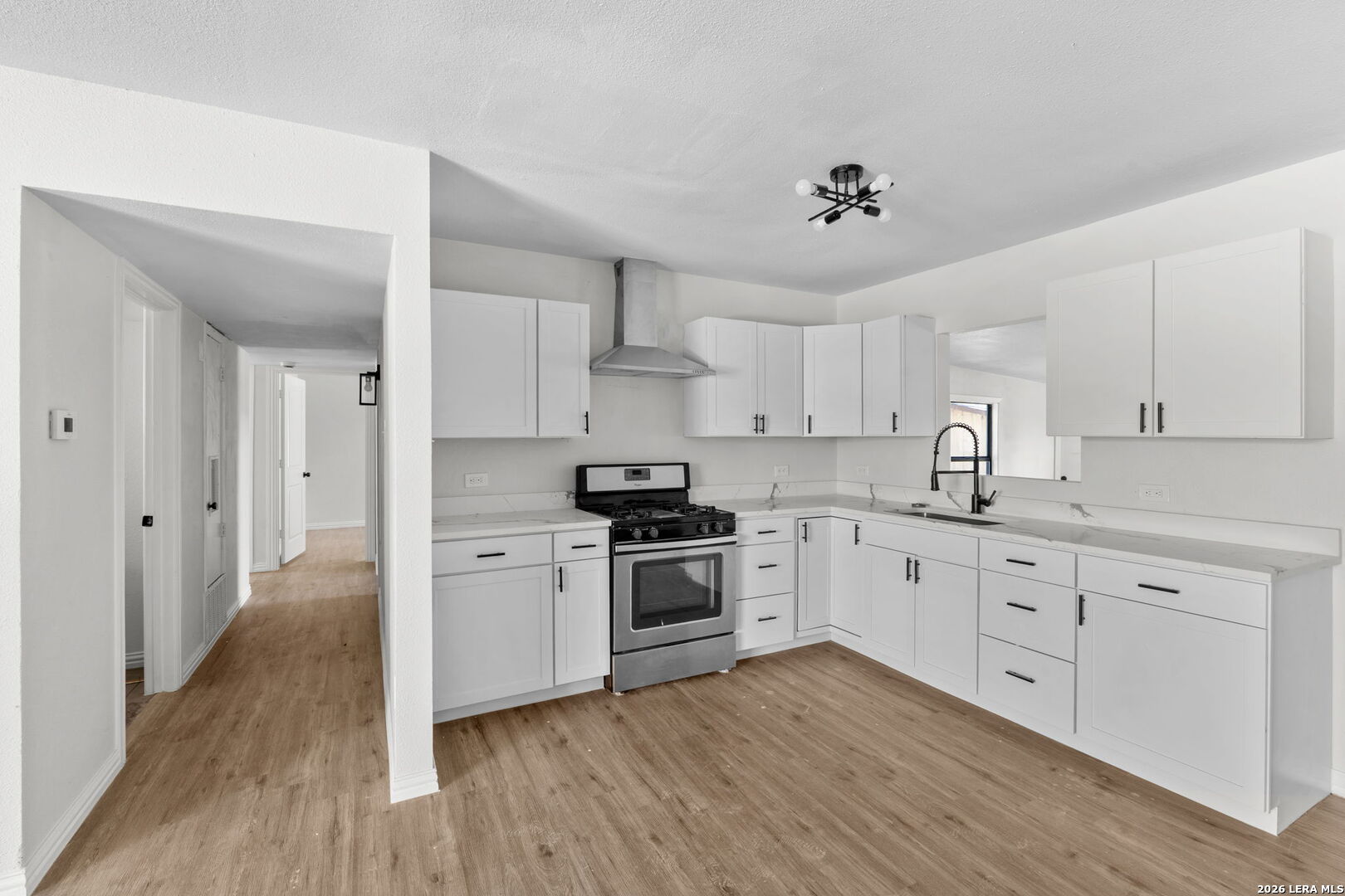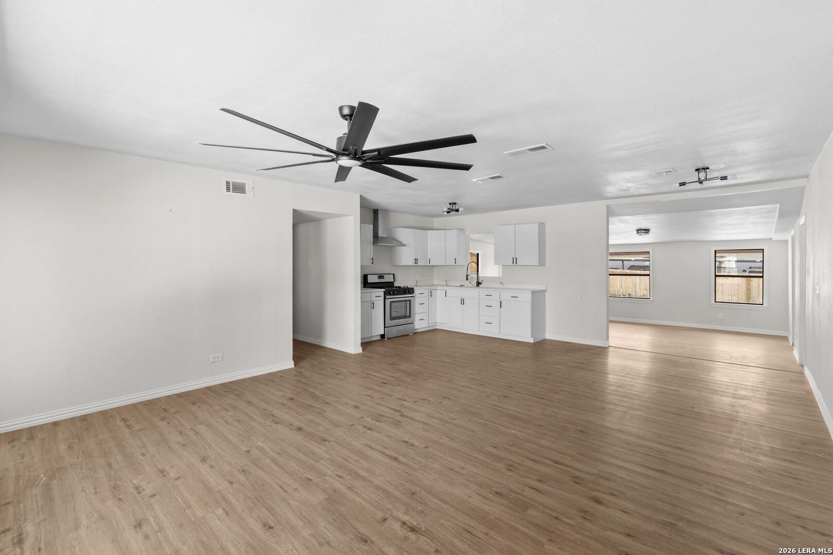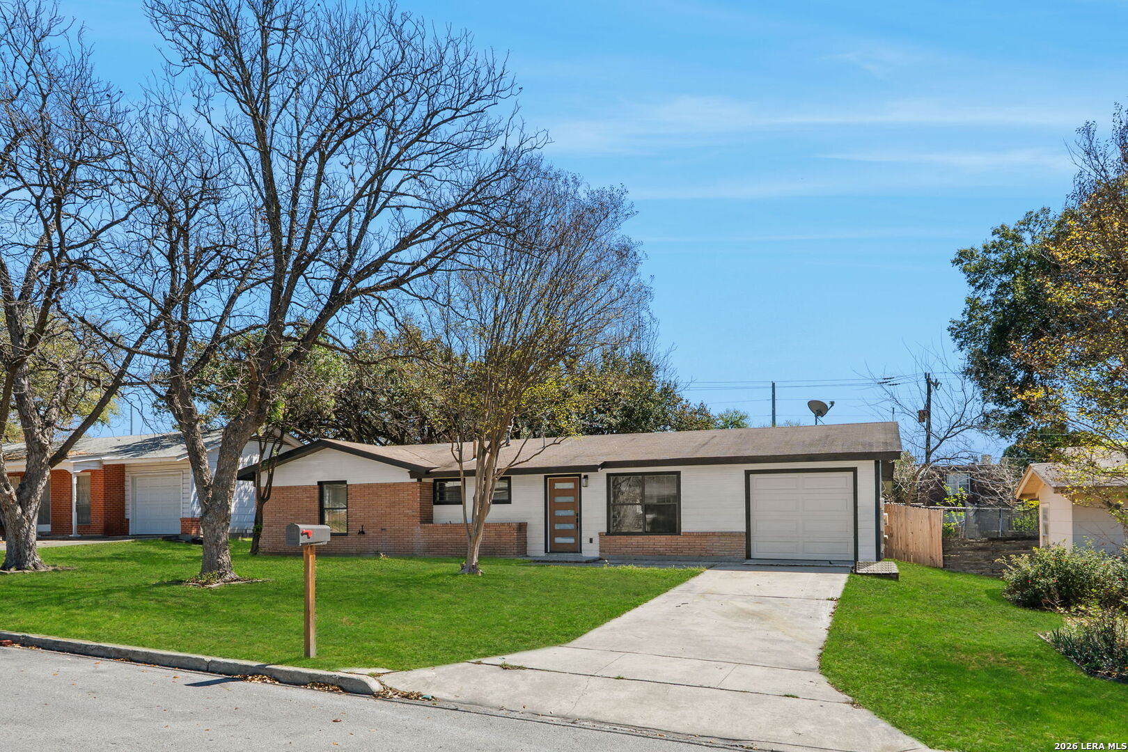 Beautifully remodeled single story home in San Antonio offering a modern open layout and thoughtful updates throughout with NO HOA. The spacious design features a large main living area that can function as a living room, game room, or living dining combo, providing flexibility to fit a variety of lifestyles. The updated kitchen showcases quartz countertops, stainless steel appliances, and modern finishes, all complemented by newer paint, flooring, and light fixtures that create a clean and cohesive feel. An additional versatile room with direct access to the garage offers the perfect space for a mud room, hobby room, or flex space. All bathrooms have been completely remodeled with updated tile showers, newer toilets, and stylish circular mirrors, adding a fresh and contemporary touch throughout the home. The property also includes a one car attached garage for added convenience. Step outside to a private backyard with a privacy fence and a detached shed that can easily serve as a workshop or extra storage space, expanding the functionality of the outdoor area. Ideally located with a short commute to Lackland Air Force Base, Randolph Air Force Base, Fort Sam Houston, and San Antonio International Airport, and offering easy access to Loop 410, this home combines modern updates, versatility, and convenience in San Antonio.