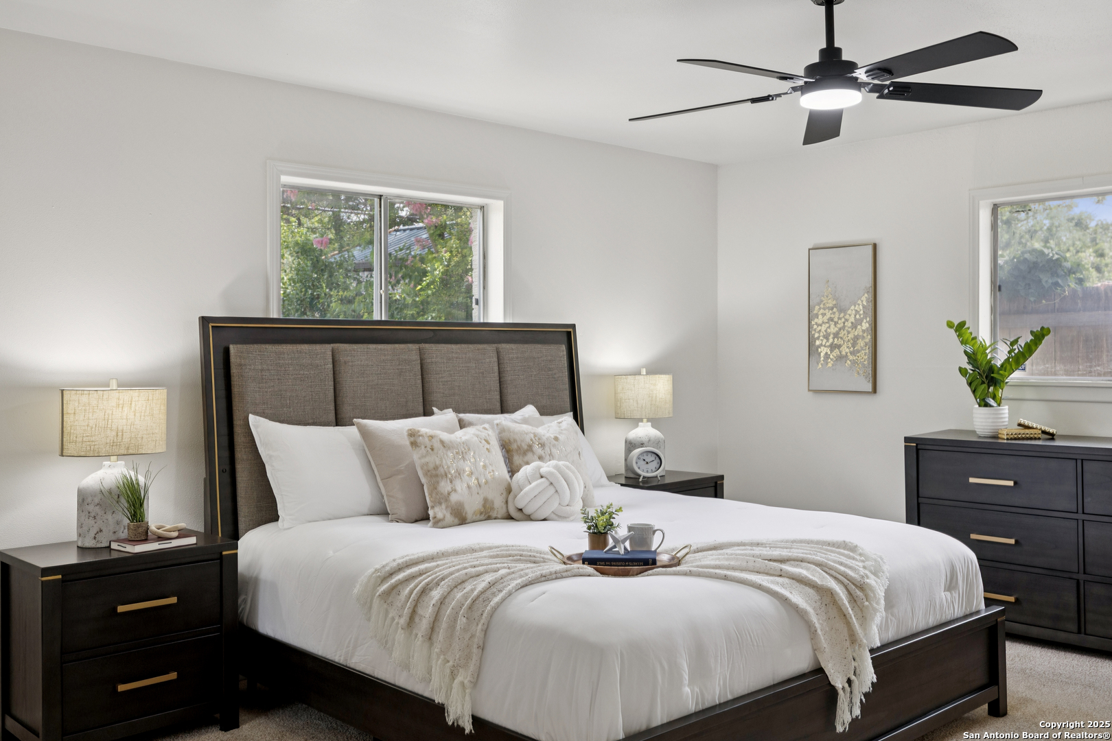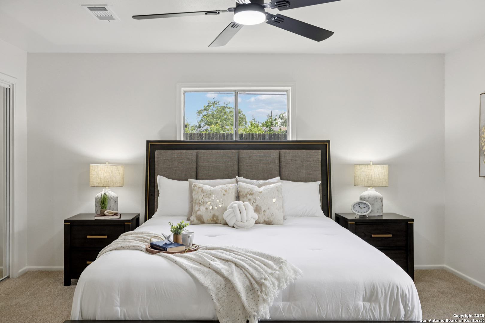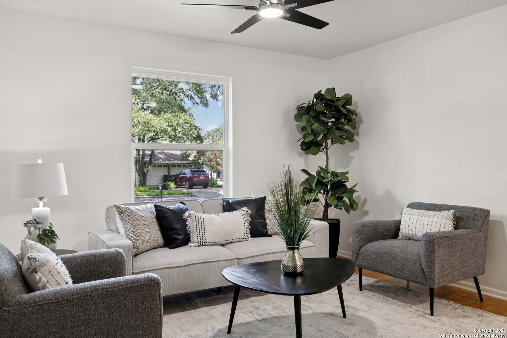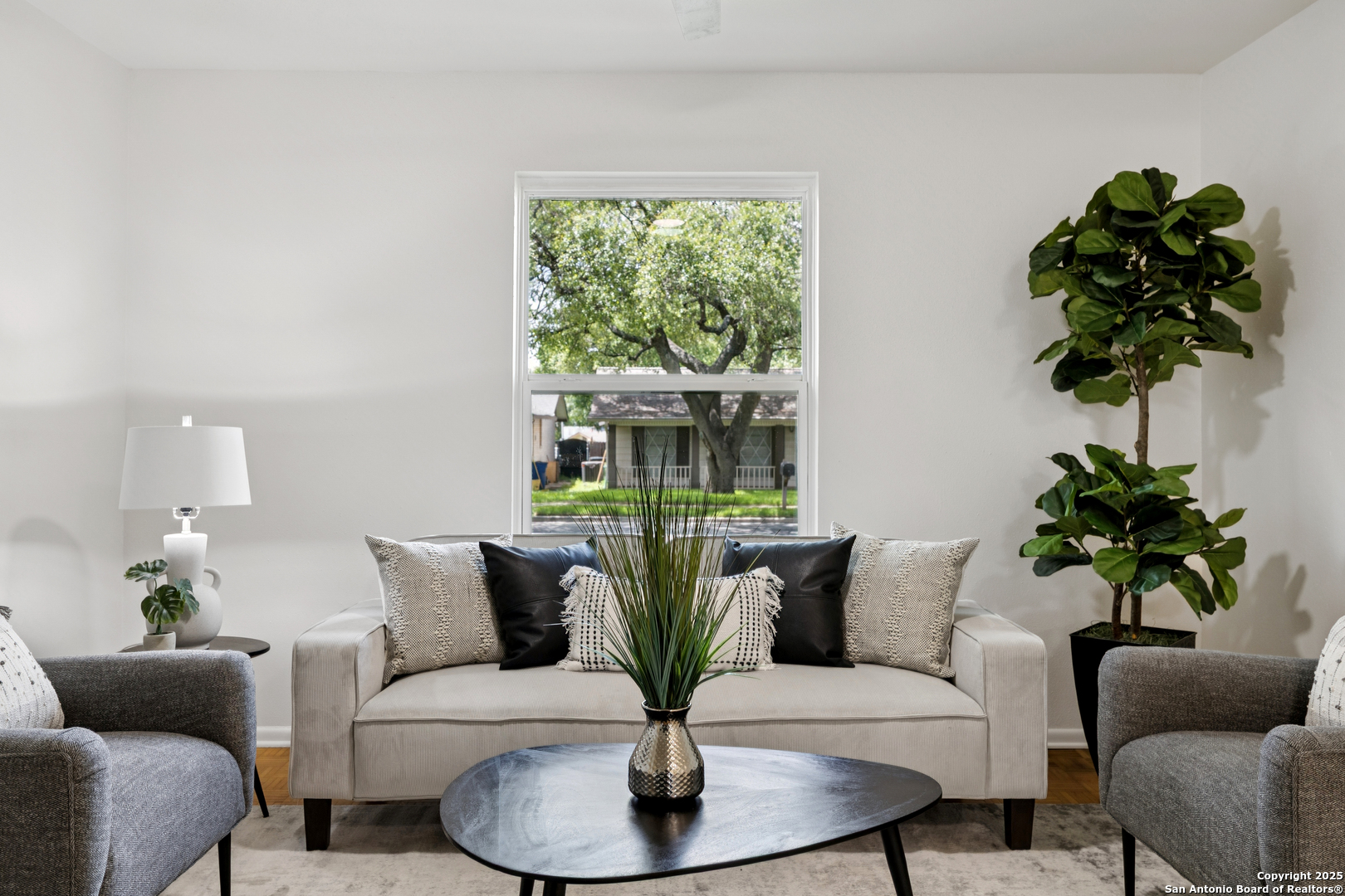 Welcome to 4427 Monaco-an inviting 4-bedroom, 2-bath home nestled under the shade of mature trees in a quiet, established neighborhood. With 1,796 square feet of well-designed living space and a spacious 2-car garage, this home has been beautifully refreshed with new carpet in the bedrooms and fresh paint throughout. The layout offers multiple dining and living areas, perfect for gathering or relaxing, while the kitchen features quartz countertops, stainless steel appliances, and a stylish tile backsplash. The generously sized primary bedroom is filled with natural light and provides ample space for restful retreat. Both bathrooms are updated with modern vanities and lighting. Enjoy the view of the lush backyard from the bright breakfast area or entertain guests in the separate dining room. Located just minutes from Ft. Sam Houston, I-35, and all the conveniences of Northeast San Antonio, this move-in-ready home is the perfect blend of comfort, style, and location.