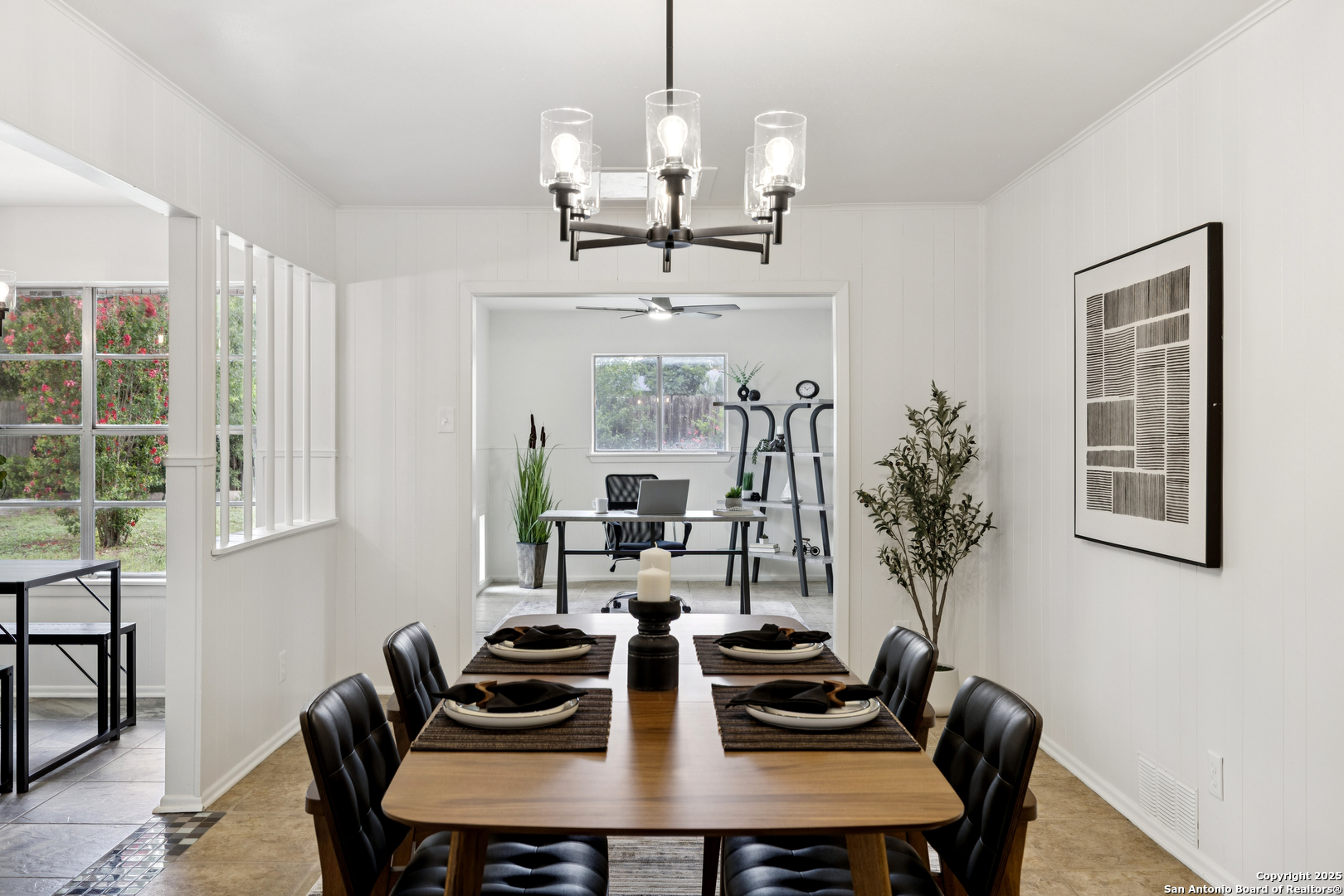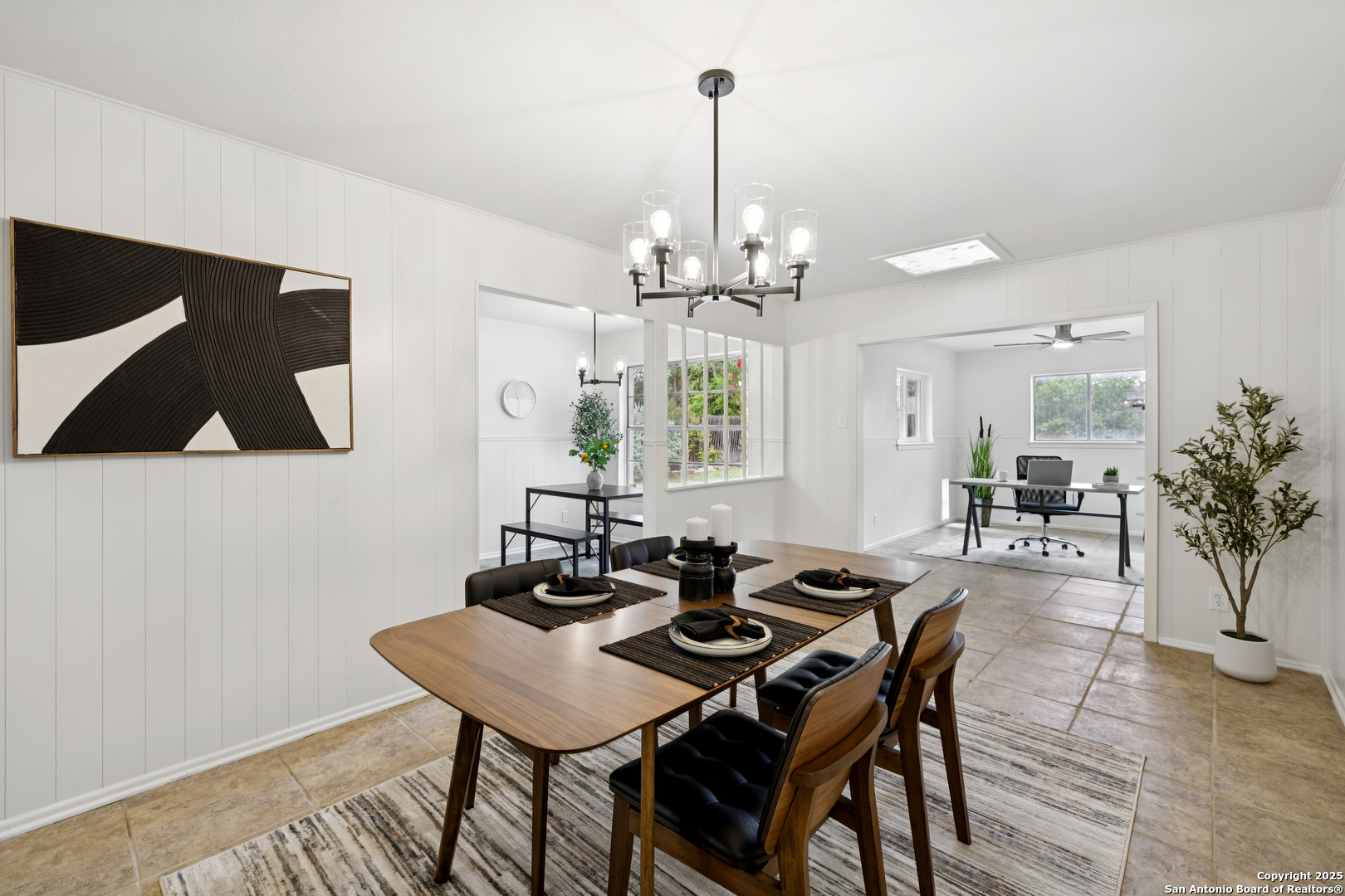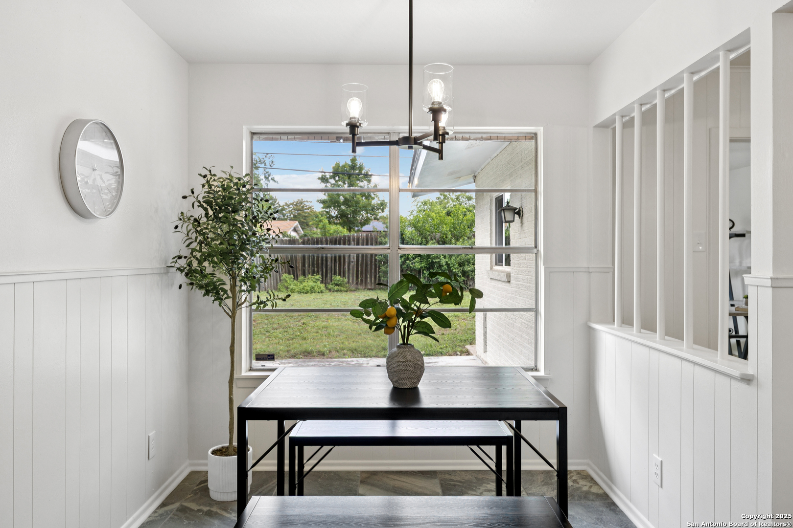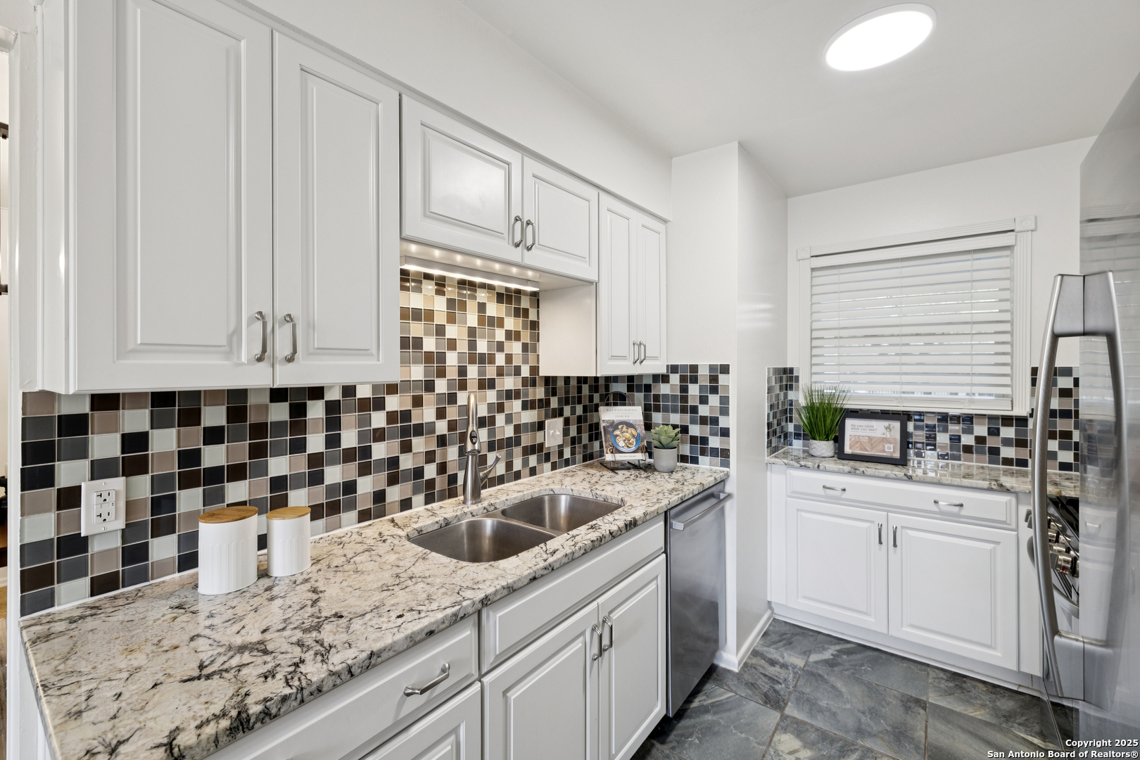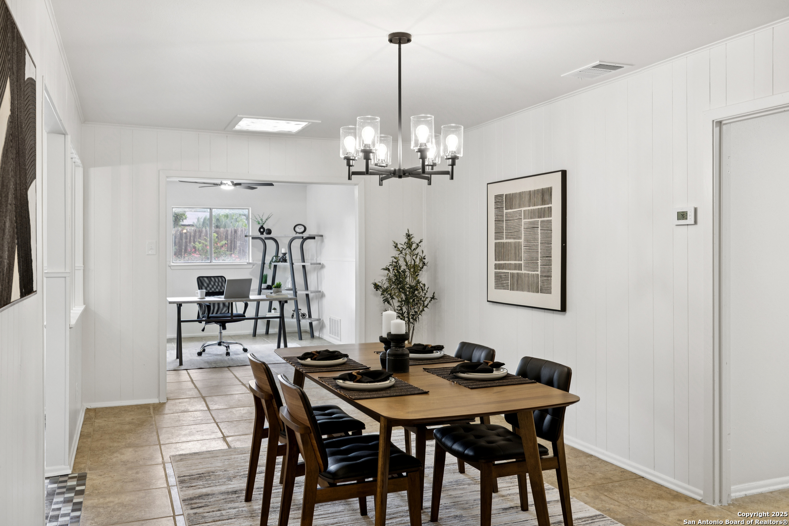Welcome to 4427 Monaco-an inviting 4-bedroom, 2-bath home nestled under the shade of mature trees in a quiet, established neighborhood. With 1,796 square feet of well-designed living space and a spacious 2-car garage, this home has been beautifully refreshed with new carpet in the bedrooms and fresh paint throughout. The layout offers multiple dining and living areas, perfect for gathering or relaxing, while the kitchen features quartz countertops, stainless steel appliances, and a stylish tile backsplash. The generously sized primary bedroom is filled with natural light and provides ample space for restful retreat. Both bathrooms are updated with modern vanities and lighting. Enjoy the view of the lush backyard from the bright breakfast area or entertain guests in the separate dining room. Located just minutes from Ft. Sam Houston, I-35, and all the conveniences of Northeast San Antonio, this move-in-ready home is the perfect blend of comfort, style, and location.