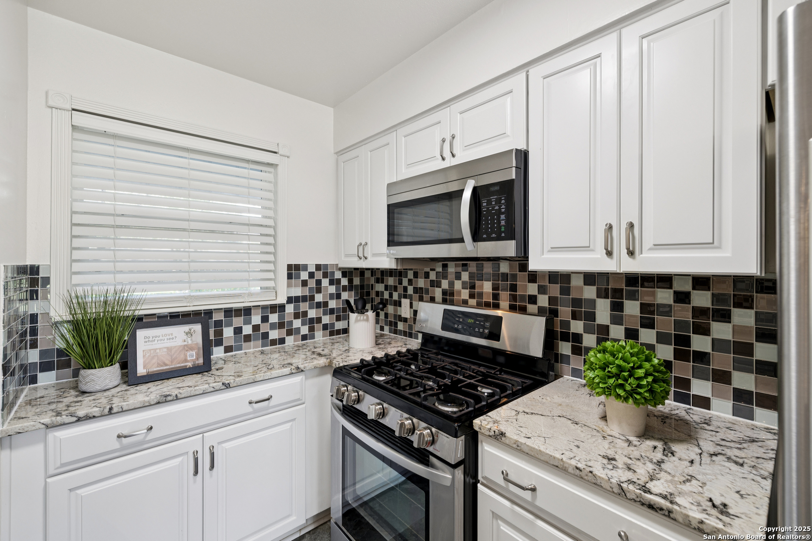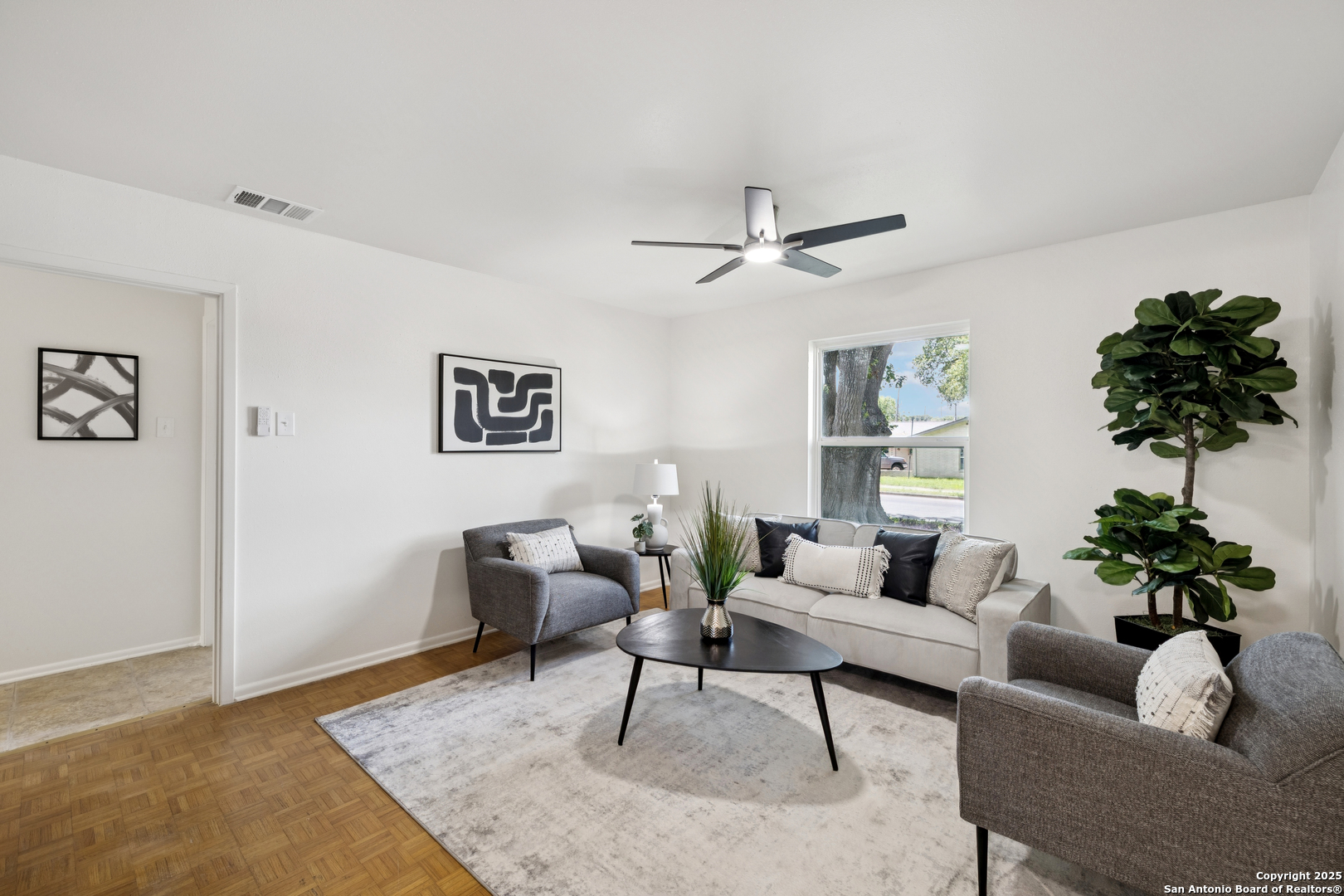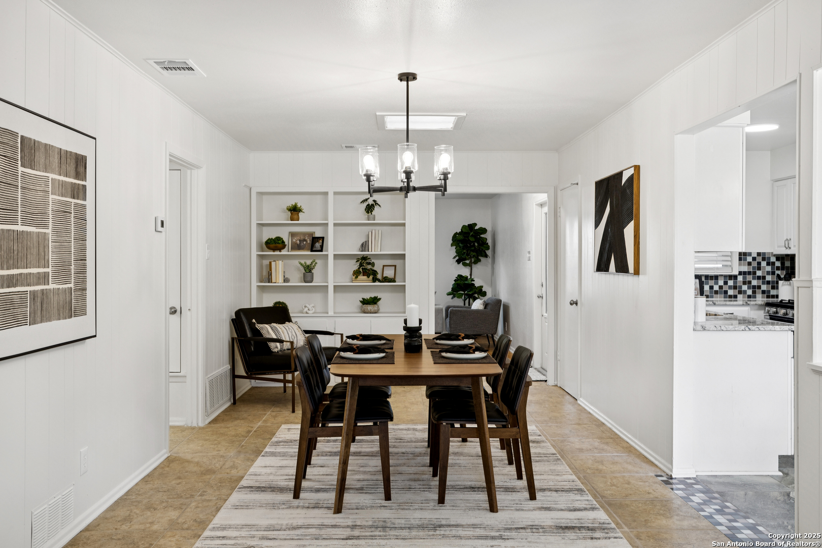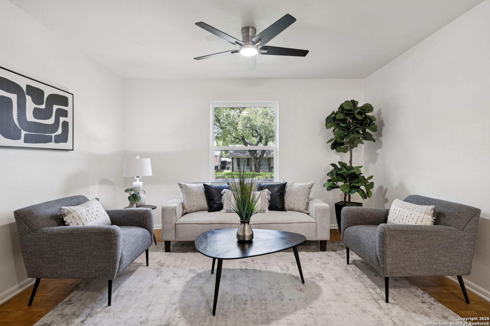 Welcome to 4427 Monaco-an inviting 4-bedroom, 2-bath home nestled under the shade of mature trees in a quiet, established neighborhood. With 1,796 square feet of well-designed living space and a spacious 2-car garage, this home has been beautifully refreshed with new carpet in the bedrooms and fresh paint throughout. The layout offers multiple dining and living areas, perfect for gathering or relaxing, while the kitchen features quartz countertops, stainless steel appliances, and a stylish tile backsplash. The generously sized primary bedroom is filled with natural light and provides ample space for restful retreat. Both bathrooms are updated with modern vanities and lighting. Enjoy the view of the lush backyard from the bright breakfast area or entertain guests in the separate dining room. Located just minutes from Ft. Sam Houston, I-35, and all the conveniences of Northeast San Antonio, this move-in-ready home is the perfect blend of comfort, style, and location.