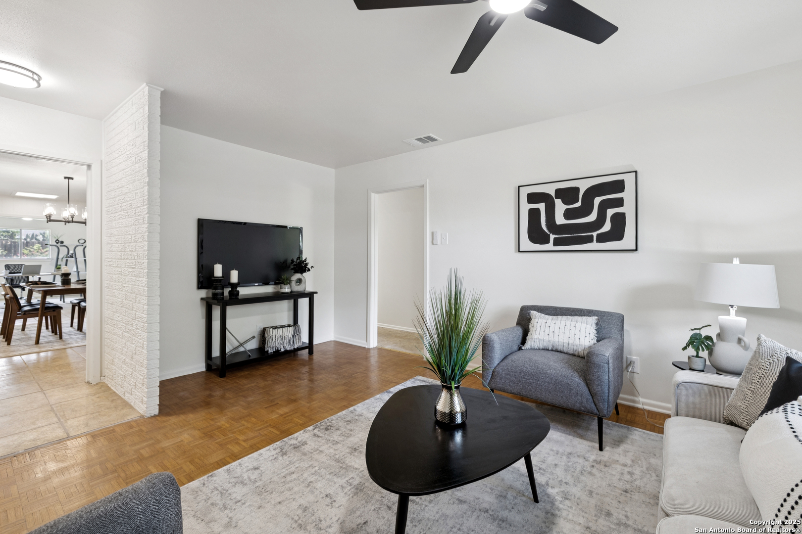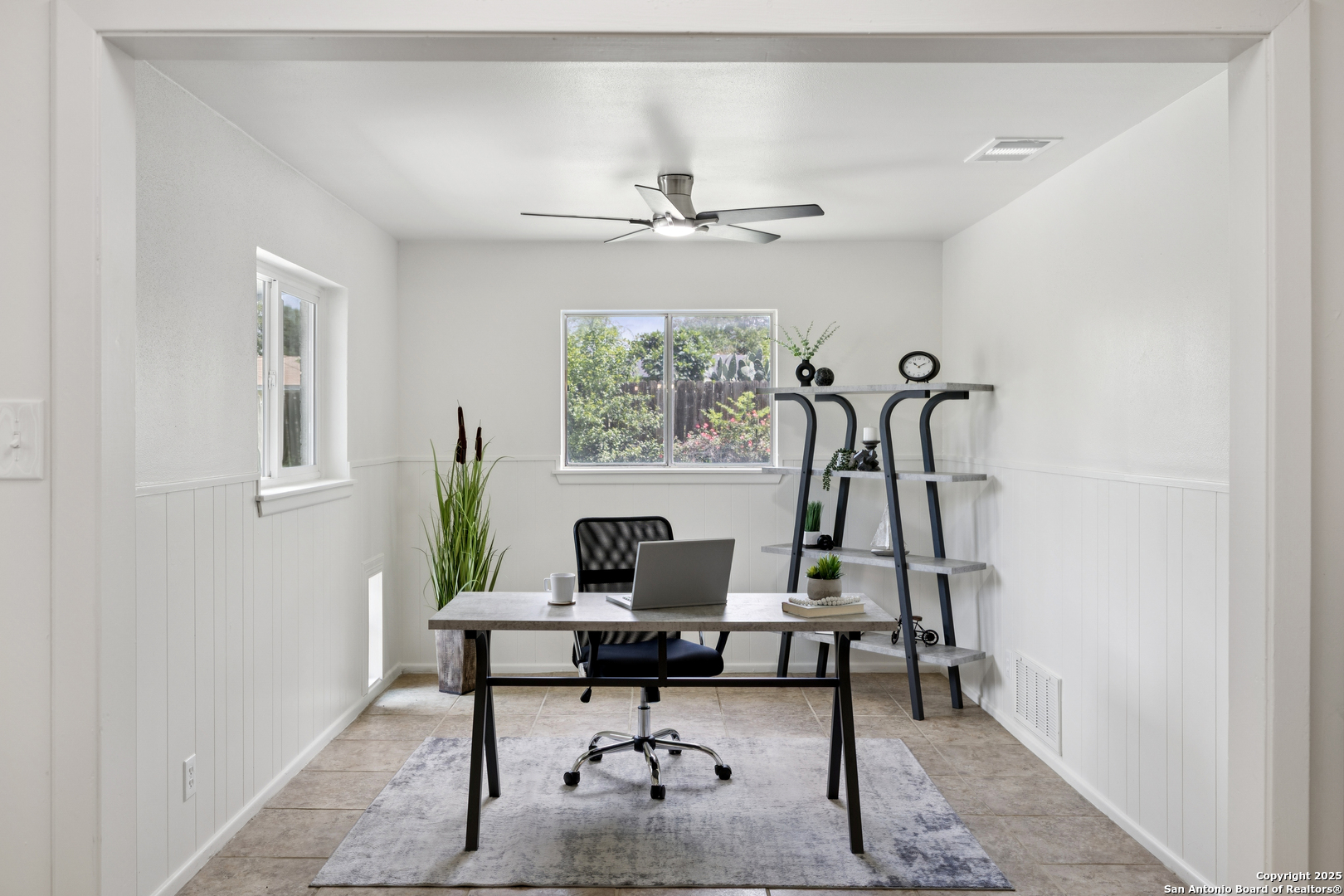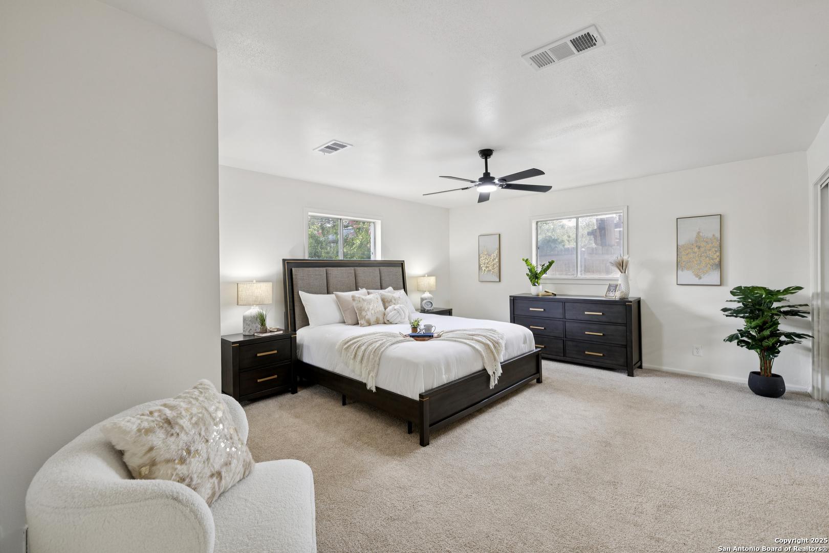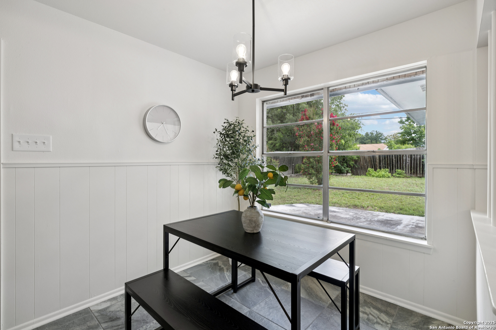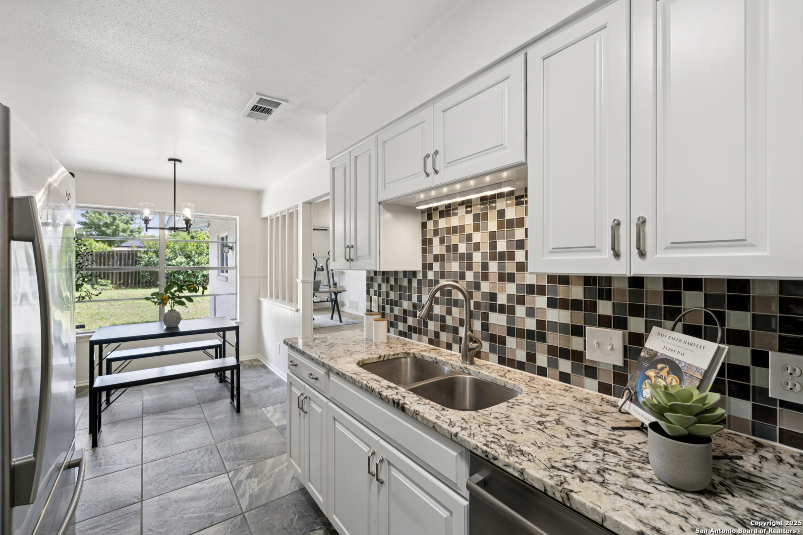Welcome to 4427 Monaco-an inviting 4-bedroom, 2-bath home nestled under the shade of mature trees in a quiet, established neighborhood. With 1,796 square feet of well-designed living space and a spacious 2-car garage, this home has been beautifully refreshed with new carpet in the bedrooms and fresh paint throughout. The layout offers multiple dining and living areas, perfect for gathering or relaxing, while the kitchen features quartz countertops, stainless steel appliances, and a stylish tile backsplash. The generously sized primary bedroom is filled with natural light and provides ample space for restful retreat. Both bathrooms are updated with modern vanities and lighting. Enjoy the view of the lush backyard from the bright breakfast area or entertain guests in the separate dining room. Located just minutes from Ft. Sam Houston, I-35, and all the conveniences of Northeast San Antonio, this move-in-ready home is the perfect blend of comfort, style, and location.