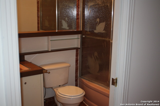 Cute home with original hard wood floors that are very nice looking. Each bedroom has built-ins. Tile bathrooms. Large trees. Great location for access to Ft Sam/IH35. Vent a hood will not be repaired in kitchen. Wall repair to be completed before tenant move-in.