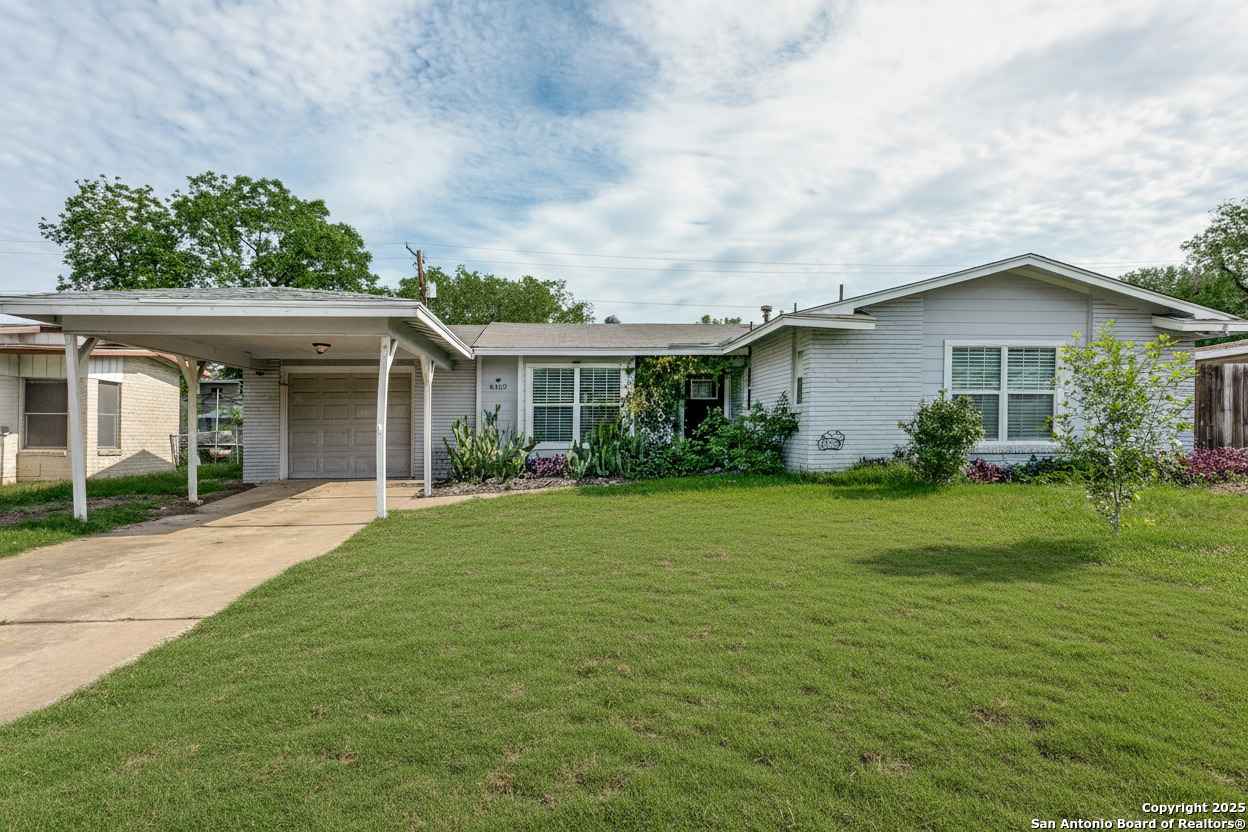 Charming single-story home in East Terrell Hills with a spacious carport, one-car garage, granite countertops, and ceramic tile throughout. Features include a functional layout, updated bathrooms, and recent exterior/HVAC improvements. Enjoy large front and backyards. Conveniently located near I-35, Loop 410, Fort Sam, BAMC, and downtown San Antonio.