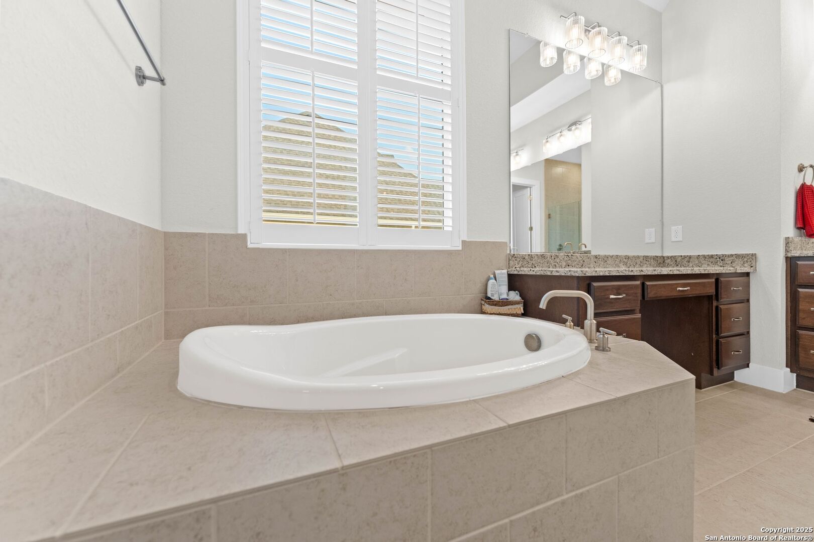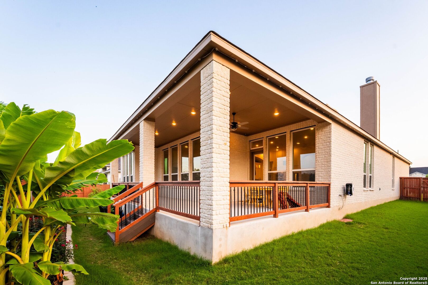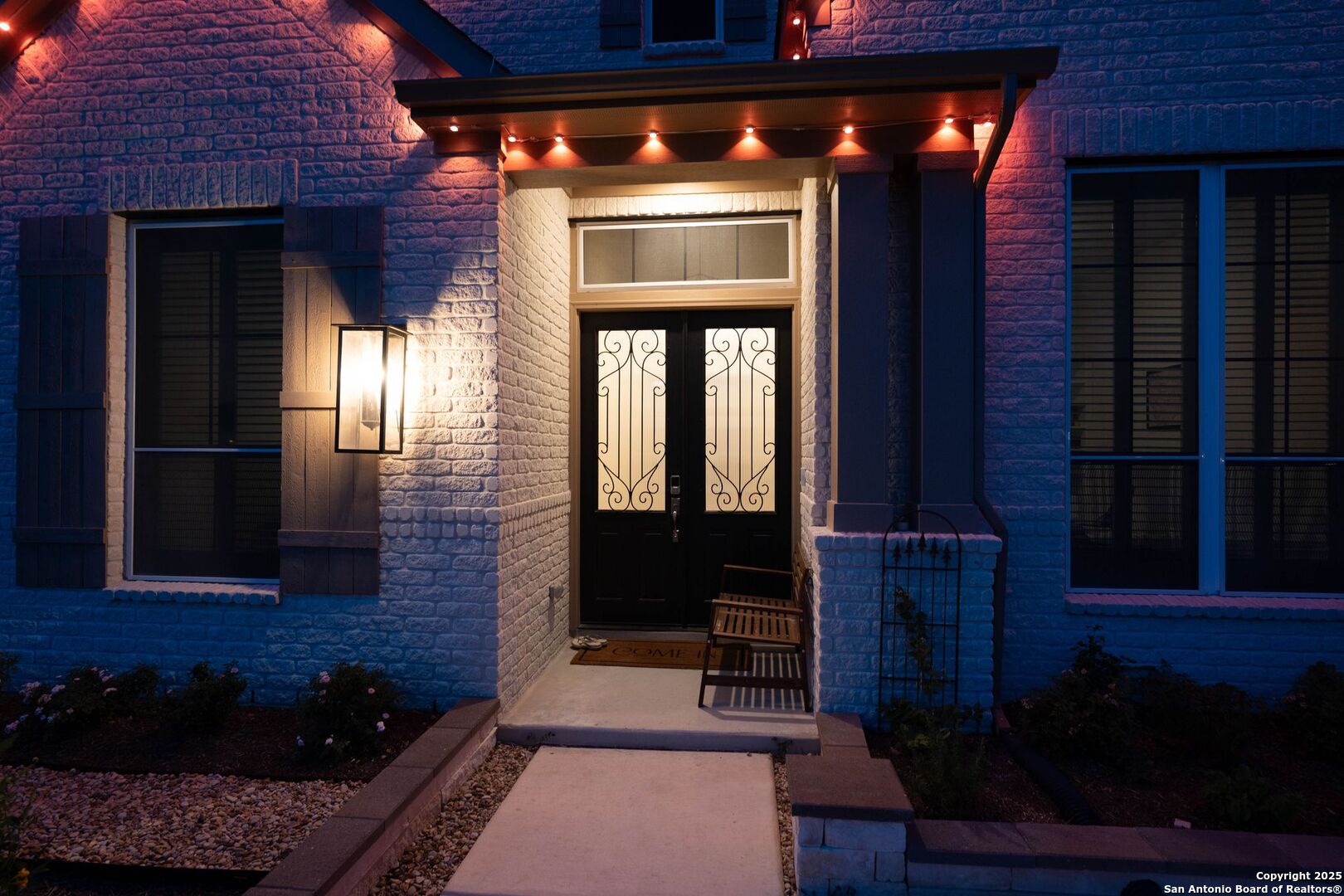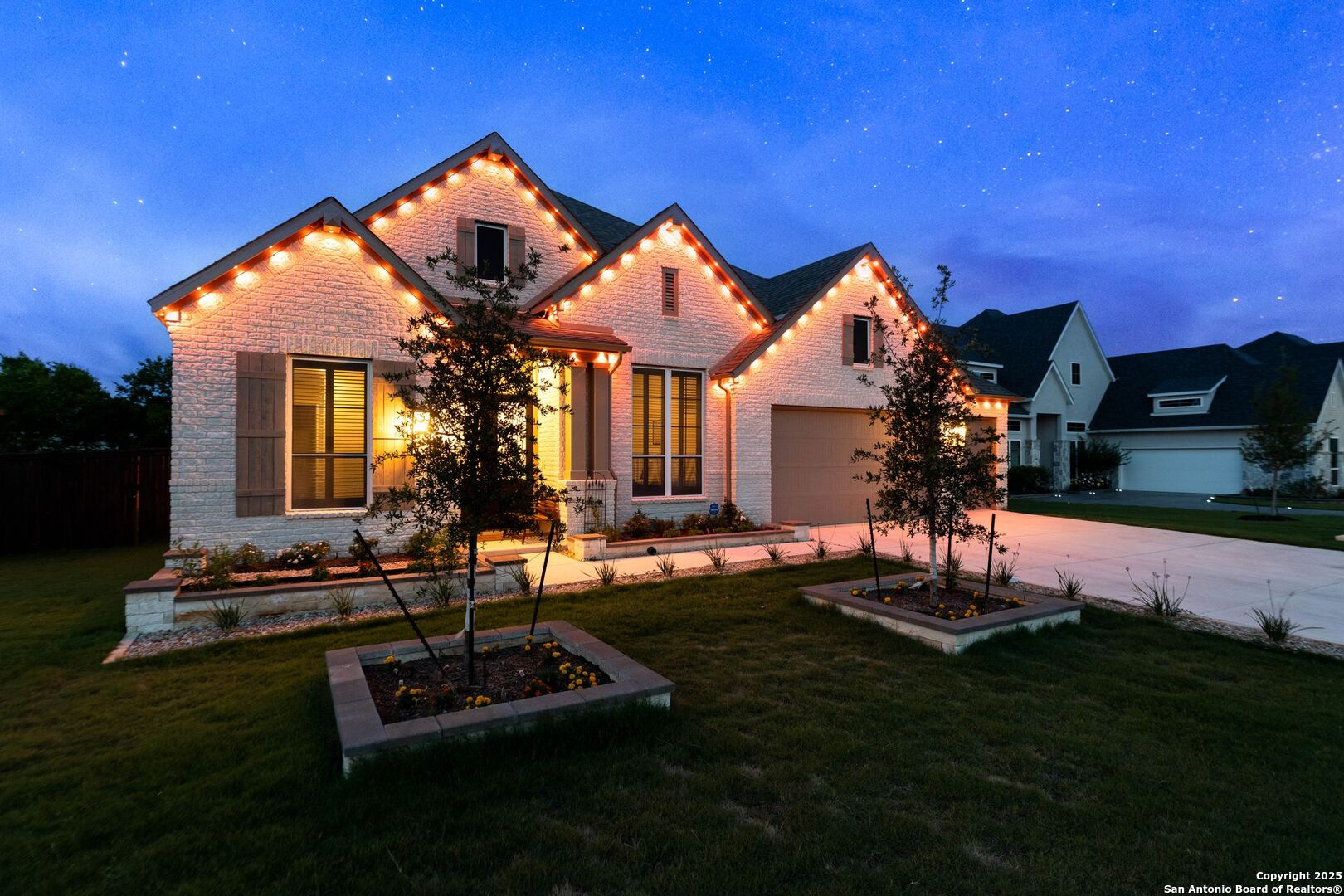 Welcome to 444 Westmont your luxury dream home thoughtfully designed! Step into the most voted 216 floorplan by Highland Homes, located in the prestigious Mesa Western subdivision. This like-new, one-story residence spans 3,220 sq ft and features 4 bedrooms, 3.5 bathrooms, media room, a study/office and a 3-car garage with extended height additional conveniences include a high-voltage smart car connection. This home is beautifully enhanced with an abundance of premium builder upgrades. From the moment you arrive, you're welcomed by a grand 8-foot double front door that opens into a spacious layout with gorgeous ceramic wood like flooring throughout the main areas, high ceilings and natural light pouring in through oversized windows. The gourmet kitchen is a dream, boasting a double XL island, high-end KitchenAid appliances, upgraded cabinetry, and a designer backsplash, all seamlessly connecting to the living and dining areas.The extended primary suite offers a luxurious retreat with a spa-like bath featuring dual vanities, a walk-in shower, a drop-in soaking tub, and a custom walk-in closet. Additional upgrades include an oversized laundry room with custom cabinetry and an upgraded walk-in secondary pantry, plantation shutters throughout, and a pre-wired media room with a 120" projector setup. The home also includes a water softener system, upgraded outdoor lighting for added ambiance and curb appeal, and an extended covered patio overlooking a spacious backyard with beautifully landscaped garden.Ideally located between San Antonio and Austin, this home offers easy access to JBSA-Randolph, a variety of shopping and dining options, and is zoned to the top rated SCUCISD school district. Don't miss this rare opportunity to own a luxury Highland Home in one of the area's most desirable communities. Welcome home!