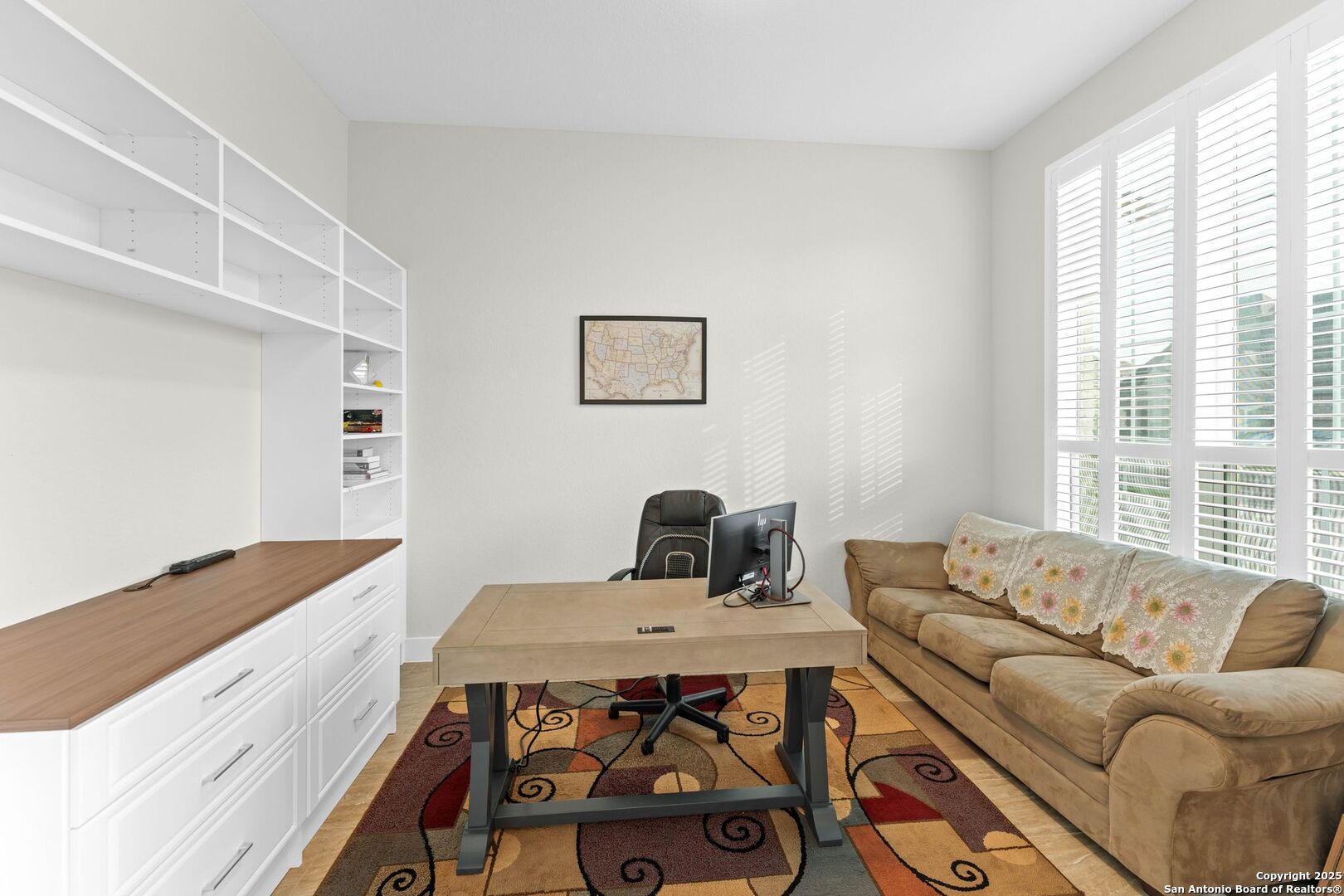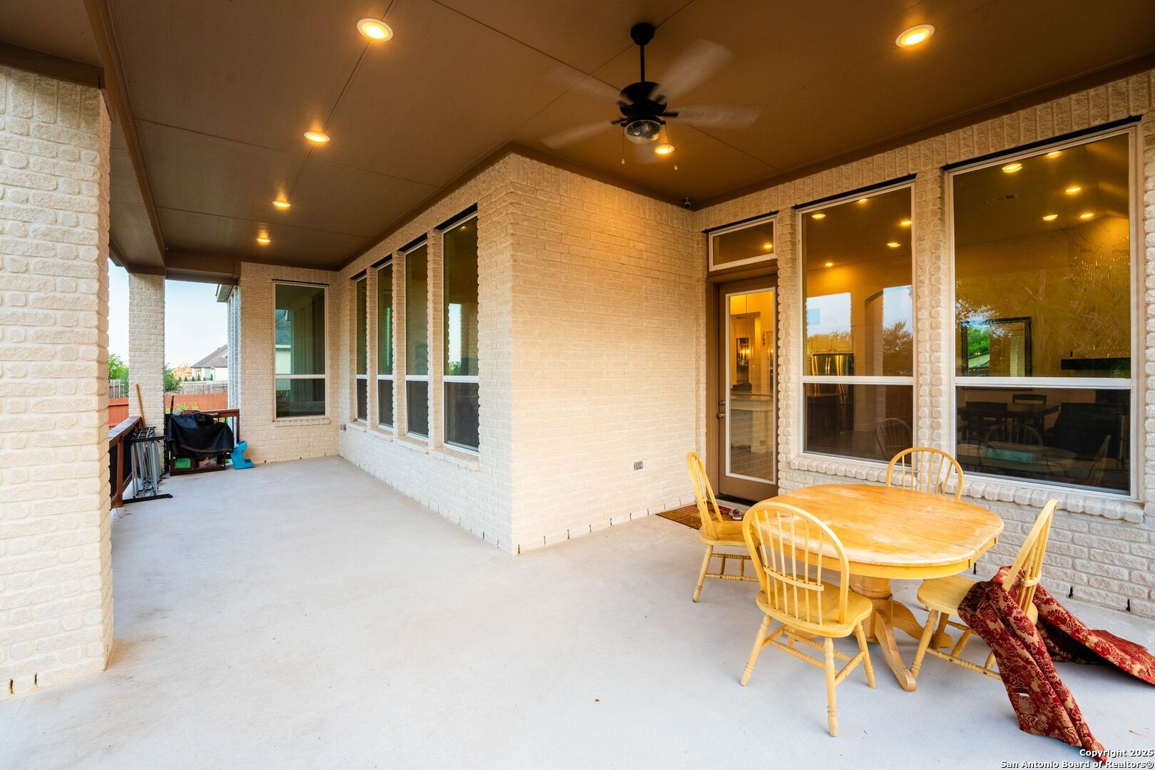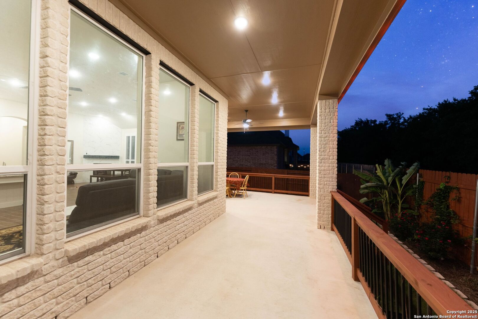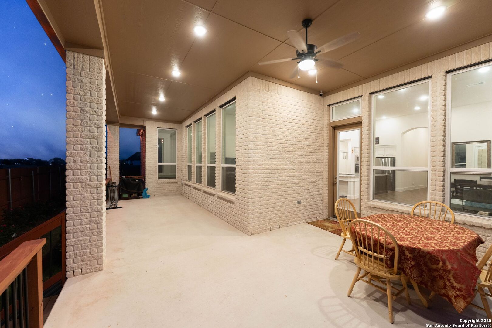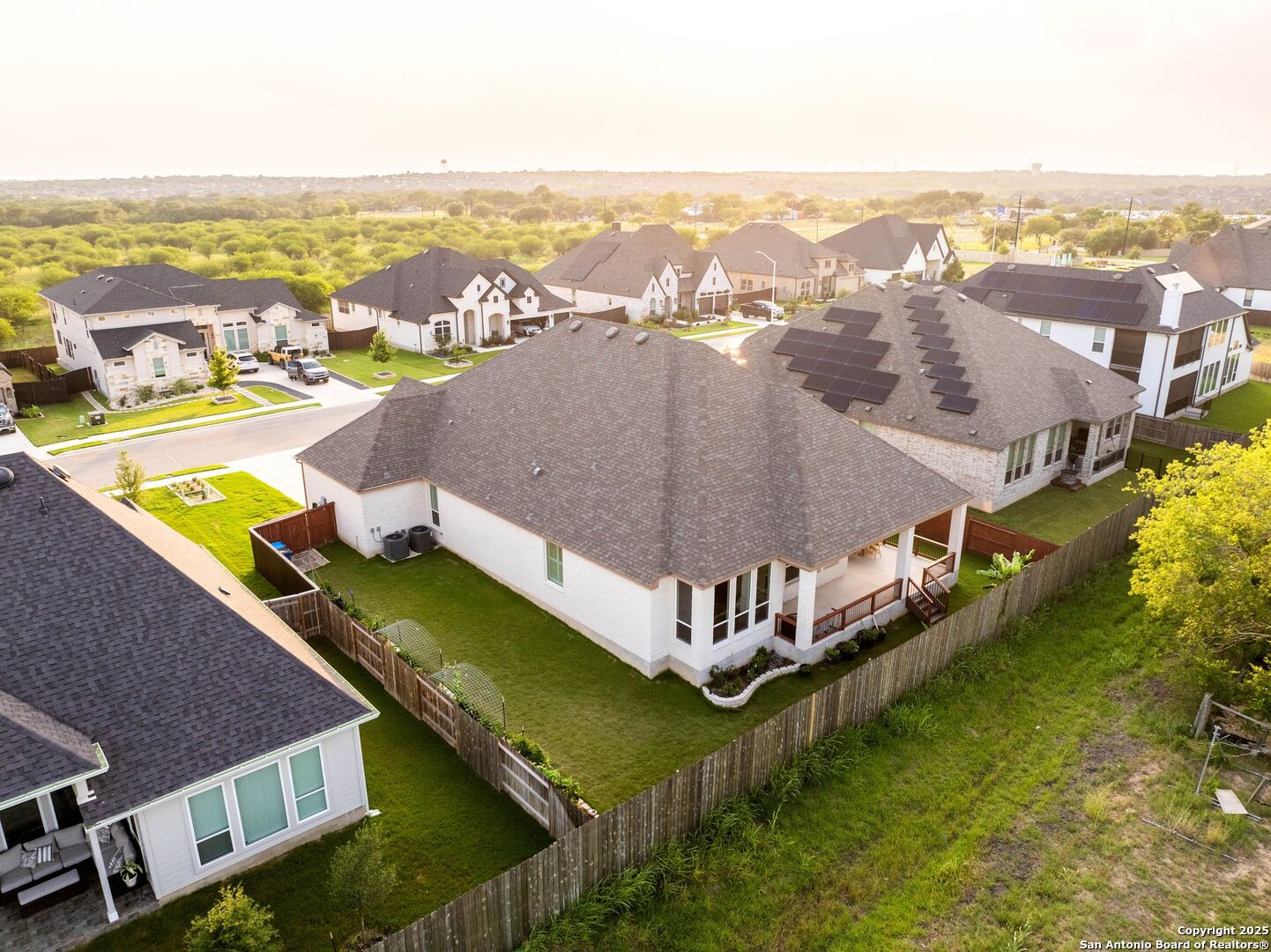 Welcome to 444 Westmont your luxury dream home thoughtfully designed! Step into the most voted 216 floorplan by Highland Homes, located in the prestigious Mesa Western subdivision. This like-new, one-story residence spans 3,220 sq ft and features 4 bedrooms, 3.5 bathrooms, media room, a study/office and a 3-car garage with extended height additional conveniences include a high-voltage smart car connection. This home is beautifully enhanced with an abundance of premium builder upgrades. From the moment you arrive, you're welcomed by a grand 8-foot double front door that opens into a spacious layout with gorgeous ceramic wood like flooring throughout the main areas, high ceilings and natural light pouring in through oversized windows. The gourmet kitchen is a dream, boasting a double XL island, high-end KitchenAid appliances, upgraded cabinetry, and a designer backsplash, all seamlessly connecting to the living and dining areas.The extended primary suite offers a luxurious retreat with a spa-like bath featuring dual vanities, a walk-in shower, a drop-in soaking tub, and a custom walk-in closet. Additional upgrades include an oversized laundry room with custom cabinetry and an upgraded walk-in secondary pantry, plantation shutters throughout, and a pre-wired media room with a 120" projector setup. The home also includes a water softener system, upgraded outdoor lighting for added ambiance and curb appeal, and an extended covered patio overlooking a spacious backyard with beautifully landscaped garden.Ideally located between San Antonio and Austin, this home offers easy access to JBSA-Randolph, a variety of shopping and dining options, and is zoned to the top rated SCUCISD school district. Don't miss this rare opportunity to own a luxury Highland Home in one of the area's most desirable communities. Welcome home!
