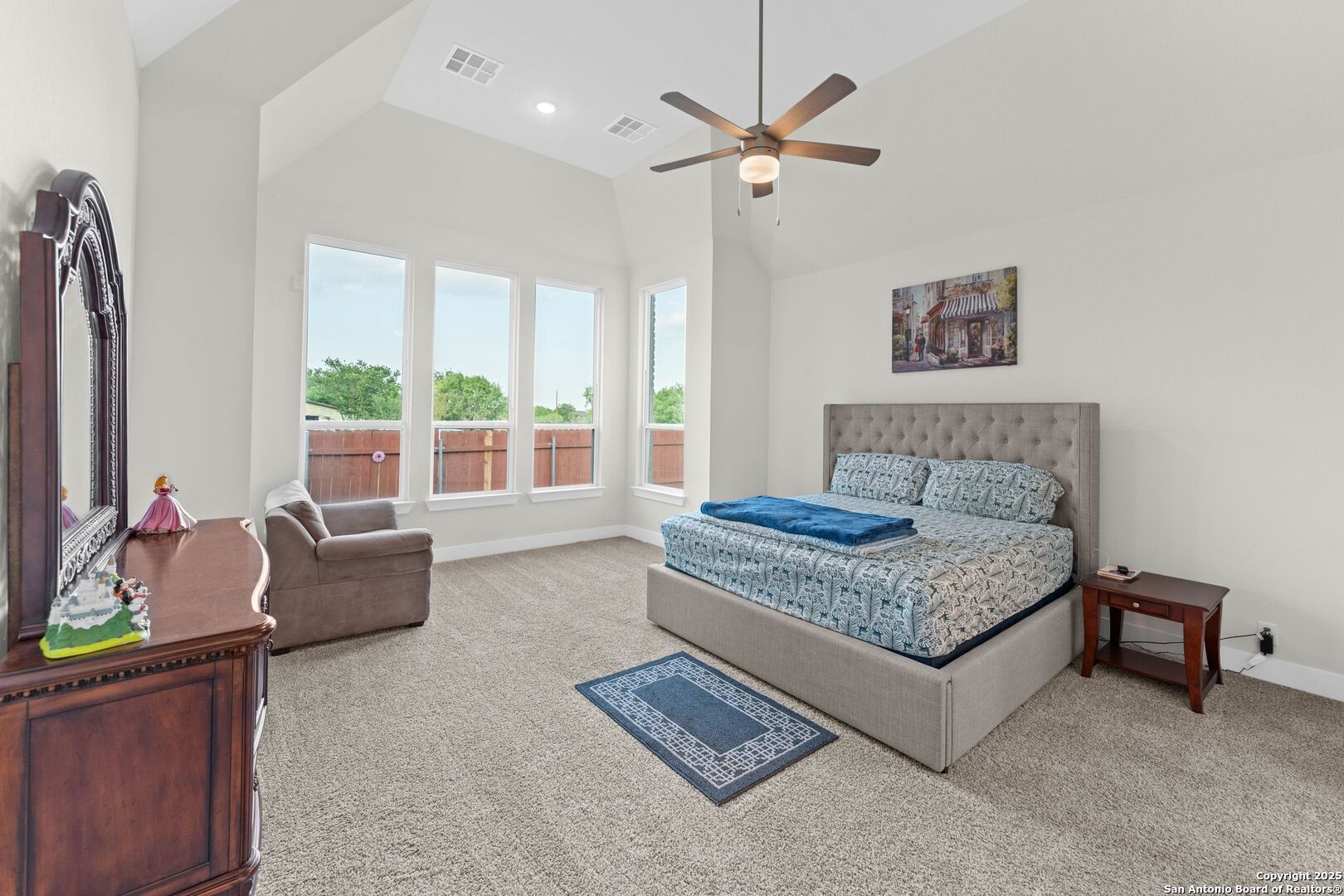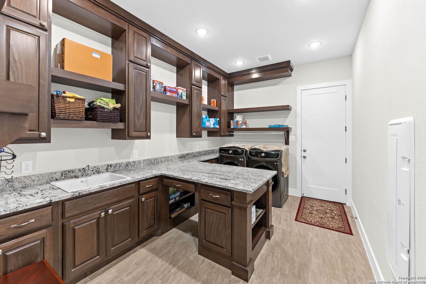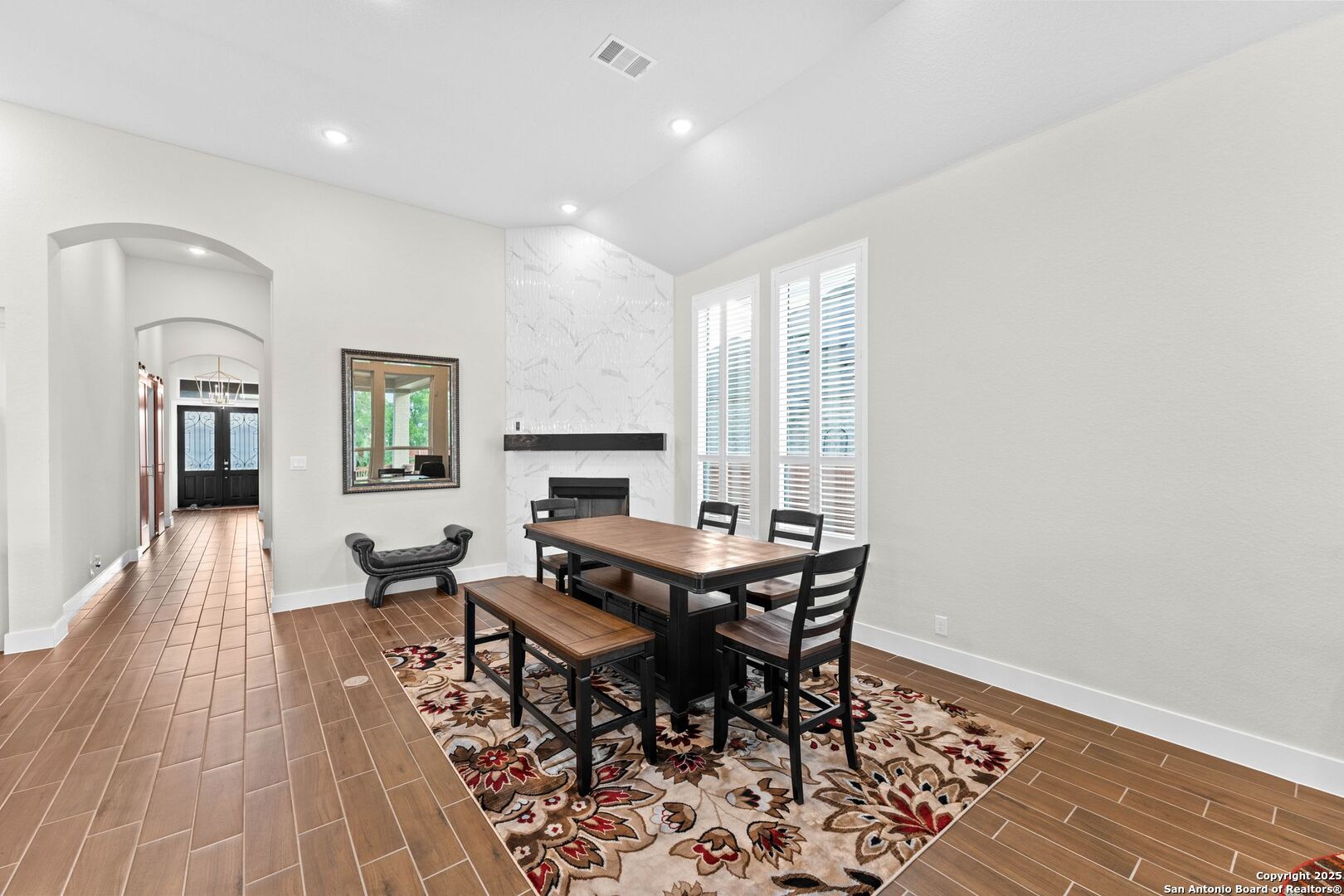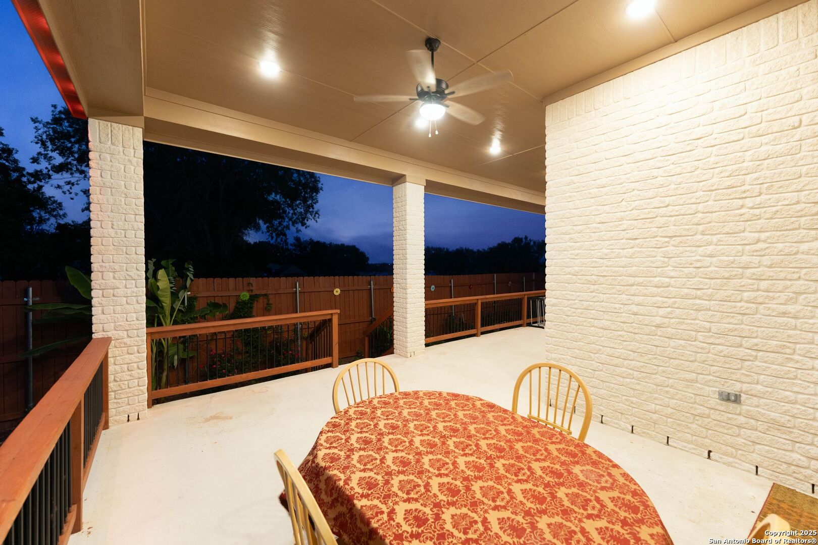 Welcome to 444 Westmont your luxury dream home thoughtfully designed! Step into the most voted 216 floorplan by Highland Homes, located in the prestigious Mesa Western subdivision. This like-new, one-story residence spans 3,220 sq ft and features 4 bedrooms, 3.5 bathrooms, media room, a study/office and a 3-car garage with extended height additional conveniences include a high-voltage smart car connection. This home is beautifully enhanced with an abundance of premium builder upgrades. From the moment you arrive, you're welcomed by a grand 8-foot double front door that opens into a spacious layout with gorgeous ceramic wood like flooring throughout the main areas, high ceilings and natural light pouring in through oversized windows. The gourmet kitchen is a dream, boasting a double XL island, high-end KitchenAid appliances, upgraded cabinetry, and a designer backsplash, all seamlessly connecting to the living and dining areas.The extended primary suite offers a luxurious retreat with a spa-like bath featuring dual vanities, a walk-in shower, a drop-in soaking tub, and a custom walk-in closet. Additional upgrades include an oversized laundry room with custom cabinetry and an upgraded walk-in secondary pantry, plantation shutters throughout, and a pre-wired media room with a 120" projector setup. The home also includes a water softener system, upgraded outdoor lighting for added ambiance and curb appeal, and an extended covered patio overlooking a spacious backyard with beautifully landscaped garden.Ideally located between San Antonio and Austin, this home offers easy access to JBSA-Randolph, a variety of shopping and dining options, and is zoned to the top rated SCUCISD school district. Don't miss this rare opportunity to own a luxury Highland Home in one of the area's most desirable communities. Welcome home!