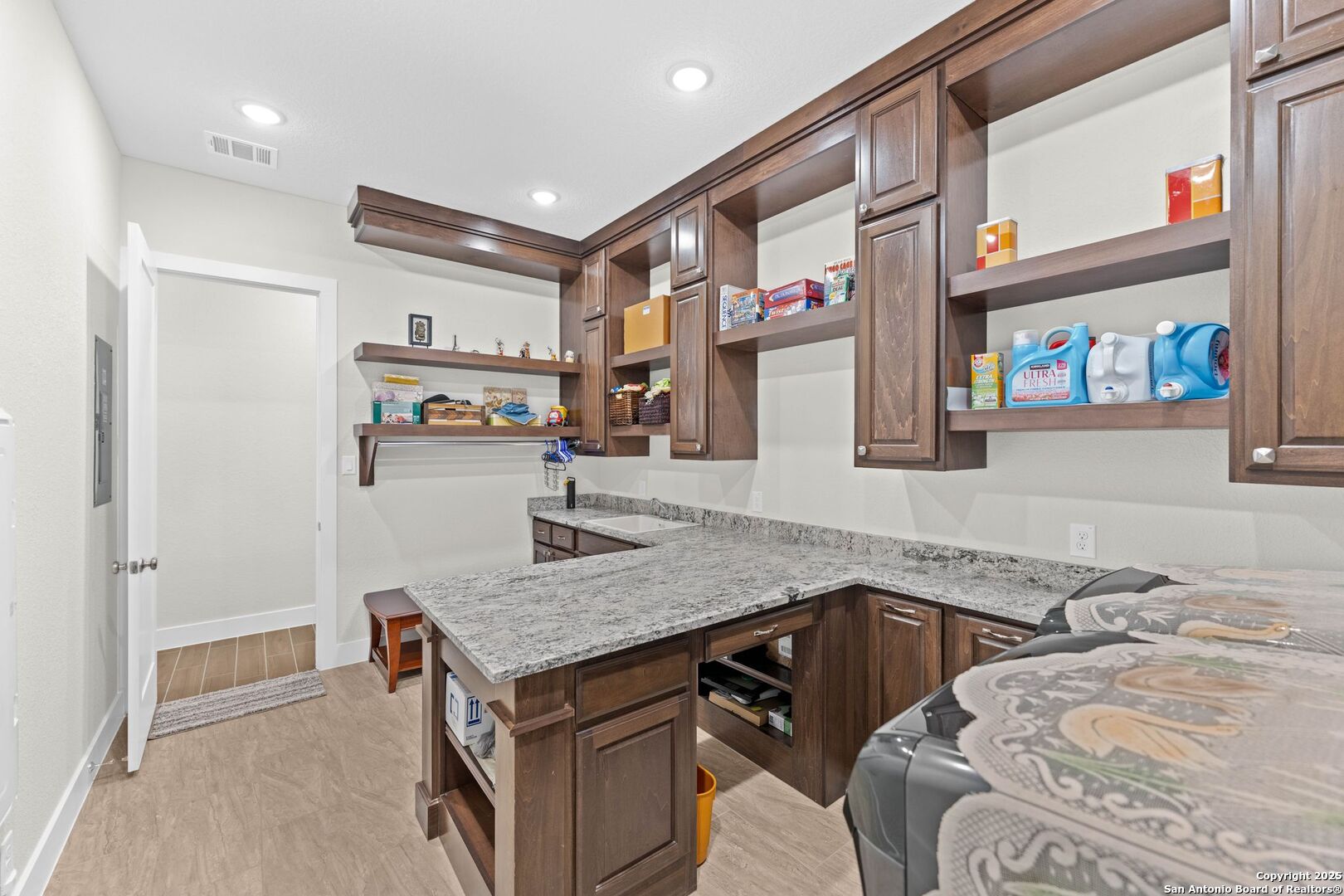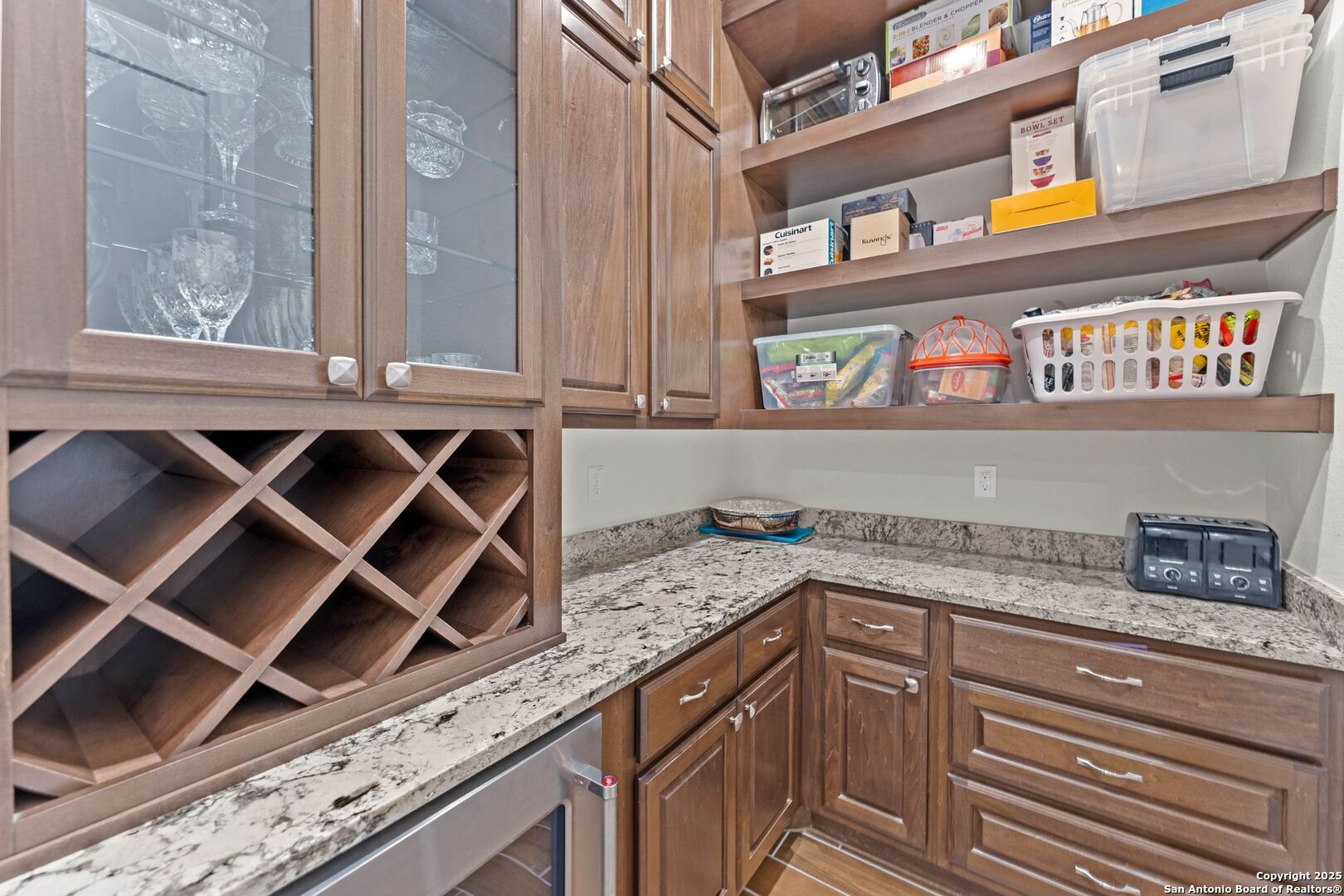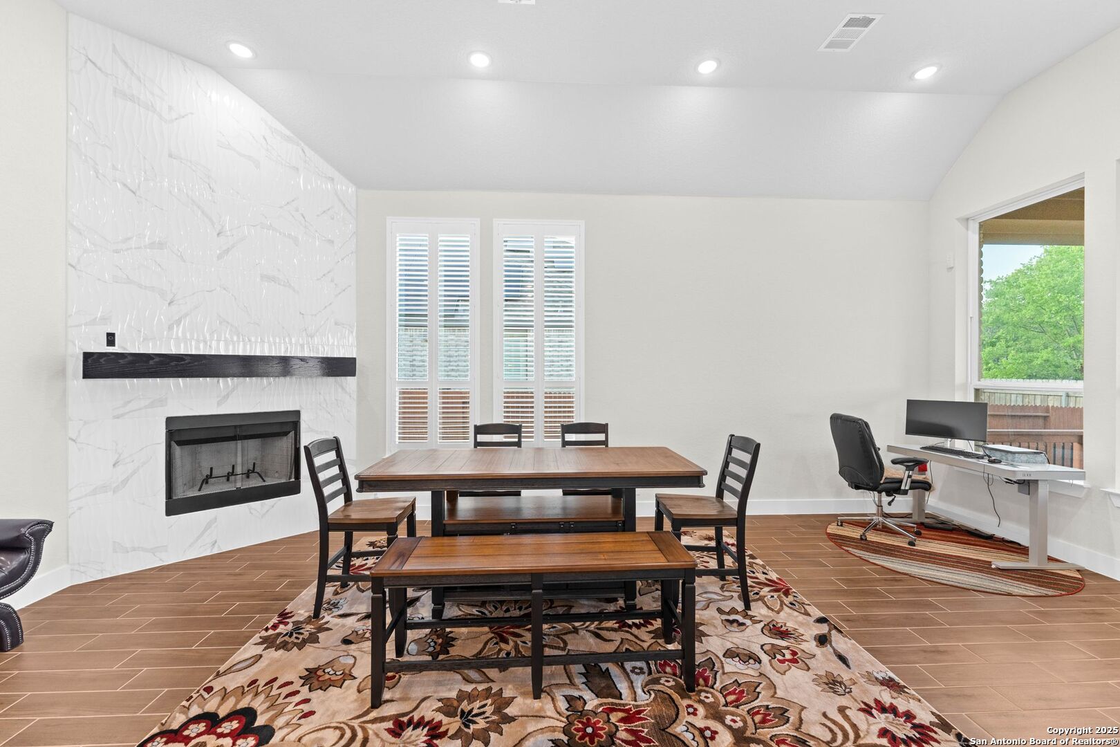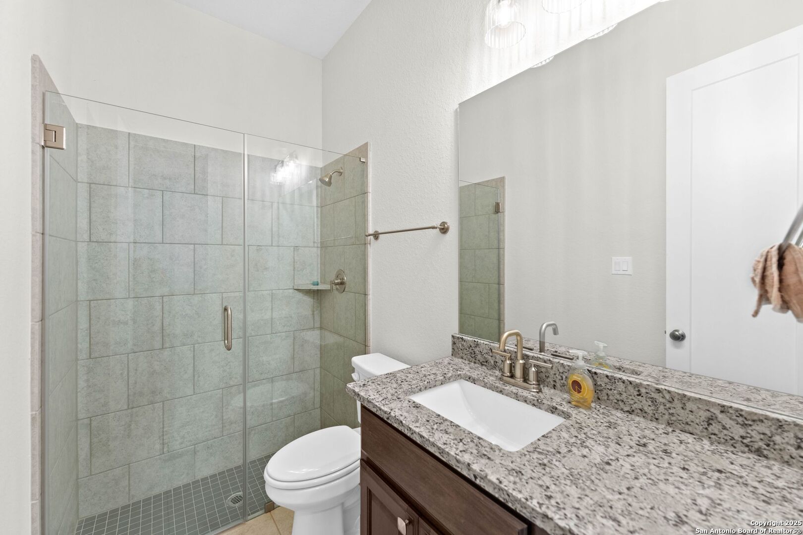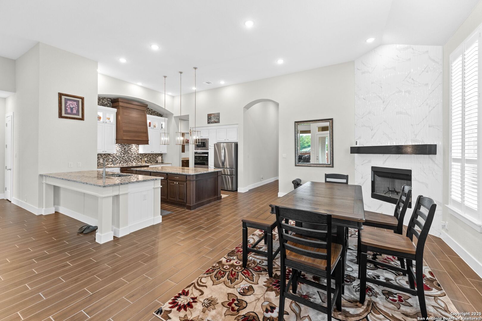 Welcome to 444 Westmont your luxury dream home thoughtfully designed! Step into the most voted 216 floorplan by Highland Homes, located in the prestigious Mesa Western subdivision. This like-new, one-story residence spans 3,220 sq ft and features 4 bedrooms, 3.5 bathrooms, media room, a study/office and a 3-car garage with extended height additional conveniences include a high-voltage smart car connection. This home is beautifully enhanced with an abundance of premium builder upgrades. From the moment you arrive, you're welcomed by a grand 8-foot double front door that opens into a spacious layout with gorgeous ceramic wood like flooring throughout the main areas, high ceilings and natural light pouring in through oversized windows. The gourmet kitchen is a dream, boasting a double XL island, high-end KitchenAid appliances, upgraded cabinetry, and a designer backsplash, all seamlessly connecting to the living and dining areas.The extended primary suite offers a luxurious retreat with a spa-like bath featuring dual vanities, a walk-in shower, a drop-in soaking tub, and a custom walk-in closet. Additional upgrades include an oversized laundry room with custom cabinetry and an upgraded walk-in secondary pantry, plantation shutters throughout, and a pre-wired media room with a 120" projector setup. The home also includes a water softener system, upgraded outdoor lighting for added ambiance and curb appeal, and an extended covered patio overlooking a spacious backyard with beautifully landscaped garden.Ideally located between San Antonio and Austin, this home offers easy access to JBSA-Randolph, a variety of shopping and dining options, and is zoned to the top rated SCUCISD school district. Don't miss this rare opportunity to own a luxury Highland Home in one of the area's most desirable communities. Welcome home!