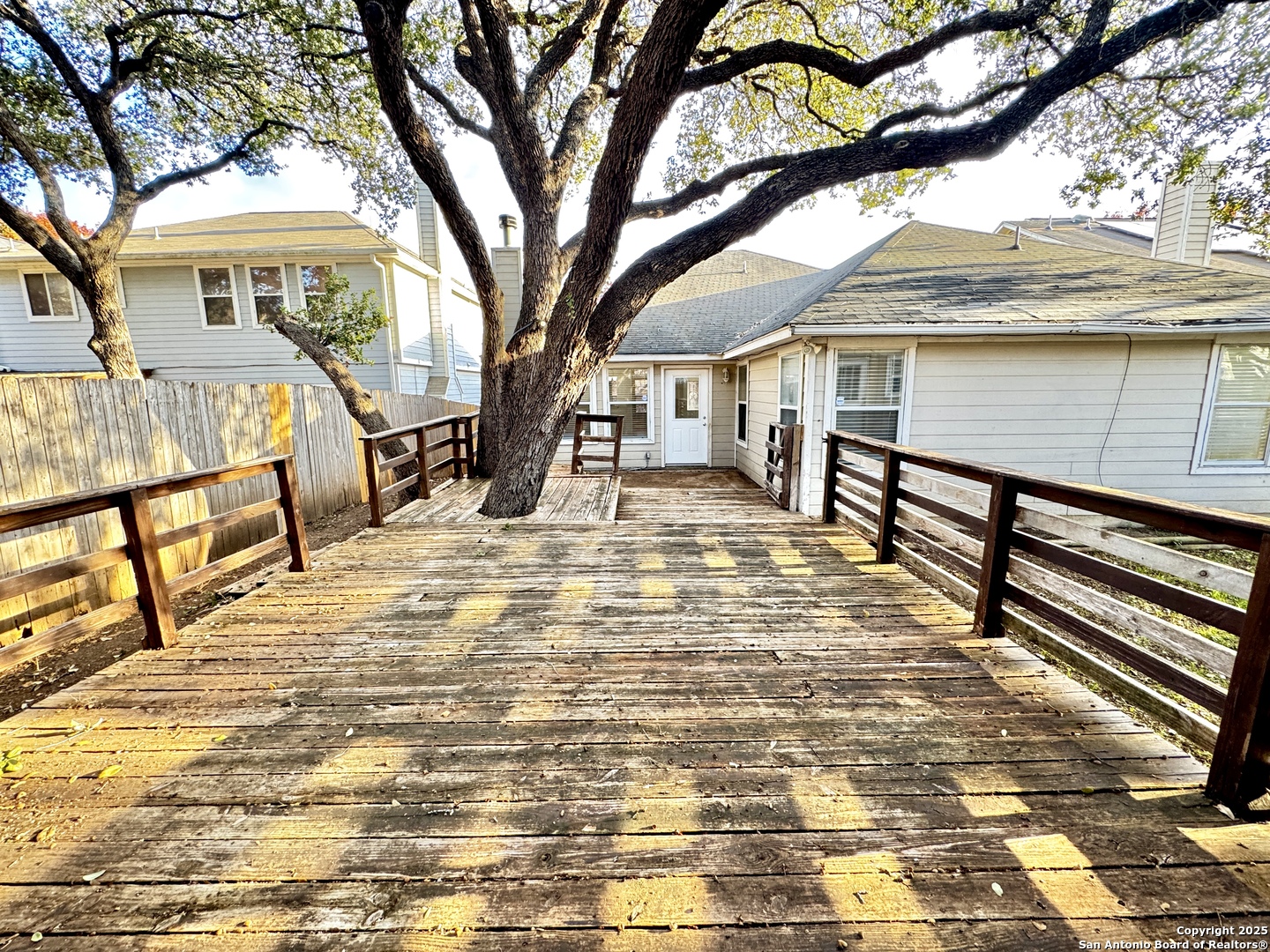 Welcome Home! Well-maintained single-story home located in the gated Hidden Oaks North community on San Antonio's Northeast side. This 3-bedroom, 2-bath residence offers a functional layout and is zoned to NEISD schools. All appliances are included: refrigerator, washer, dryer, dishwasher, microwave, water softener, and central air conditioning and heating. The home features a private backyard with a large outdoor deck, ideal for outdoor dining, grilling, and entertaining. Conveniently located near US-281 and Loop 1604, with easy access to shopping, dining, and major employers, situated in a small, friendly, and well-maintained community. Owner-managed and available for immediate lease.