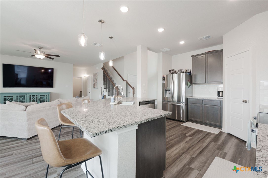 Available May 1- Spacious 4-bedroom, 3.5-bath plus office/flex room home is located in the desirable The Valley at Great Hills subdivision in Copperas Cove, featuring a downstairs primary suite and an upstairs loft. This home is ready for its new tenants and offers plenty of space for a growing family, entertaining guests, or accommodating out-of-town visitors. The main floor features an open-concept layout with seamless views of the kitchen, living room, and dining area; perfect for both everyday living and hosting gatherings. The kitchen is equipped with stainless steel appliances, granite countertops, and a large breakfast bar ideal for casual dining. The primary bedroom, located on the main level, features an inset ceiling and a private en suite bathroom with a separate walk-in shower, a double vanity, and a walk-in closet. Additional highlights include recessed lighting throughout and a separate laundry room conveniently located off the kitchen and garage. Step outside to the back porch and backyard, enclosed by a privacy fence, offering plenty of room for entertaining, outdoor activities, and pets. Conveniently located near Fort Hood with easy access to Austin for commuting, shopping, and entertainment. Schedule your showing today! **Applicants must verify breed and number of pets BEFORE applying. Applications are to be submitted through Joint.ly - see supplements Renters must provide proof of renters insurance of a minimum of 100K. Tenants are responsible for any HOA violations and fines.
