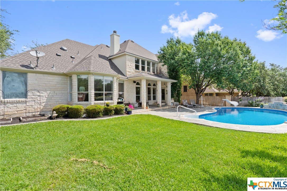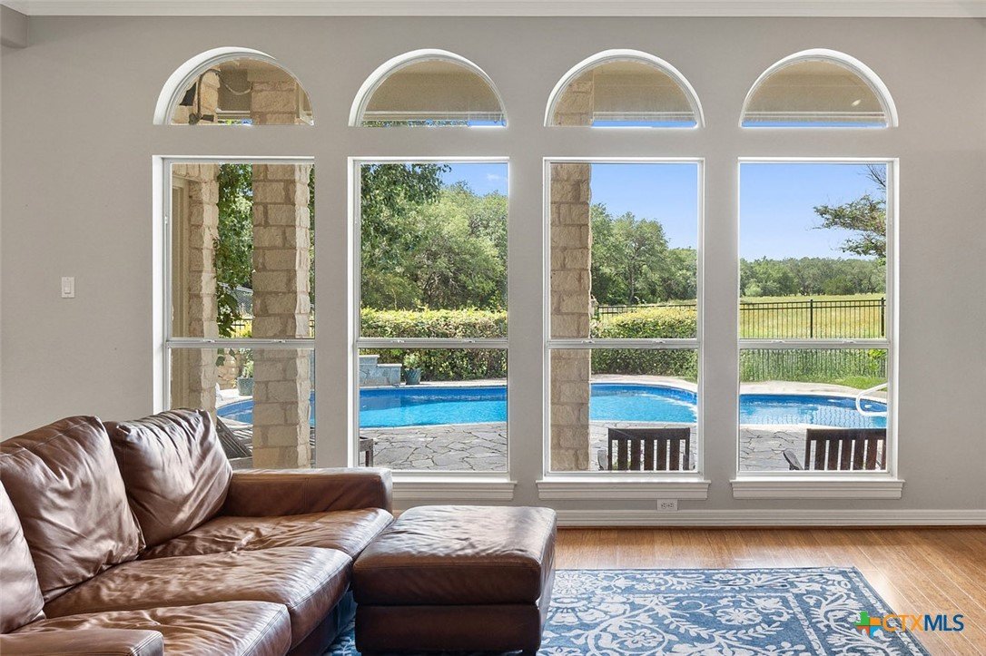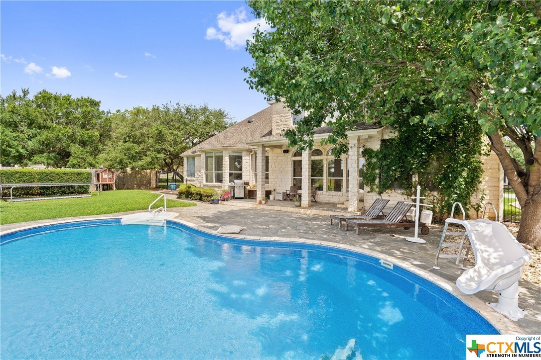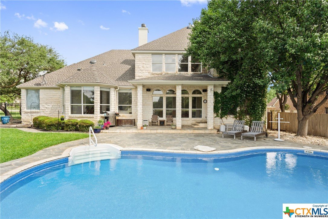 Seller Financing Available: AMAZING ENDLESS VIEW + LAGOON POOL = Exclusive Greenbelt Living! Discover luxury living at its finest in this stunning home at 445 Champions Drive. Just off the family room you can access the private and serene backyard oasis for entertaining guests and summer cookouts. Family and loved ones will enjoy the massive 22x36 lagoon shaped pool with expansive quartz flagstone decking, waterfalls and slide. Other amenities include a covered patio, propane stainless steel grill with inground tank, and a lush lawn and landscaping with sprinkler system. The pool was recently updated with the latest commercial grade technology. Innovations include low chemical ultraviolet disinfection, automatic liquid chlorine injection, energy efficient pump and an autonomous robotic pool cleaner. The phone app makes pool ownership easy. This exquisite property, situated in the esteemed Berry Creek Golf Course community, boasts unparalleled craftsmanship and timeless elegance. Spanning 0ver 3,900 sq feet, this sprawling two-story residence offers abundant space for both lavish entertaining and everyday living. Upon entry, be greeted by the grand foyer, adorned with custom millwork and soaring ceilings, setting the tone for the opulence found throughout the home. Adjacent Beyond the beauty of the home itself, residents enjoy access to a wealth of amenities within the Berry Creek Golf Course community, including championship golf, tennis courts, swimming pools, and a clubhouse with dining options. Conveniently located just minutes from downtown Georgetown, residents can enjoy easy access to shopping, dining, entertainment, and recreational opportunities, while still relishing the tranquility and privacy of suburban living. Schedule your private showing today and discover your dream home in Georgetown, Texas.