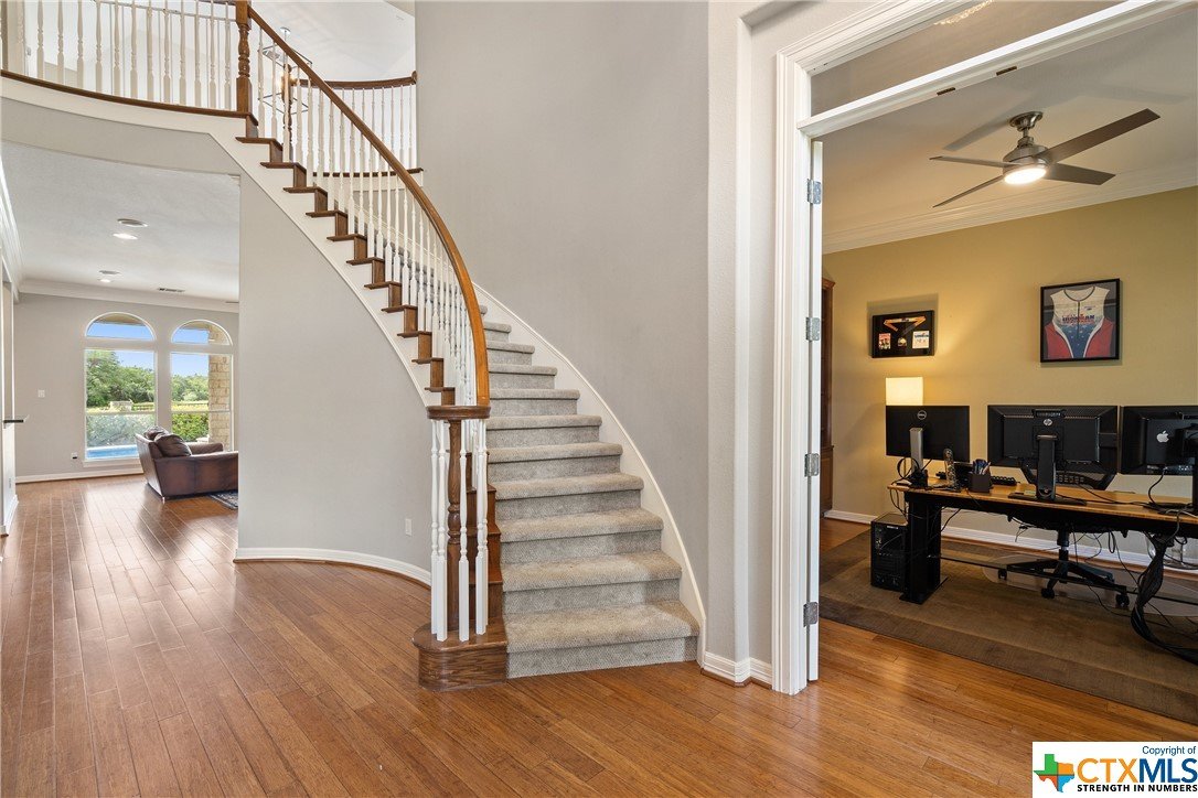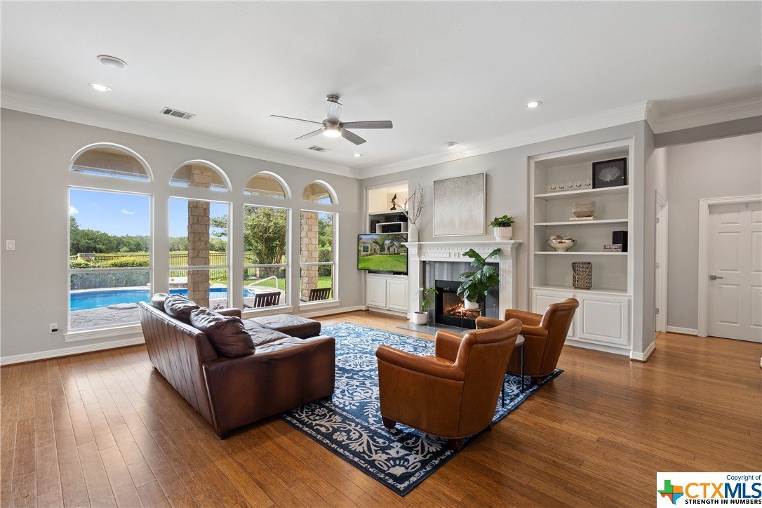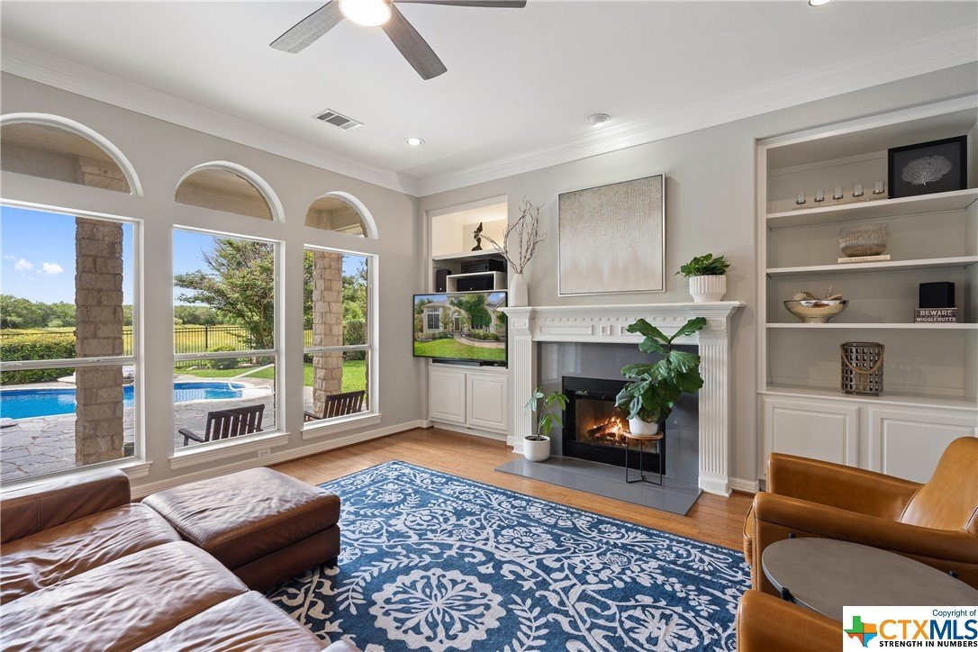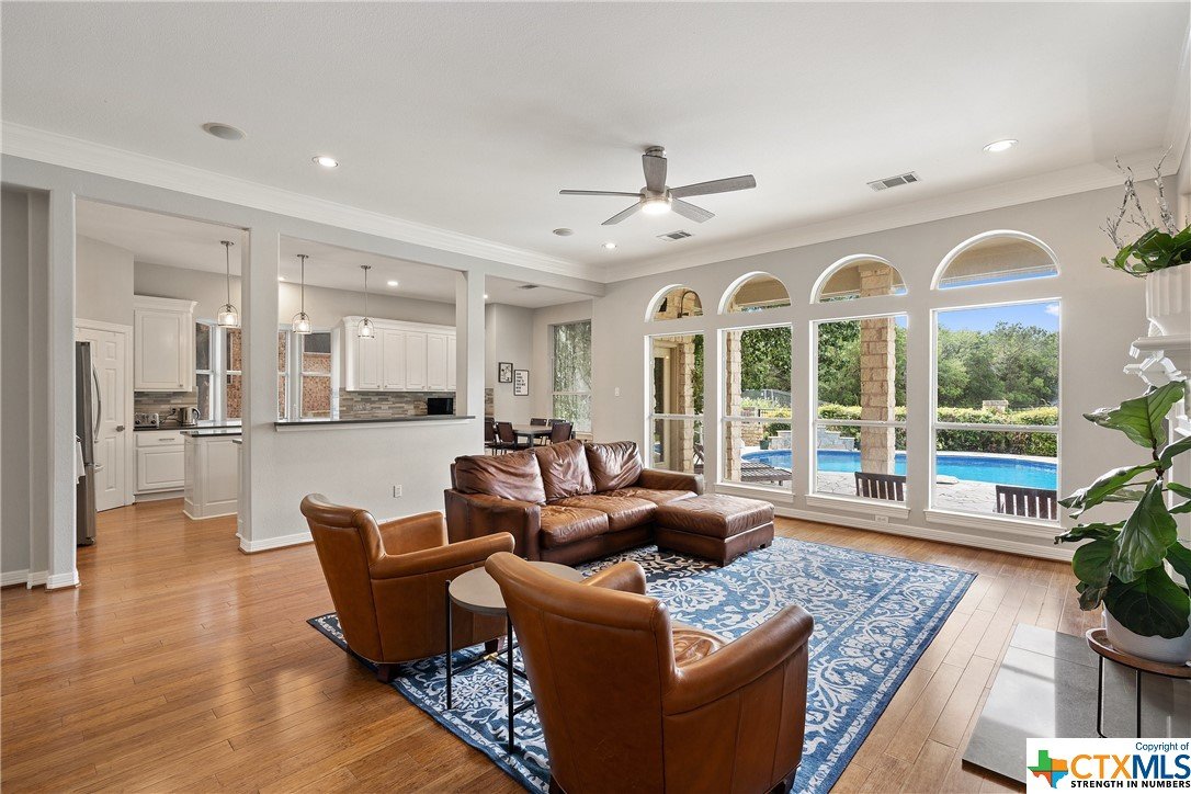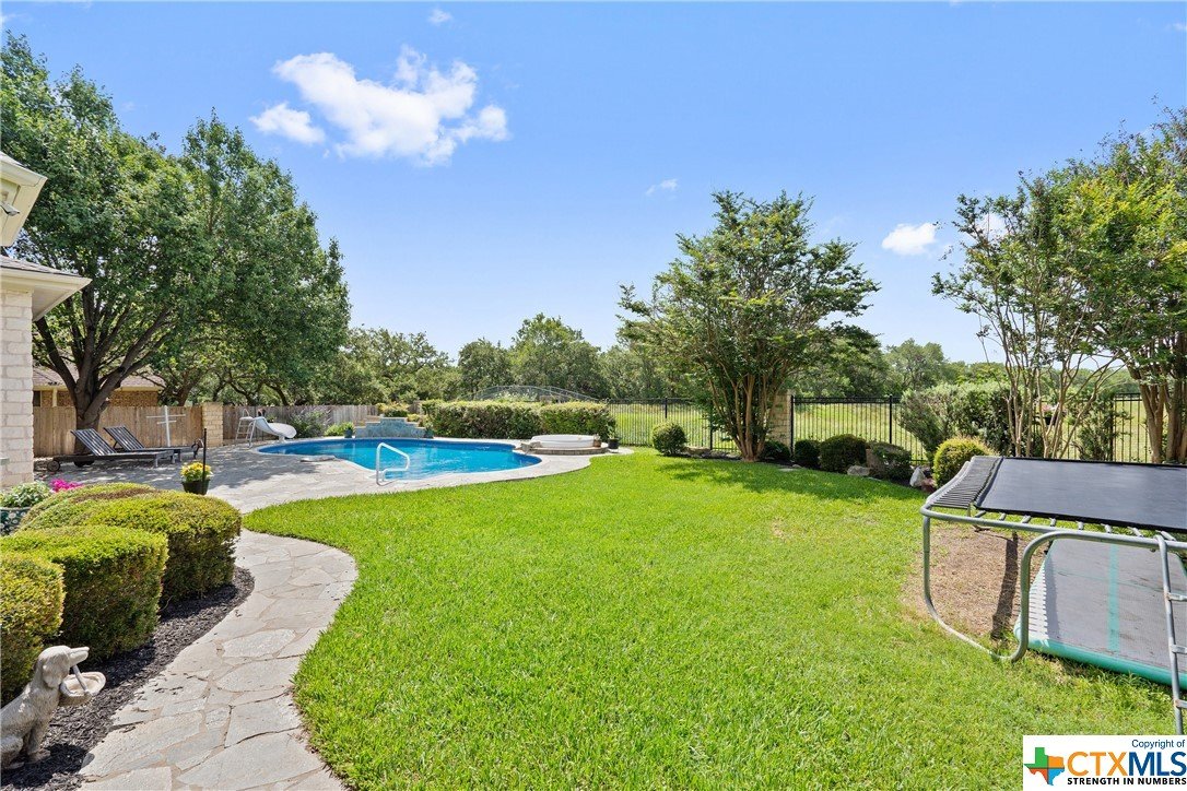 Seller Financing Available: AMAZING ENDLESS VIEW + LAGOON POOL = Exclusive Greenbelt Living! Discover luxury living at its finest in this stunning home at 445 Champions Drive. Just off the family room you can access the private and serene backyard oasis for entertaining guests and summer cookouts. Family and loved ones will enjoy the massive 22x36 lagoon shaped pool with expansive quartz flagstone decking, waterfalls and slide. Other amenities include a covered patio, propane stainless steel grill with inground tank, and a lush lawn and landscaping with sprinkler system. The pool was recently updated with the latest commercial grade technology. Innovations include low chemical ultraviolet disinfection, automatic liquid chlorine injection, energy efficient pump and an autonomous robotic pool cleaner. The phone app makes pool ownership easy. This exquisite property, situated in the esteemed Berry Creek Golf Course community, boasts unparalleled craftsmanship and timeless elegance. Spanning 0ver 3,900 sq feet, this sprawling two-story residence offers abundant space for both lavish entertaining and everyday living. Upon entry, be greeted by the grand foyer, adorned with custom millwork and soaring ceilings, setting the tone for the opulence found throughout the home. Adjacent Beyond the beauty of the home itself, residents enjoy access to a wealth of amenities within the Berry Creek Golf Course community, including championship golf, tennis courts, swimming pools, and a clubhouse with dining options. Conveniently located just minutes from downtown Georgetown, residents can enjoy easy access to shopping, dining, entertainment, and recreational opportunities, while still relishing the tranquility and privacy of suburban living. Schedule your private showing today and discover your dream home in Georgetown, Texas.