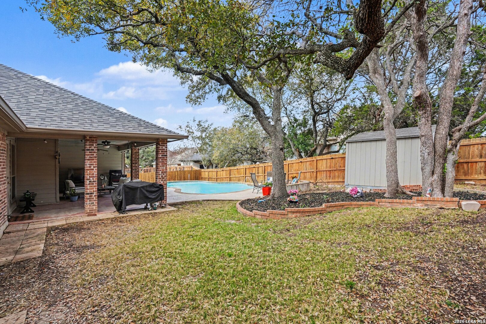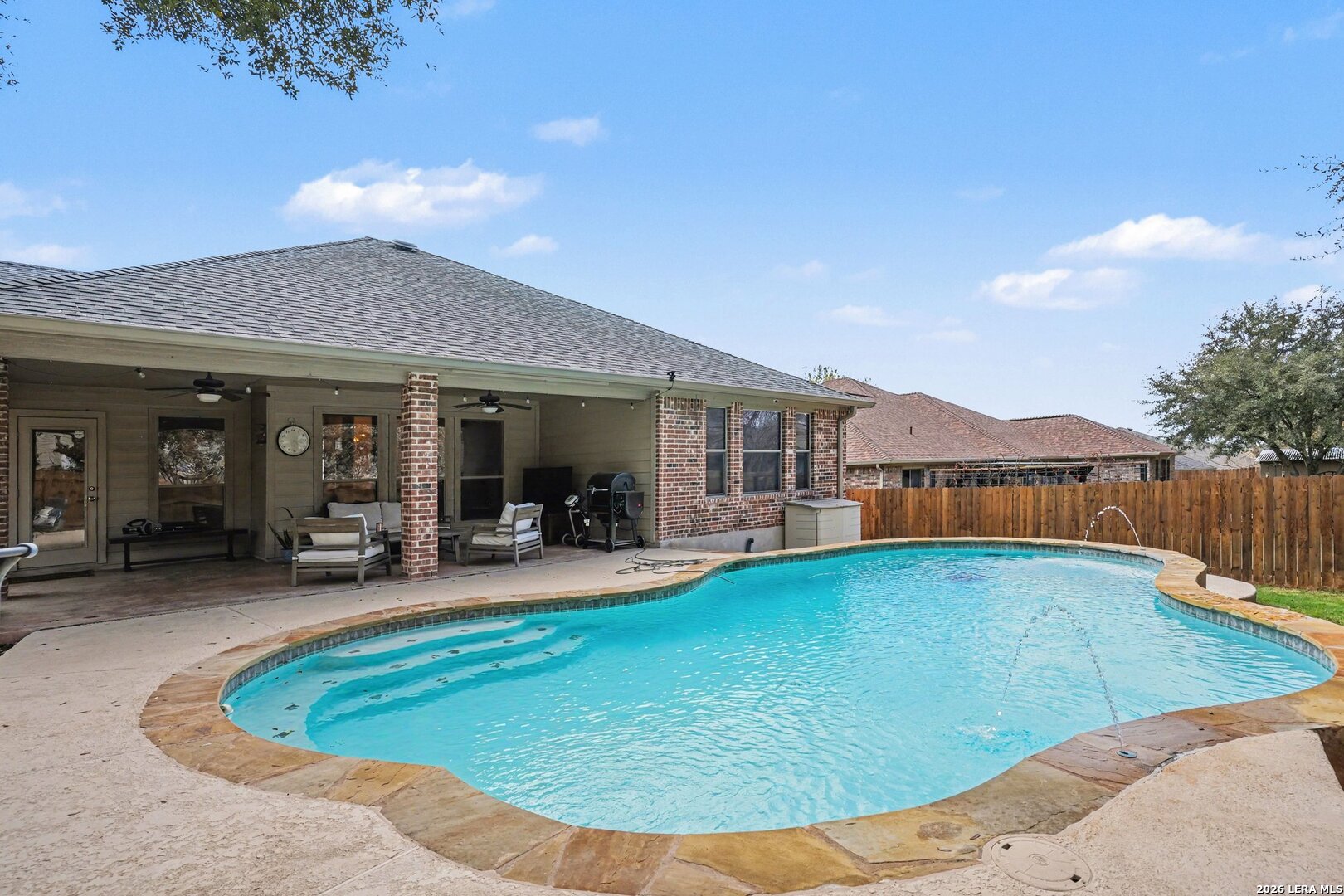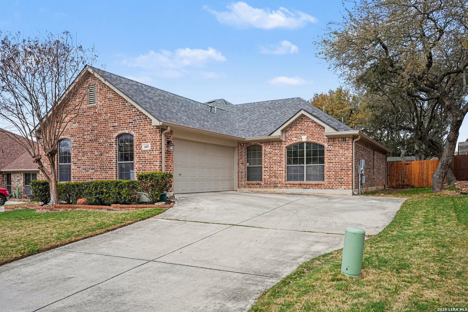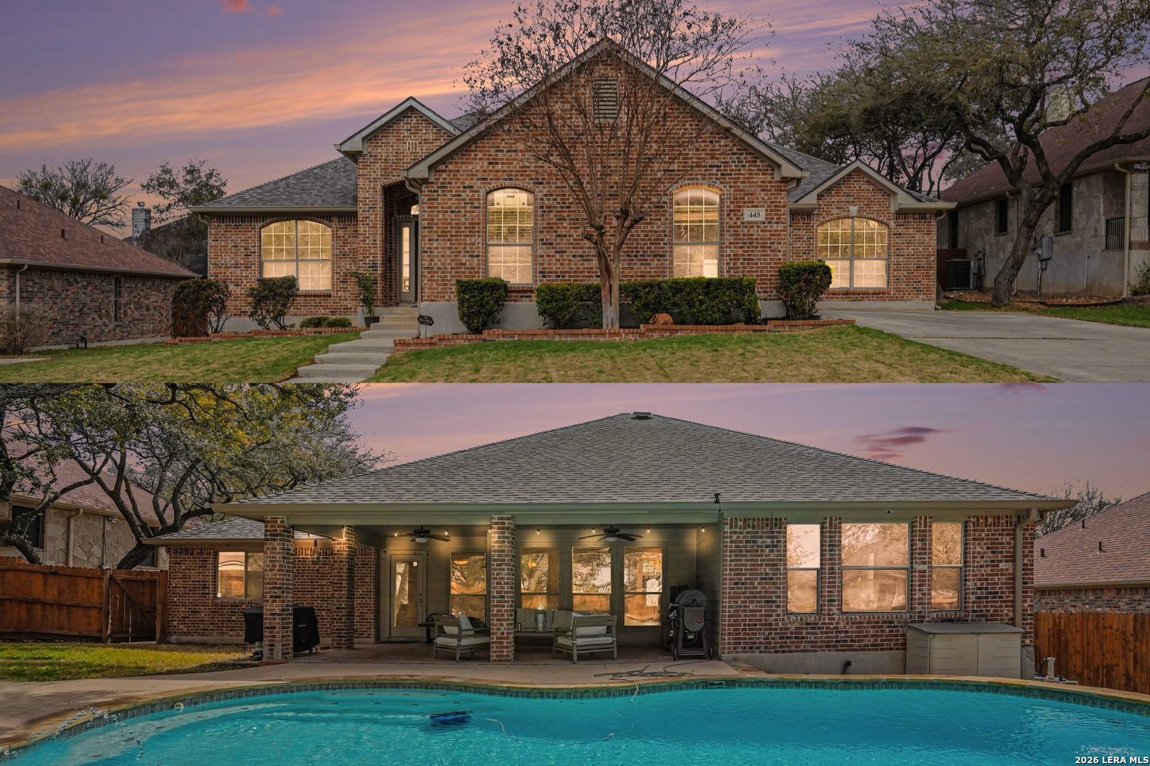 !!Pool - Remodeled - Prime Location!!Welcome to this beautifully upgraded home in the highly desirable Savannah Bluff community in Schertz, where mature surroundings, larger homesites, and convenient access to Randolph AFB, I-35, shopping, and dining make this one of the area's most sought-after neighborhoods. This 4 bedroom, 2.5 bath home offers 2,589 square feet of thoughtfully designed living space and outstanding curb appeal with four sides brick construction and a side-entry garage. The backyard is a true highlight - featuring a stunning in-ground swimming pool with Polaris cleaner and a large covered back porch, creating the perfect setting for relaxing evenings, weekend gatherings, and enjoying Texas summers. Inside, the home showcases over $100,000 in custom remodeling to the kitchen and living areas, creating a modern and inviting space for both everyday living and entertaining. Interior Highlights * Leathered granite countertops * High-end stainless steel appliances * Custom cabinetry * Custom travertine tile flooring * Custom stacked stone electric fireplace Exterior & Systems * Four sides brick construction * Heavy composition roof * Gutters * New Full sprinkler system * Newer HVAC system Garage & Storage Features * Side-entry garage * Insulated garage * Utility sink in garage * Attic flooring for additional storage Smart & Security * Video security system with equipment rack * Updated lighting fixtures throughout With its resort-style backyard pool, extensive upgrades, and location in one of Schertz's most established neighborhoods, 445 Fawn Pass offers a rare opportunity to own a move-in-ready home that blends comfort, style, and lifestyle.