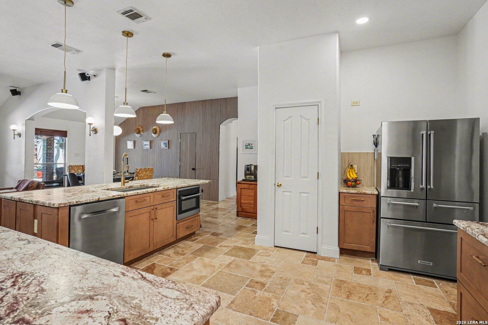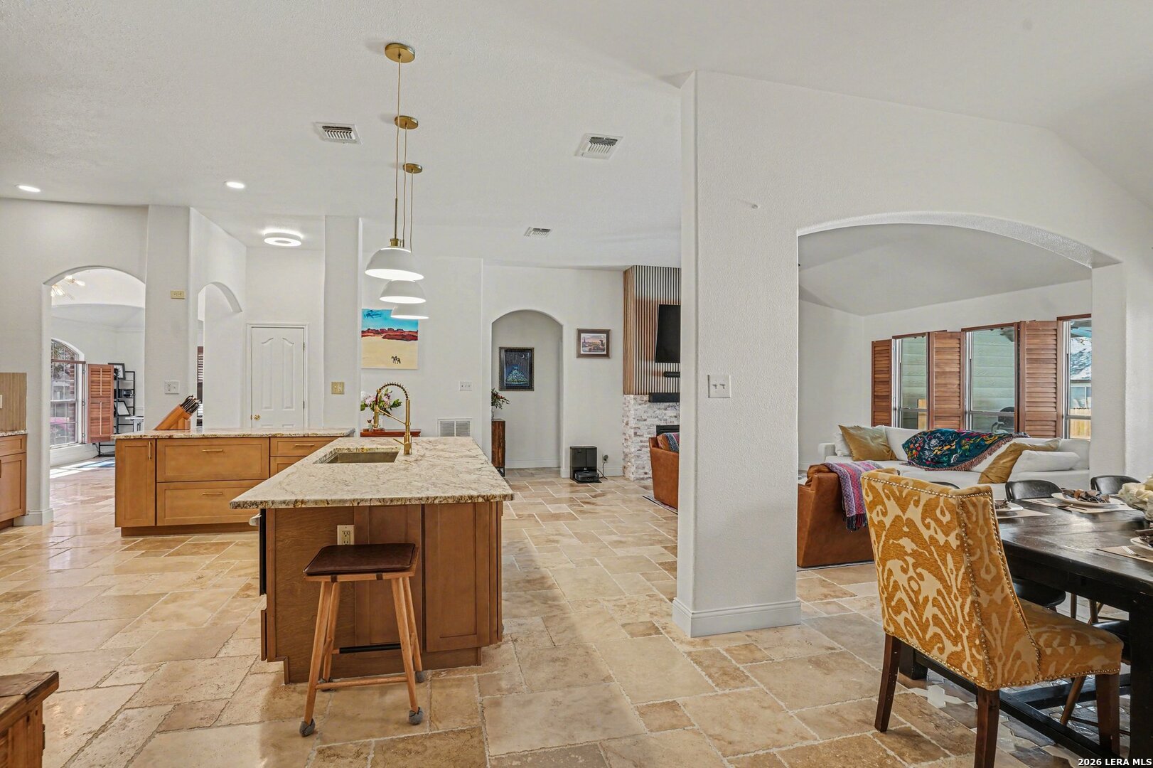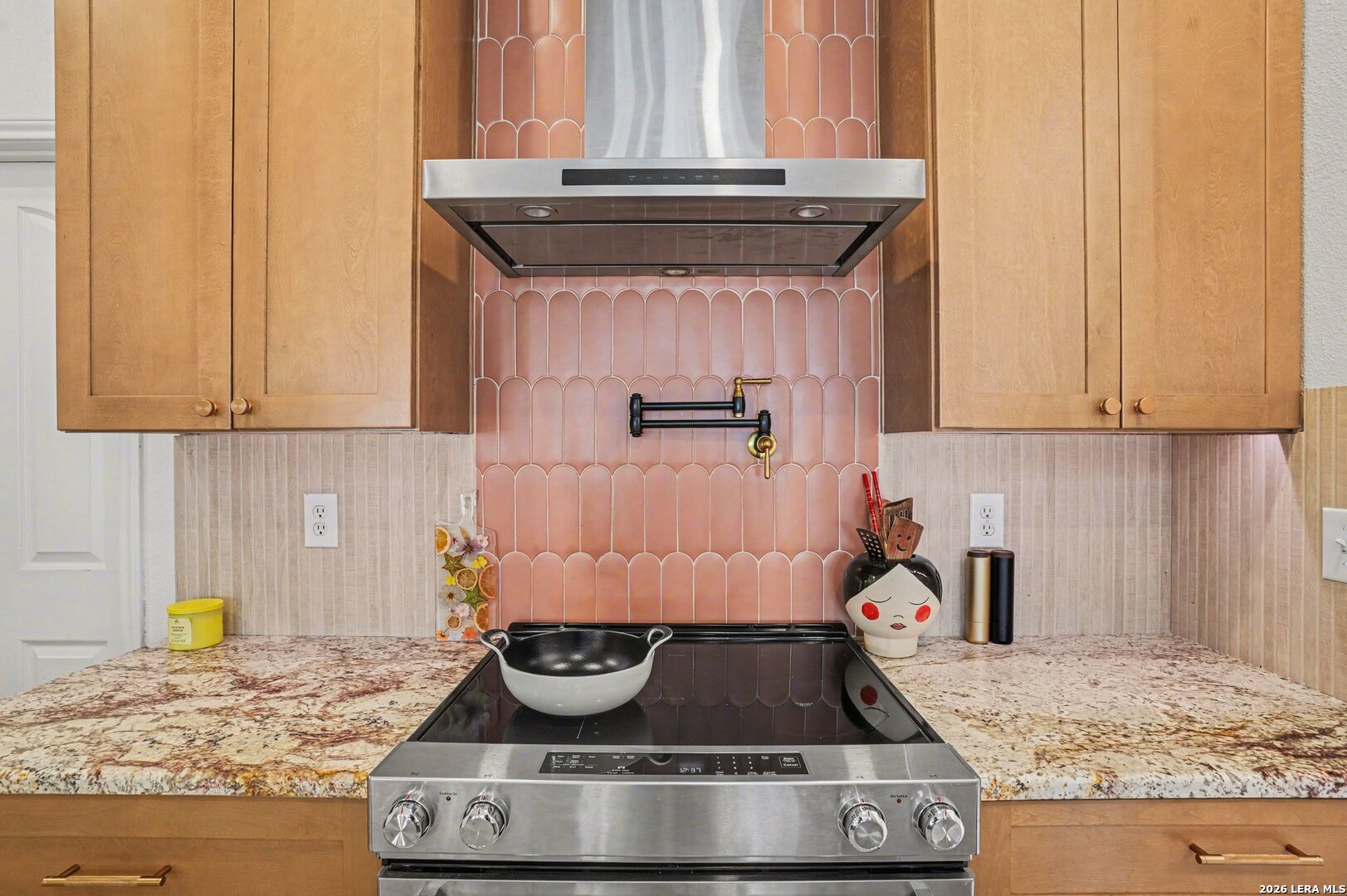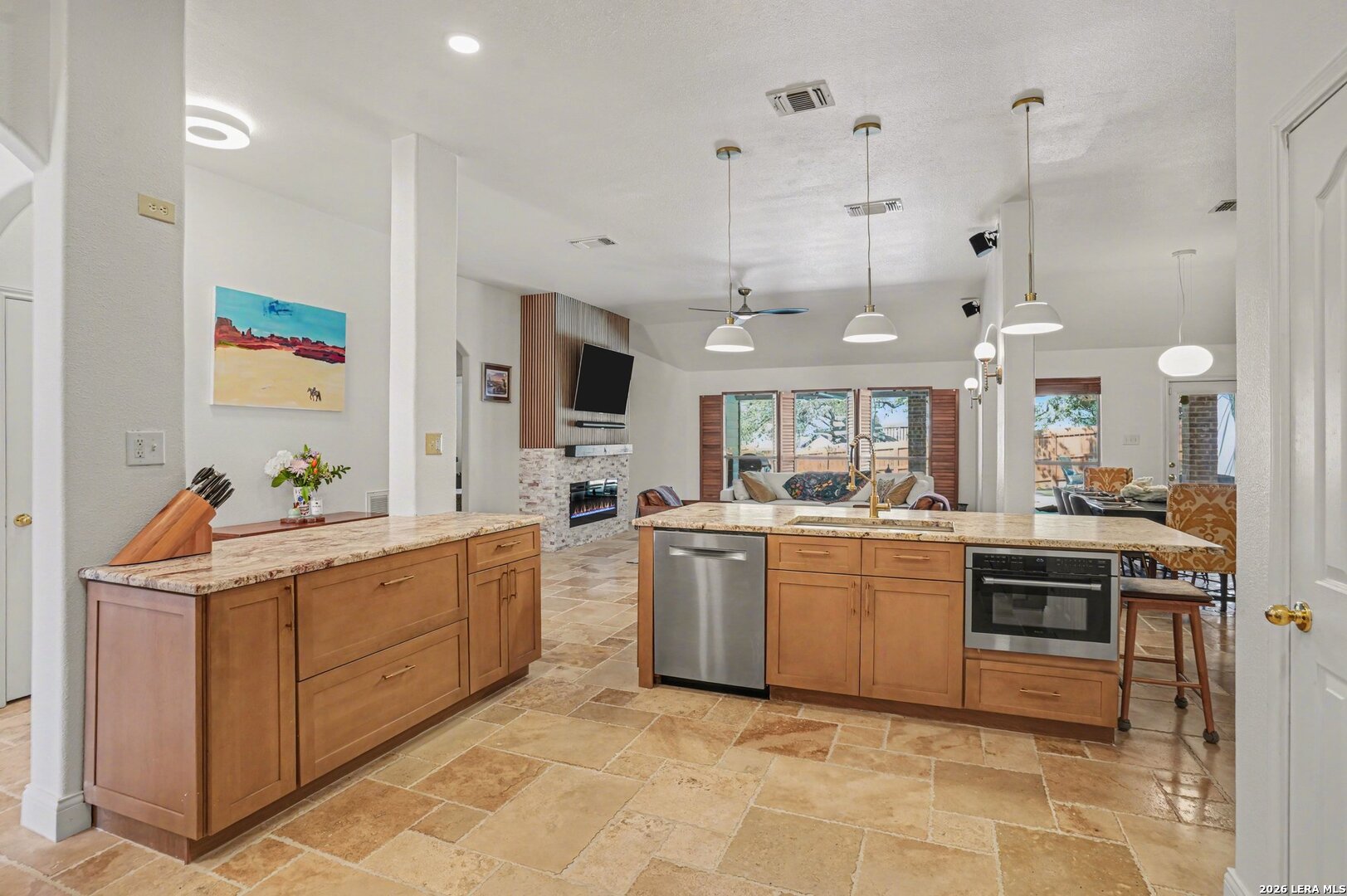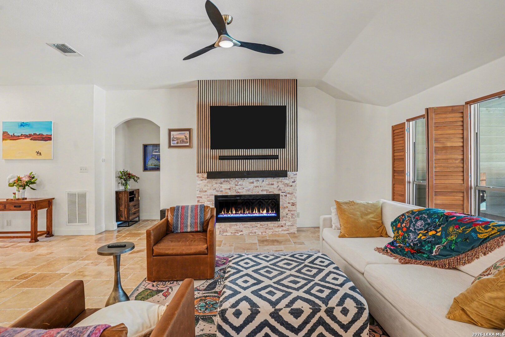 !!Pool - Remodeled - Prime Location!!Welcome to this beautifully upgraded home in the highly desirable Savannah Bluff community in Schertz, where mature surroundings, larger homesites, and convenient access to Randolph AFB, I-35, shopping, and dining make this one of the area's most sought-after neighborhoods. This 4 bedroom, 2.5 bath home offers 2,589 square feet of thoughtfully designed living space and outstanding curb appeal with four sides brick construction and a side-entry garage. The backyard is a true highlight - featuring a stunning in-ground swimming pool with Polaris cleaner and a large covered back porch, creating the perfect setting for relaxing evenings, weekend gatherings, and enjoying Texas summers. Inside, the home showcases over $100,000 in custom remodeling to the kitchen and living areas, creating a modern and inviting space for both everyday living and entertaining. Interior Highlights * Leathered granite countertops * High-end stainless steel appliances * Custom cabinetry * Custom travertine tile flooring * Custom stacked stone electric fireplace Exterior & Systems * Four sides brick construction * Heavy composition roof * Gutters * New Full sprinkler system * Newer HVAC system Garage & Storage Features * Side-entry garage * Insulated garage * Utility sink in garage * Attic flooring for additional storage Smart & Security * Video security system with equipment rack * Updated lighting fixtures throughout With its resort-style backyard pool, extensive upgrades, and location in one of Schertz's most established neighborhoods, 445 Fawn Pass offers a rare opportunity to own a move-in-ready home that blends comfort, style, and lifestyle.