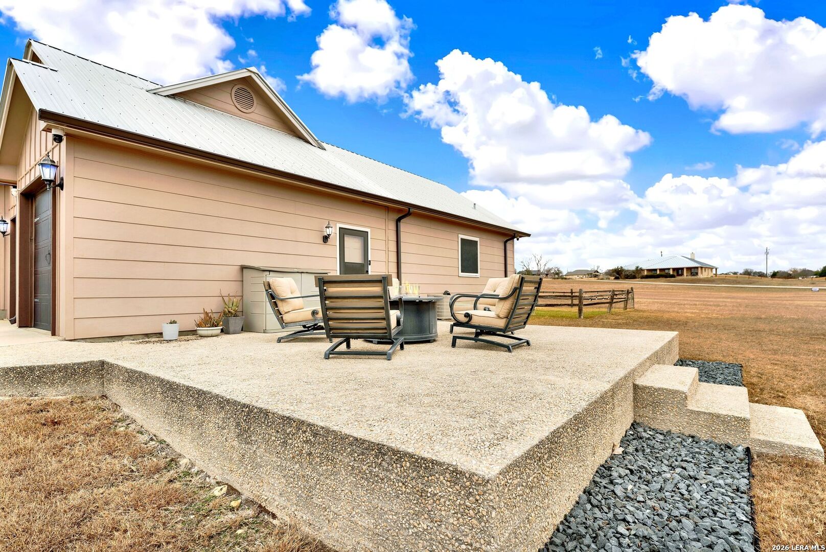 Welcome to your peaceful Hill Country retreat tucked away in the heart of Flying L Ranch in Bandera TX the Cowboy Capital of the World! Whether you're looking for full-time Hill Country living, a weekend getaway, or the perfect setup for remote working, this thoughtfully maintained 3-bedroom, 2-bath home delivers comfort, flexibility, and modern convenience. Situated on a spacious double lot totaling nearly half an acre, the property offers tranquility, charm, and room to breathe. Inside, you'll find a warm and airy living space with tall ceilings and an open floor plan ideal for everyday living and entertaining. Natural light fills the home, enhanced by smart lighting in the living and kitchen areas with customizable colors to match any mood. A flexible dining area provides additional space, perfect for a reading nook, hobby area, or cozy home office. Smart features throughout include Google-enabled lighting, a smart thermostat, and a smart ceiling fan in the living room, allowing effortless control and comfort. Step outside and experience the true magic of Hill Country living with multiple patios and outdoor spaces designed for relaxation and gathering. Enjoy watching axis, blackbuck, and whitetail deer, listening to birds, sipping coffee in the shade, or entertaining under the stars. Additional features include gutters, an oversized garage with deep storage, high-speed fiber internet, a paid water softener, and a septic system maintained quarterly by Buddies. This property is made for slowing down, soaking it all in, and creating lasting memories.