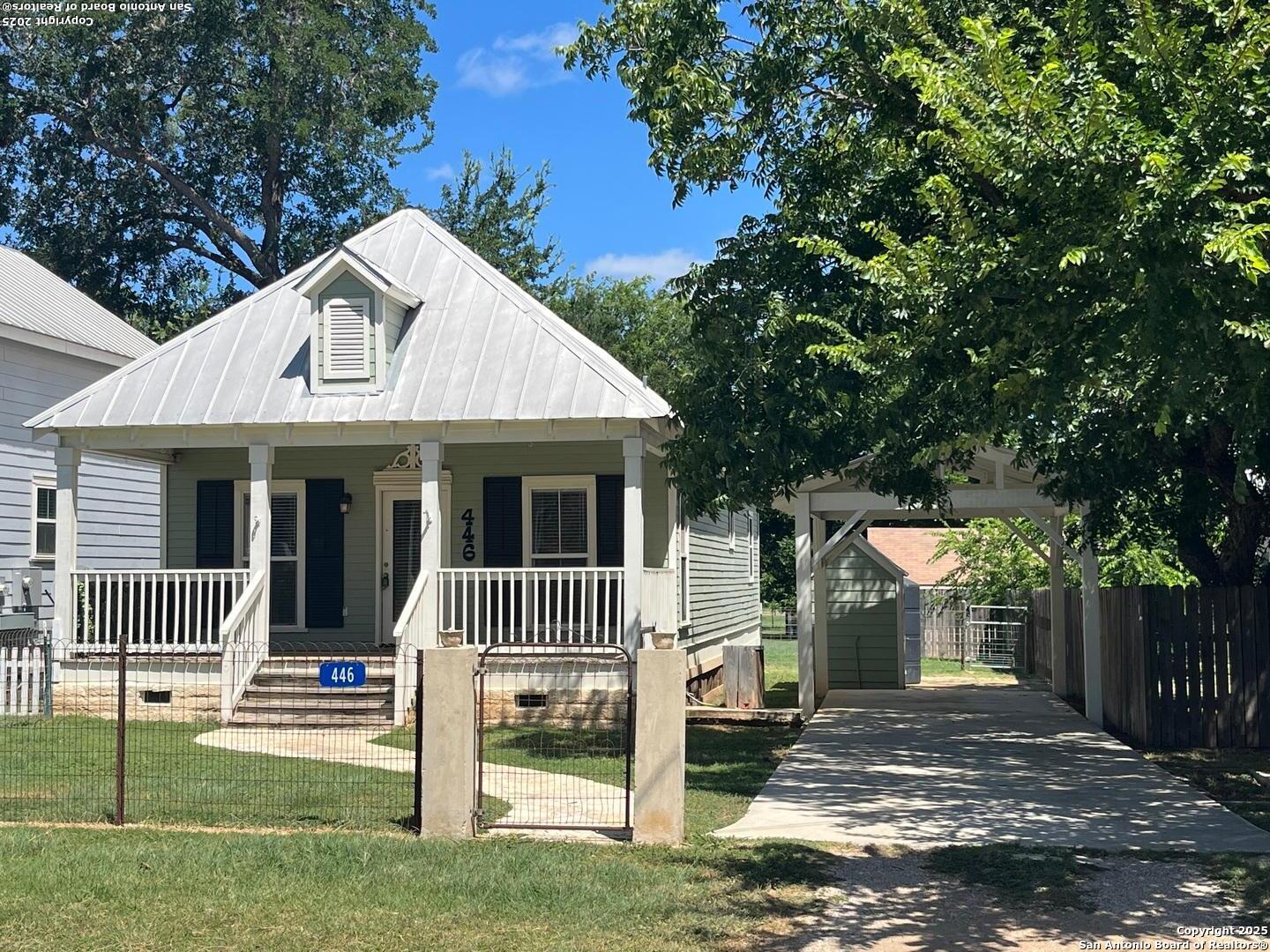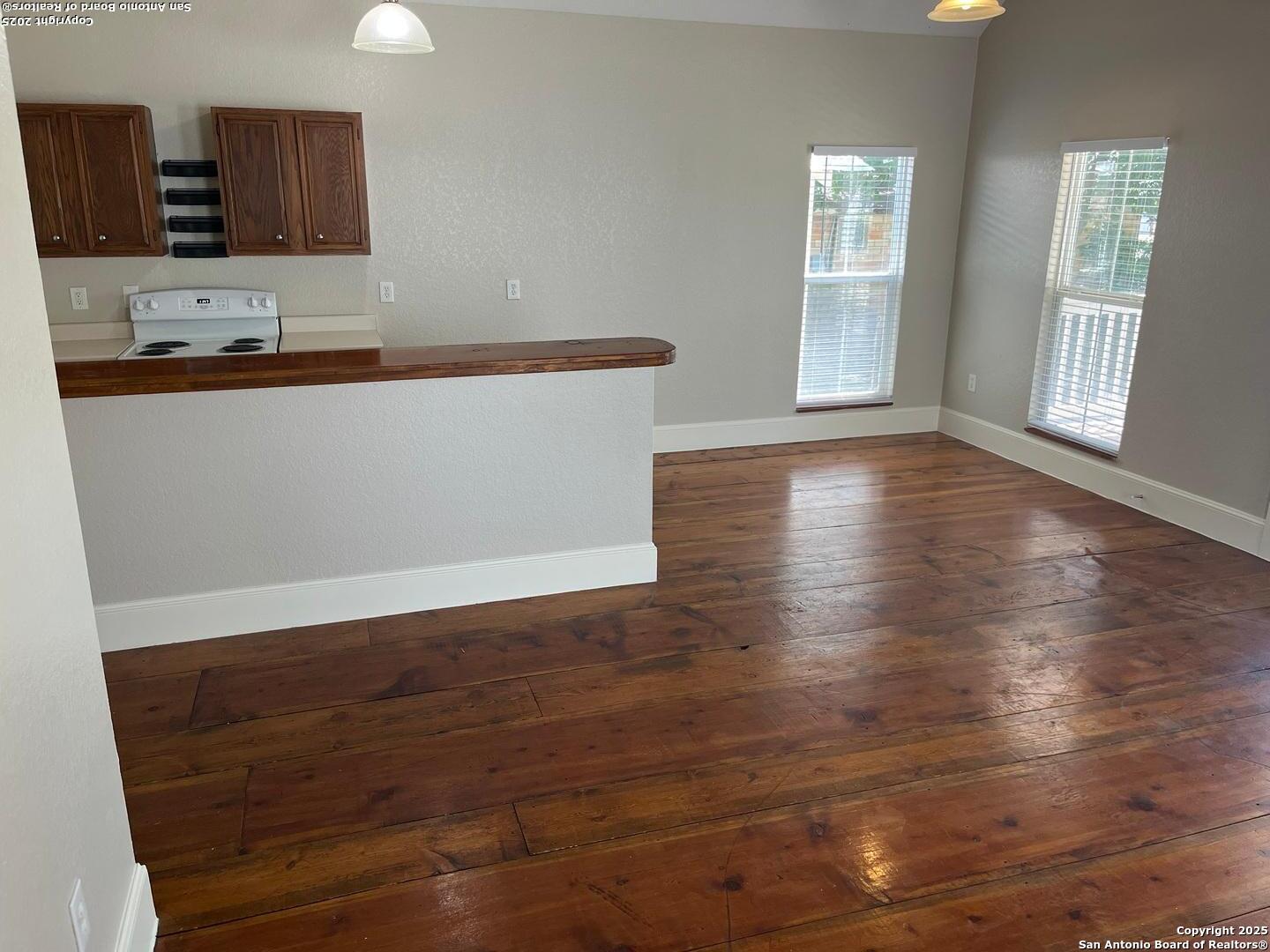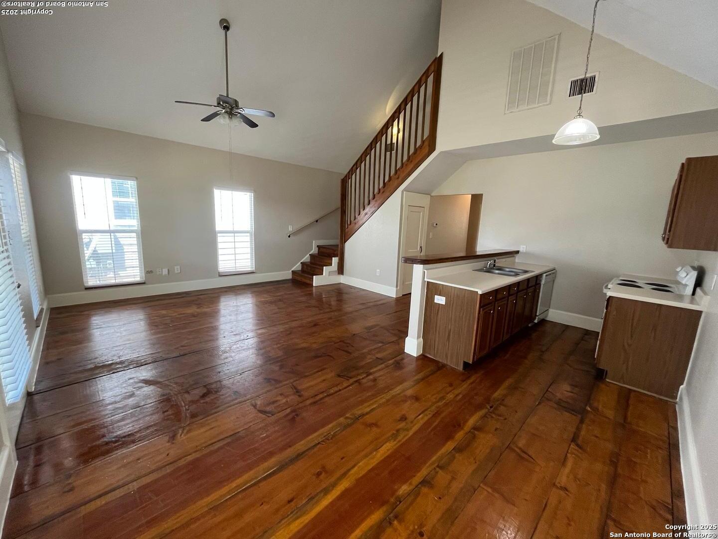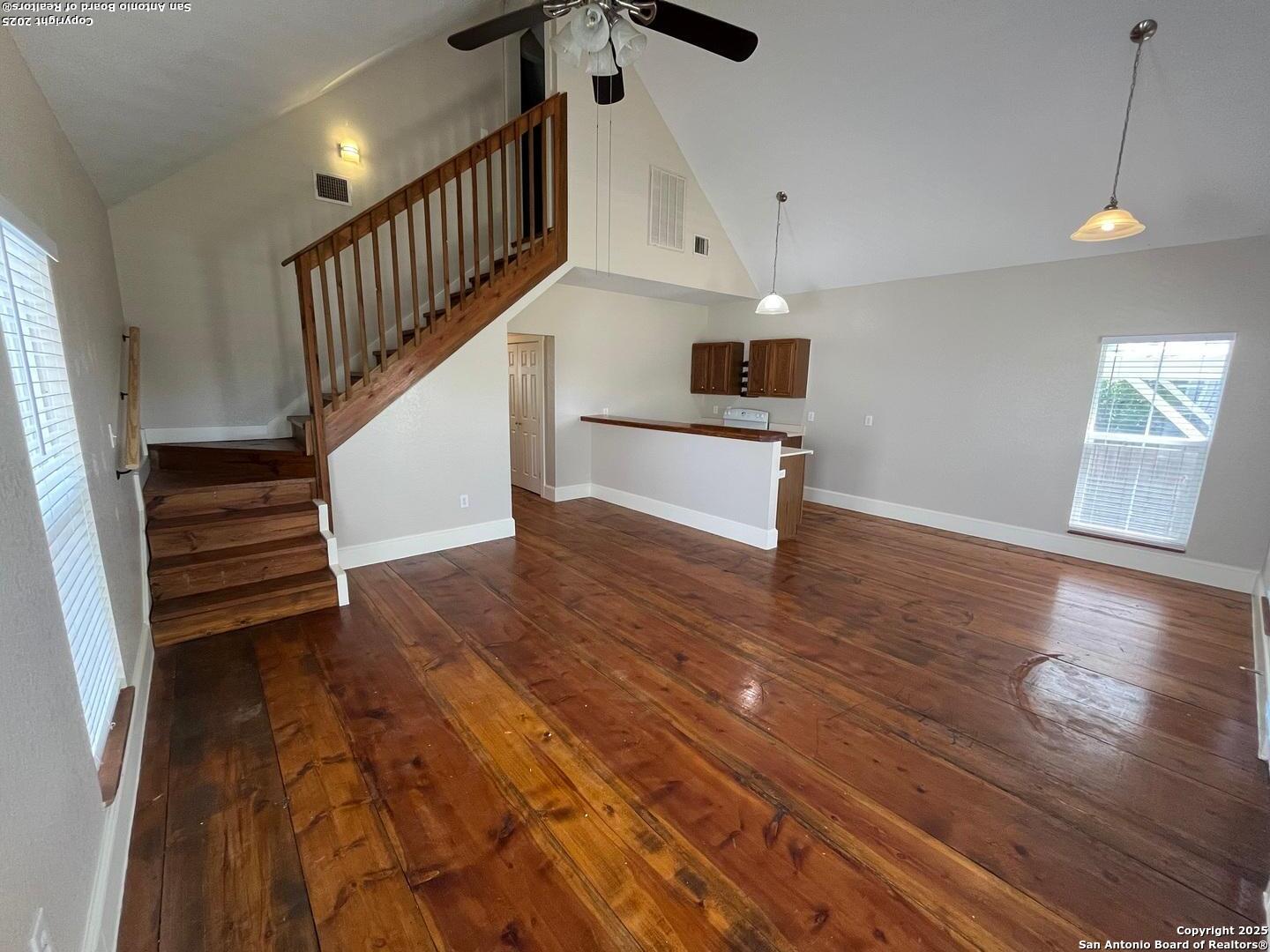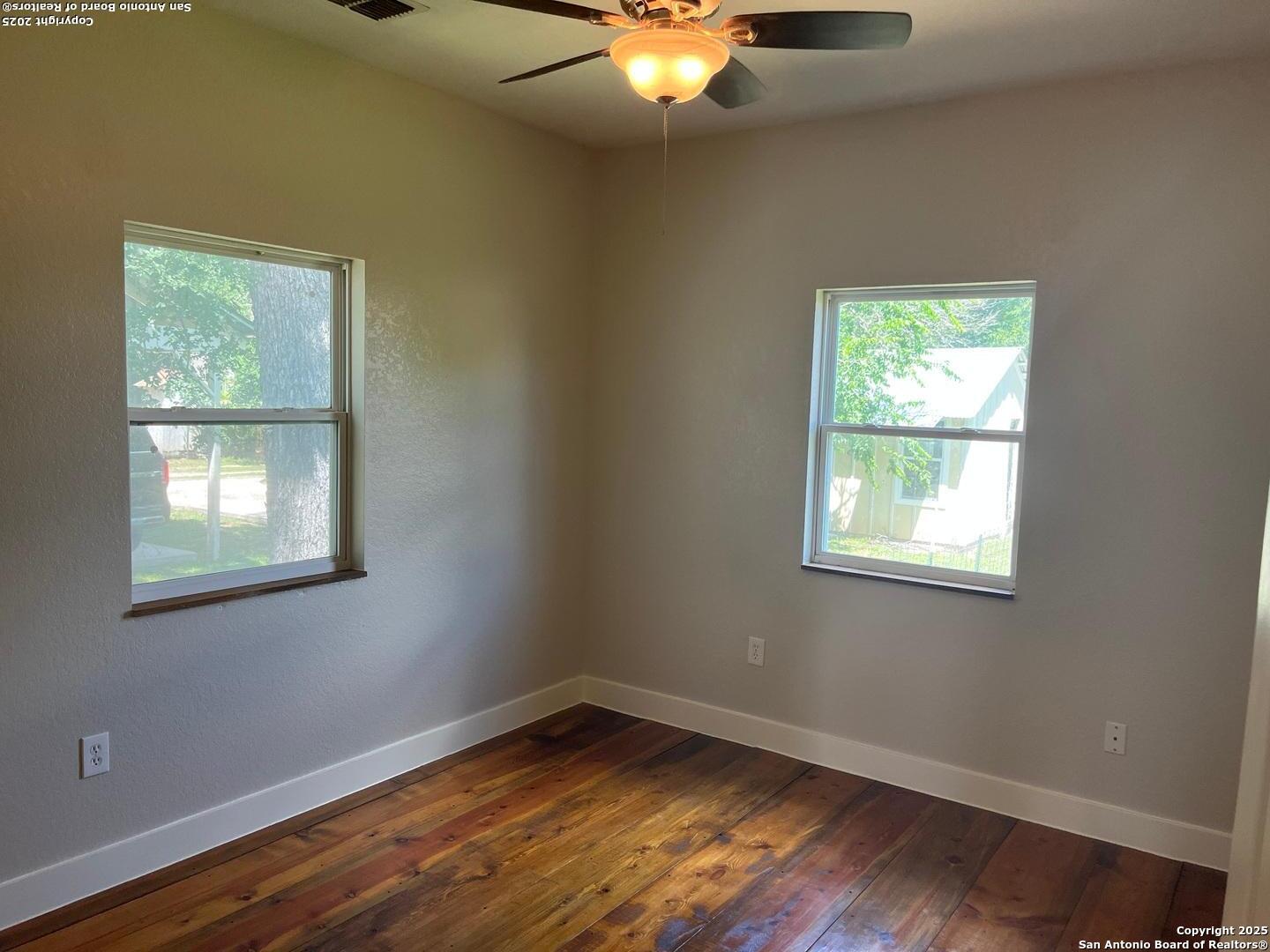 Charming and spacious gem nestled in the heart of Waring! This home offers a peaceful country feel with real hardwood floors, an open floor plan, and a large yard. Both bedrooms are located downstairs, with a spacious loft upstairs-perfect for an office, guest space, or second living area. Water and yard maintenance are included! 600 min credit score, Income of 3X the rent, good rental history & clean background check.