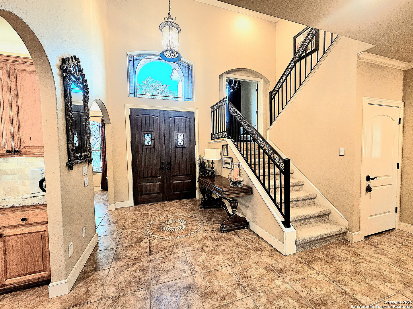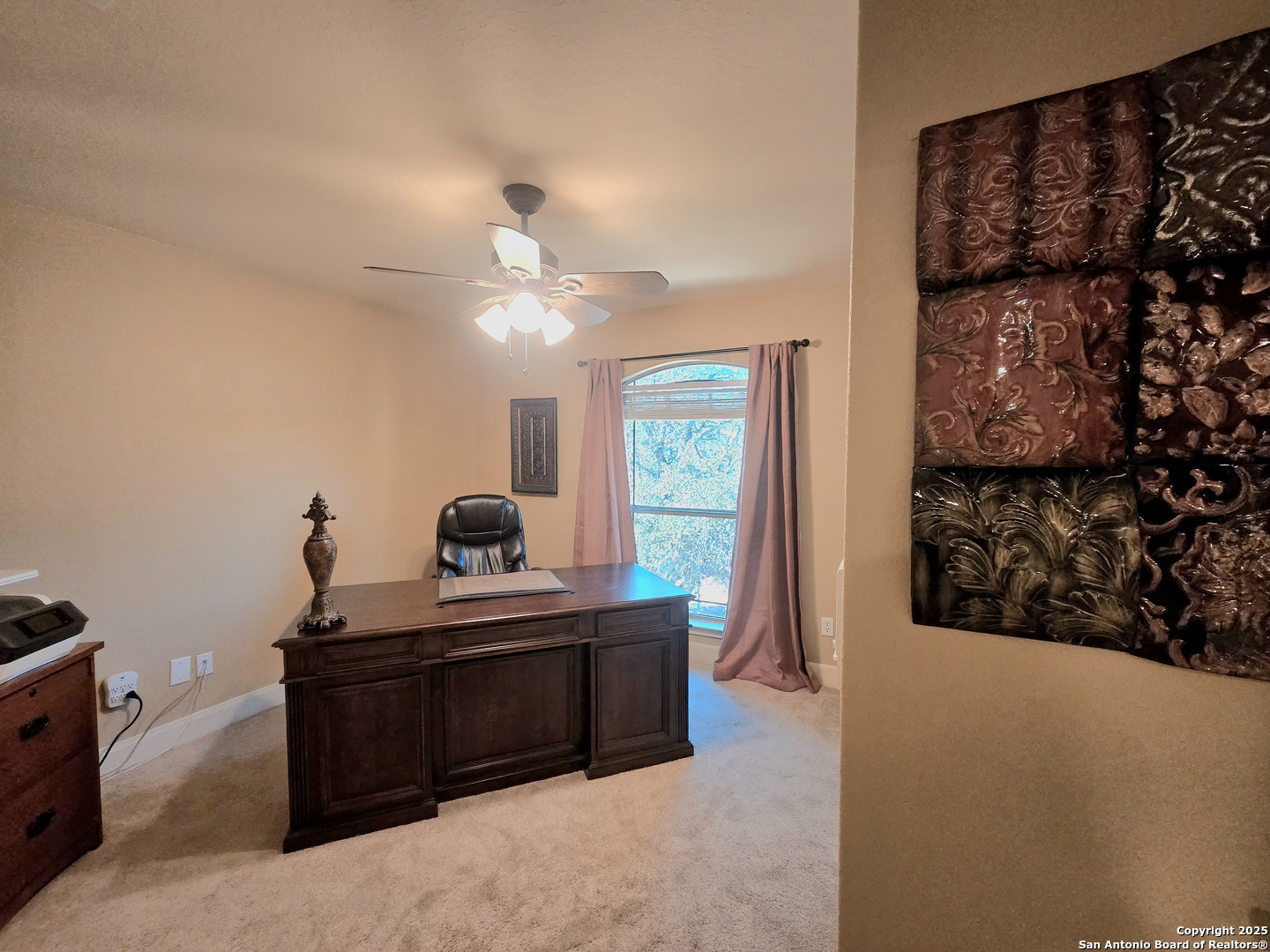 HUGE PRICE IMPROVEMENT! MOTIVATED SELLERS! BRING ALL OFFERS! Looking for wooded privacy in the heart of the Hill Country AND proximity to all the amenities that "city life" offers? This impeccably maintained 4-bed, 2.5-bath home in the highly sought River Crossing community should be seen in person. The soaring 16+-foot ceilings and wall of windows make quite the first impression as you walk through the high-end Mission-style front doors. Look right and you'll see the beautiful formal dining room, which is large enough to fit a table for eight plus a hutch. Look left and you'll see the grand staircase that leads you up to three bedrooms, an oversized full bathroom w/ double vanity, a media/game/exercise room, and a bird's eye view of the beautiful trees and wildlife in the back of the property. Your eye will catch the spacious office/library/play space that splits the first and second floors. Glass French doors minimize noise while allowing the natural light beaming from upstairs and downstairs windows to flow in. Before you go upstairs, though, take a few minutes to appreciate the glow of the open, airy living room that sits between the primary bedroom and kitchen. Light from the floor-to-ceiling windows adorns the big, inviting wood-burning fireplace and built-in entertainment center. It also brightens the kitchen and breakfast area, where glass French doors provide easy access to the iron-fenced play yard/dog run. With the primary bedroom on the first floor, this 2950-sq ft home offers the perfect "single story" living experience for those who don't want to climb stairs every day but still want plenty of space for the kids, grandkids, or guests. This home also gives "new home" vibes without the price tag of a new build. - All fixtures in the home are less than five years old. - The exterior was painted in 2024, and the interior received a face lift in 2022. - Two new energy-efficient 3-ton Trane units AND two new electric water heaters were installed in 2022. - The kitchen was upgraded with beautiful stainless appliances (which are surrounded by lots of 42" cabinets for more than enough storage). - The upstairs carpet looks like no one has ever walked on it. Still "original" to the home is the charm of this secret hideaway. All the floors and countertops have been beautifully maintained by the current owners. - An oversized insulated garage door was installed to keep the garage nice and cool. A few other things that you don't want to miss: - Fiber internet (GVTC) that will keep every device running at top speeds, including the cameras+sensors you attach to the wired security system. - A whole-home vacuum that makes cleanup easy. - The parking! This driveway could have its own road name. You'll never have to worry about bothering neighbors with extra cars. - The central positioning of the house. The 50x100' iron-fenced yard extends to a side property line. However, the back property line for this 1.3-acre lot is MUCH further back. (See the survey.) - The (newer) water softener that will save your plumbing, skin, and hair. - Crown molding that elevates most of the downstairs spaces, making it feel like you're in a luxurious vacation home. - That jetted soaking tub in the primary bathroom. (And the walk-in closet- talk about the dream bath.) - The windows! (Did I mention that already?) You'll feel like you're outside even when you're inside. What's better is that every window features blinds that can be adjusted from ground level. So, you can "dim the light" to enjoy an afternoon nap in front of the fireplace or have an early movie night with the family. Prefer the house light and bright? Simply lift the blinds to restore the home's vibrancy - and a direct line of sight to the wildlife. If you're even thinking about living in Spring Branch (and River Crossing) this is a home that needs to be on your "must see" list. Pictures do not do it justice!