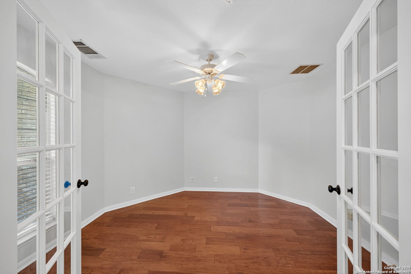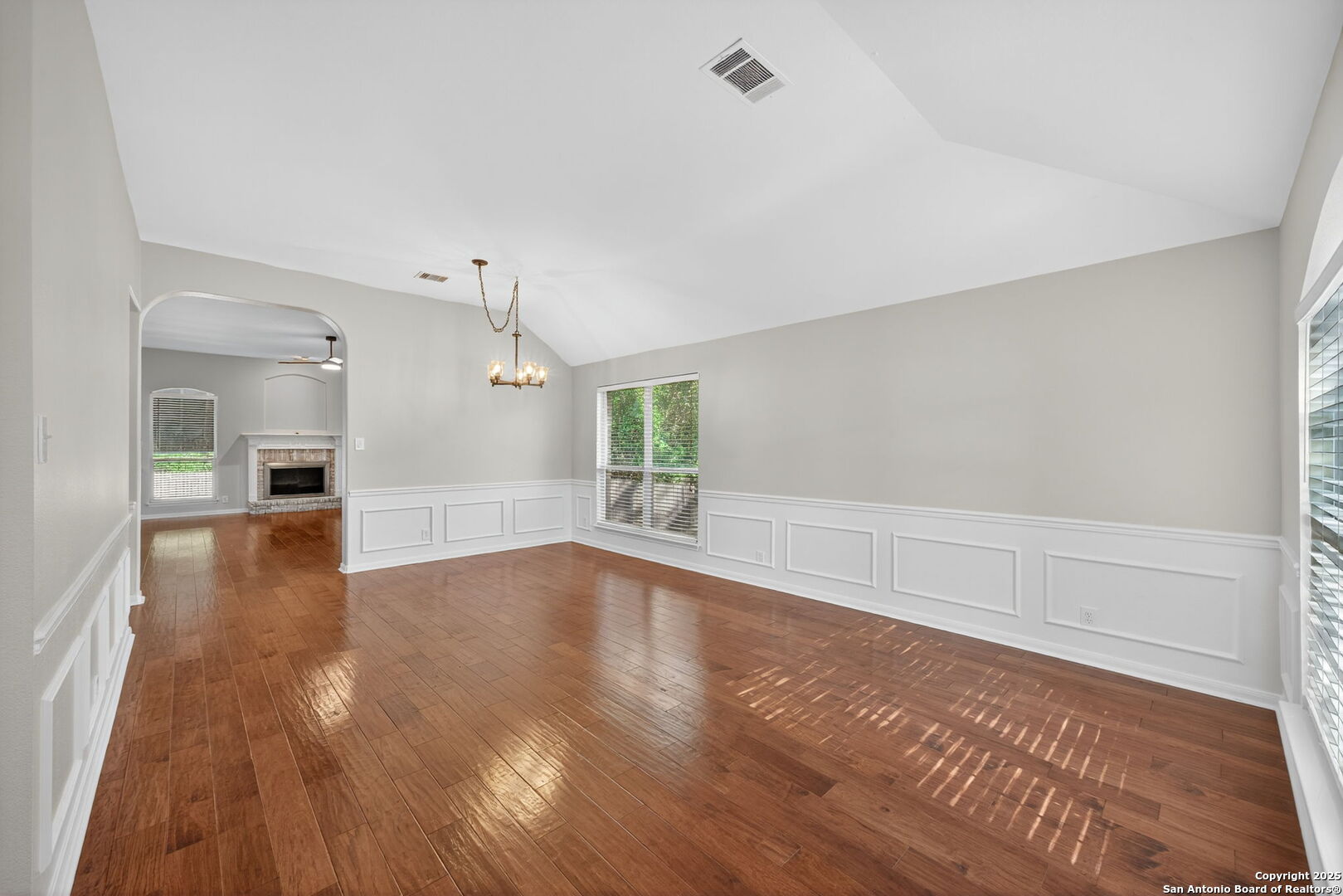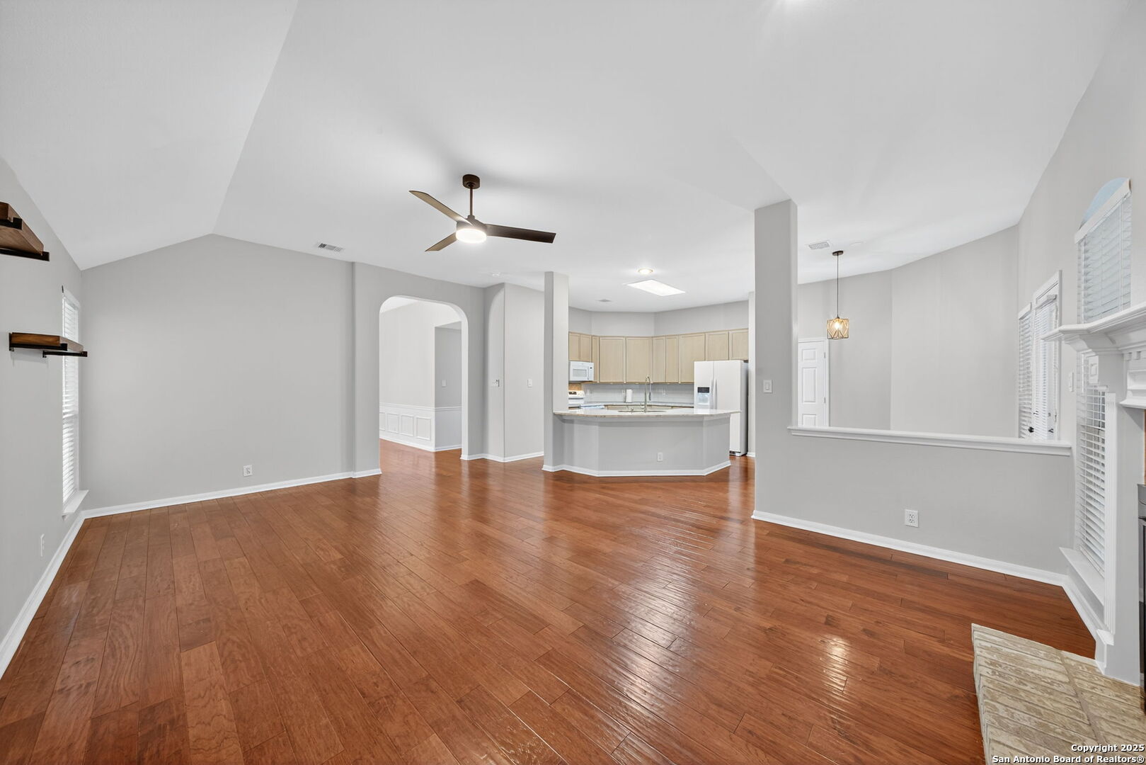 Discover this beautifully maintained single-story home in the gated community of Finesilver. Offering 4 spacious bedrooms and 2 full baths, the home features an open floor plan with hardwood floors, a cozy fireplace, and abundant natural light throughout. The kitchen includes a brand-new stove and refrigerator, with seamless flow into the living space for easy entertaining. A charming breakfast nook and a separate formal dining room provide versatile dining options. Step outside to a private backyard that backs to a serene greenbelt, offering peaceful views and added privacy. Conveniently located near shopping, dining, and highly regarded schools, this property blends comfort, style, and location.