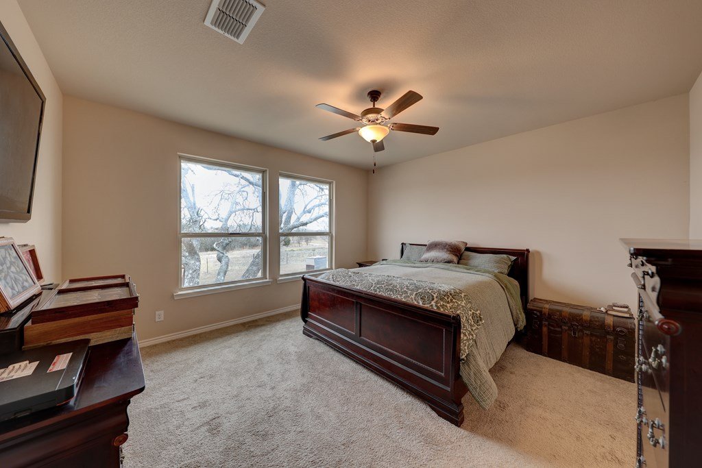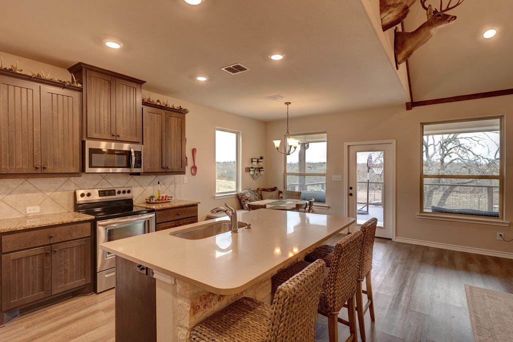 Welcome to your private Hill Country retreat! This stunning 3-bedroom, 2-bathroom home, built in 2020, is nestled on 50 acres of rolling land, offering the perfect balance of seclusion and modern comforts. With 48 acres AG exempt, this property is ready for livestock, hunting, or simply enjoying the abundant wildlife. The home features an open-concept living area with high ceilings and large windows that let in plenty of natural light. The well-appointed kitchen is ideal for both everyday living and entertaining. The master suite offers a peaceful escape, complete with an en-suite bath and walk-in closet. Outside, the possibilities are endless. Enjoy the beauty of your expansive property with 2 acres around the home fully fenced. The new fence on 3 sides of the property ensures privacy and security. For hunters, two deer feeders and two hunting blinds convey, making it easy to start enjoying the abundant wildlife right away. This property is a haven for those looking to escape the city, with NO HOA restrictions. The two outbuildings give plenty of space for storage. Whether you're looking for a peaceful getaway or a hunting paradise, this property has it all.
