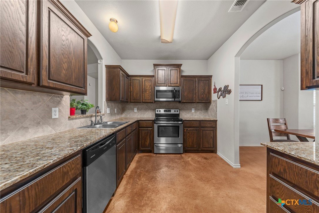 Welcome to your dream home! This stunning property boasts sleek concrete floors that add a modern touch and durability. The spacious kitchen is a chef's delight, featuring abundant counter space, perfect for meal preparation and entertaining guests. The dining area is enhanced by a charming bay window, allowing natural light to flood the room and offering a cozy spot for enjoying meals with family and friends. Additionally, the garage is fully finished, providing not only extra storage but also a clean and polished environment for your vehicles. With protected flooring, you can rest assured that this space is designed to withstand daily use while maintaining its pristine condition. Don’t miss the opportunity to make this exceptional property your home!