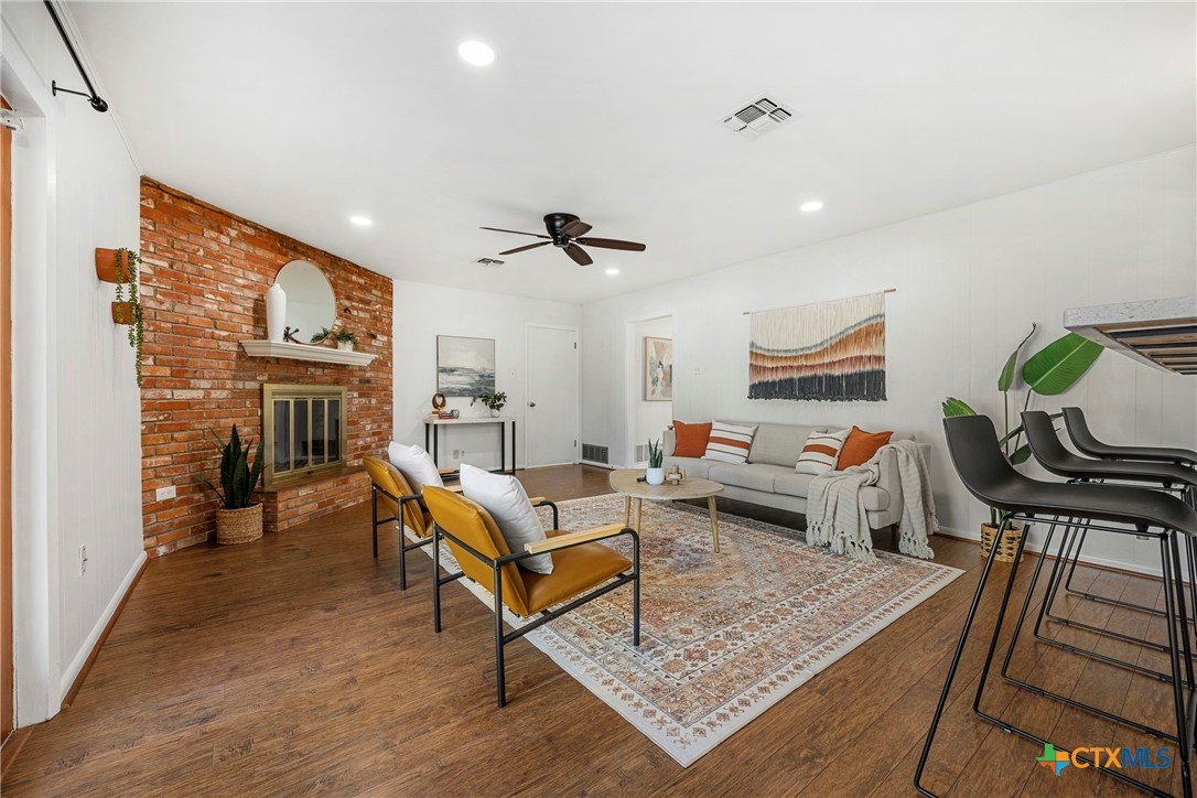 Well-maintained 1970s brick home located in an established neighborhood in the Canyon Creek area. Just minutes from hospitals, schools, shopping, and major highways (I-35 & 190). Enjoy the unbeatable location across from the popular Lions Park featuring a dog park and children's play area, perfect for families, pet lovers, and retirees alike. This spacious home features: Two generous living areas & two dining spaces, 4 bedrooms (one ideal as a home office or study), central fireplace, mix of wood, laminate, and carpet flooring, fresh interior paint, updated electrical system providing energy efficiency, new appliances, separate laundry room, doggy doors in place for pet convenience, and more. The large sunlit front and back yards offer endless possibilities, gardening, play space, or hosting. A two-car garage, extended driveway, attached workshop, and backyard storage shed provide ample space for tools, toys, and hobbies. Move-in ready with room to grow. Let's schedule a private tour today